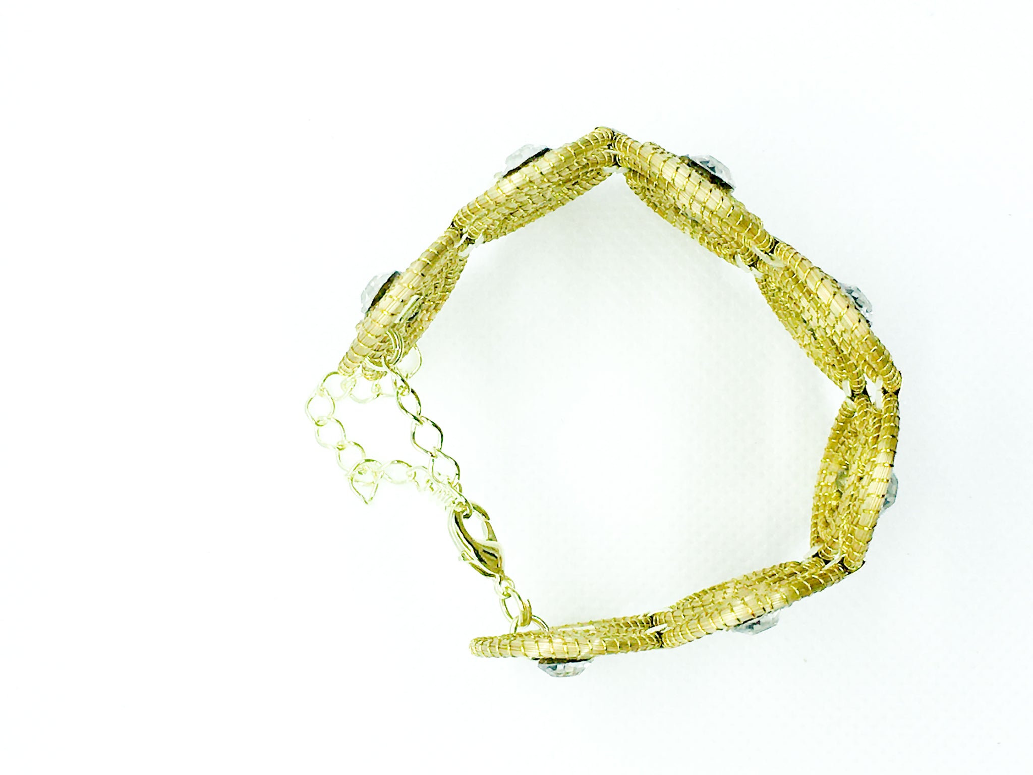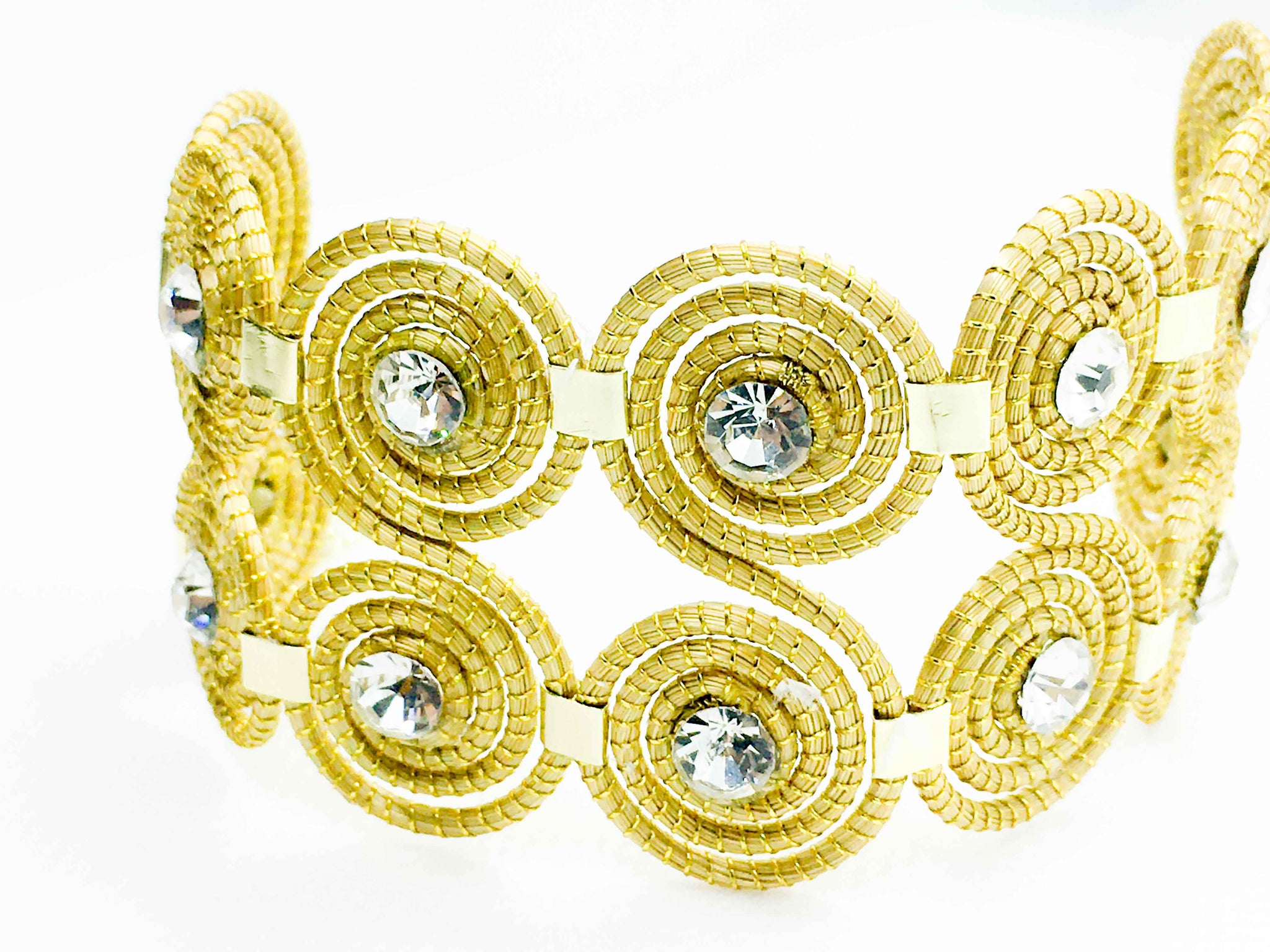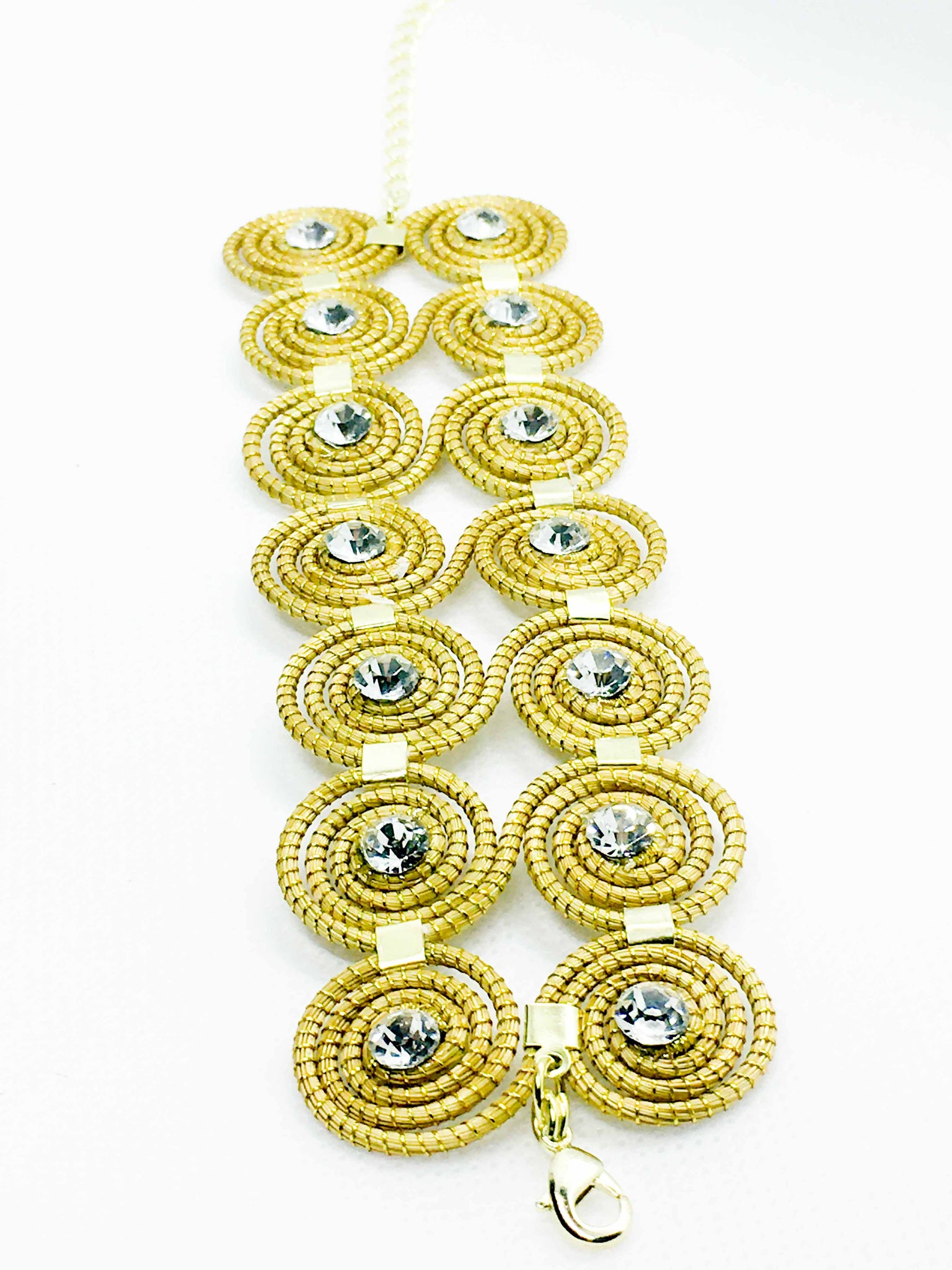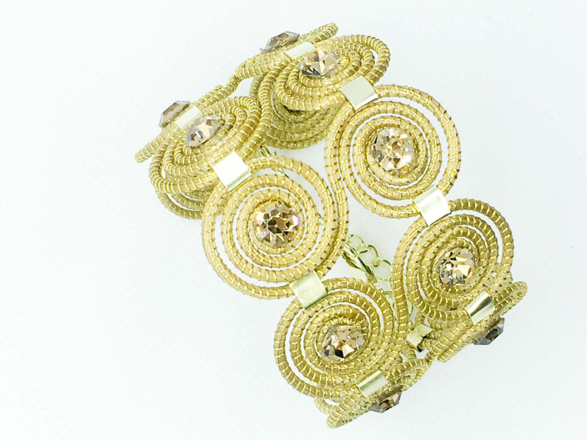 Bracciale doppio in Capim Dourado a forma di piccole spirale con strass flessibile