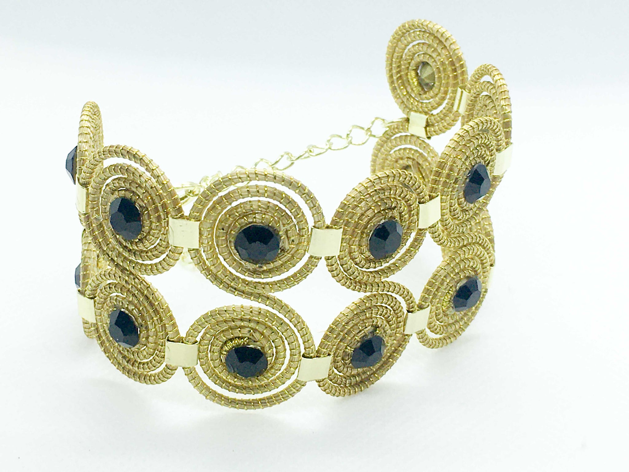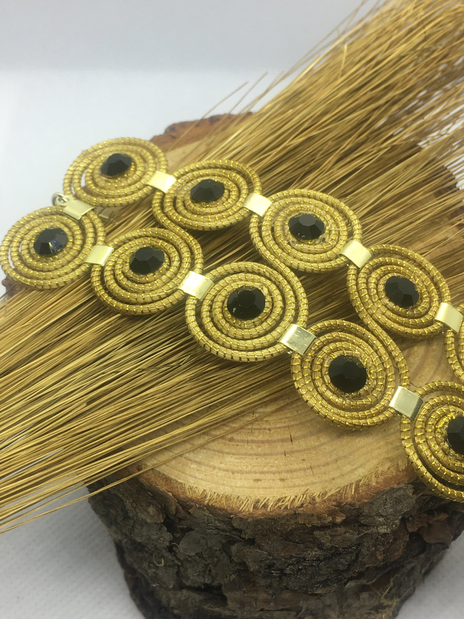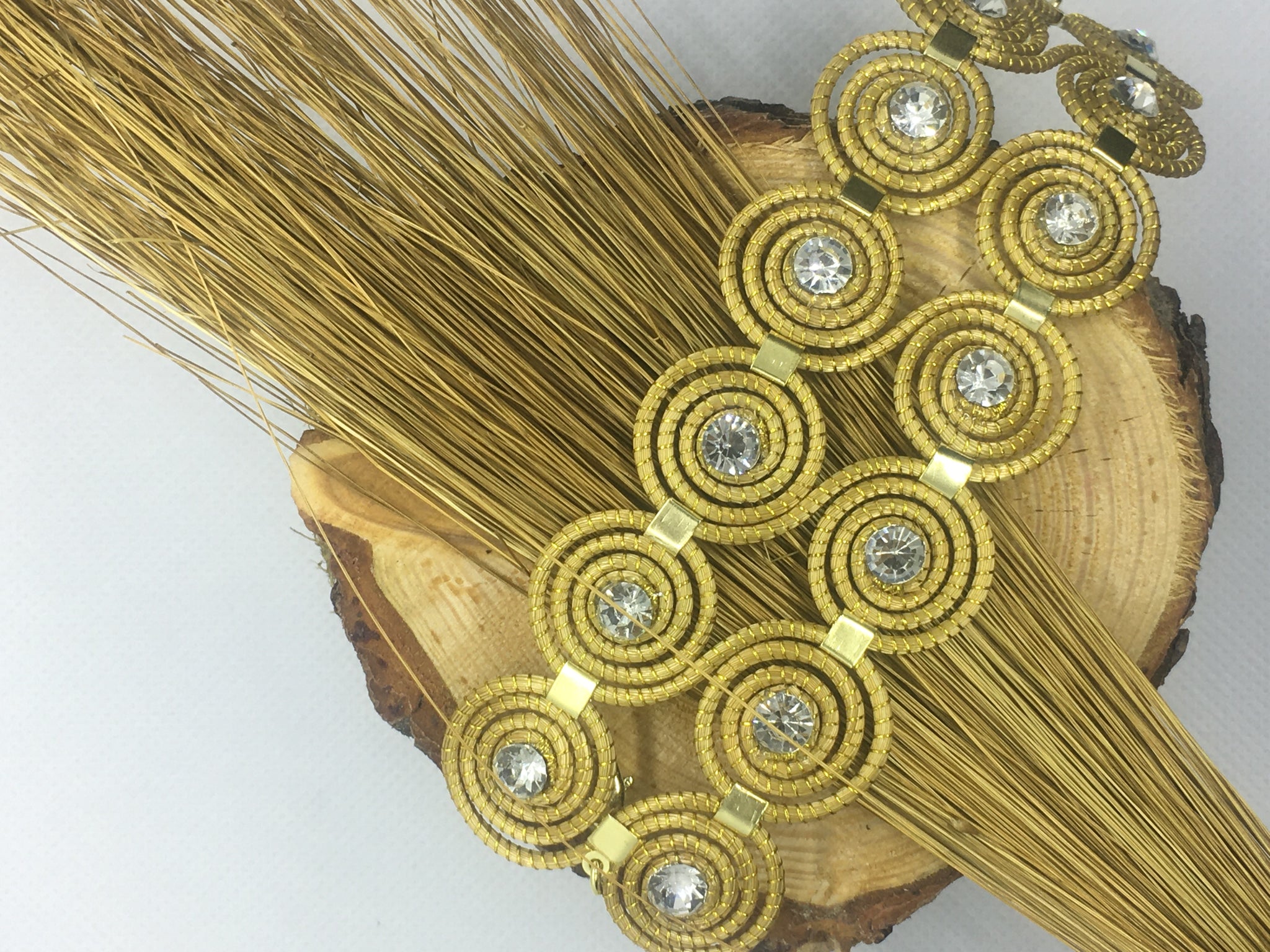 Bracciale doppio in Capim Dourado a forma di piccole spirale con strass flessibile