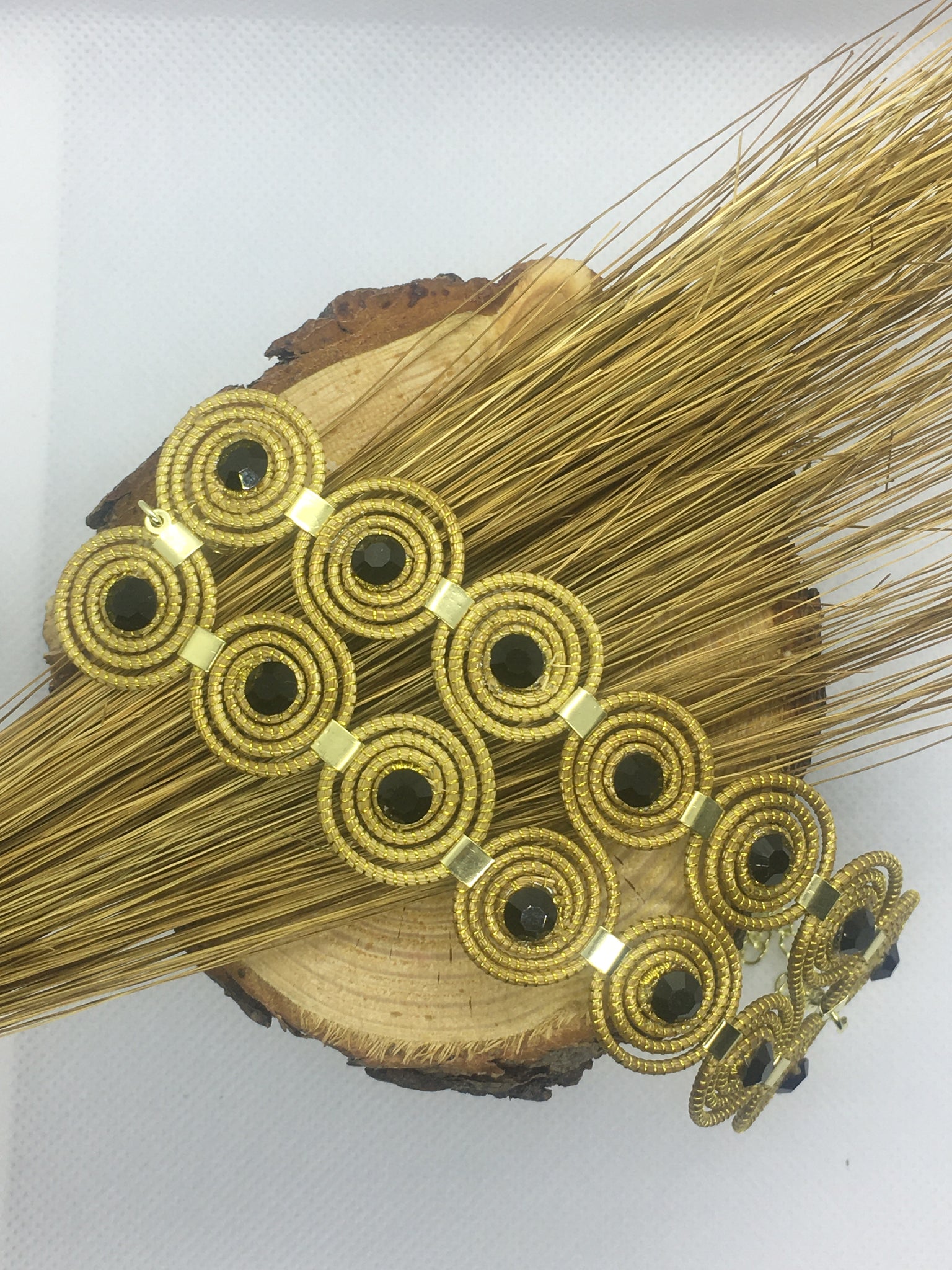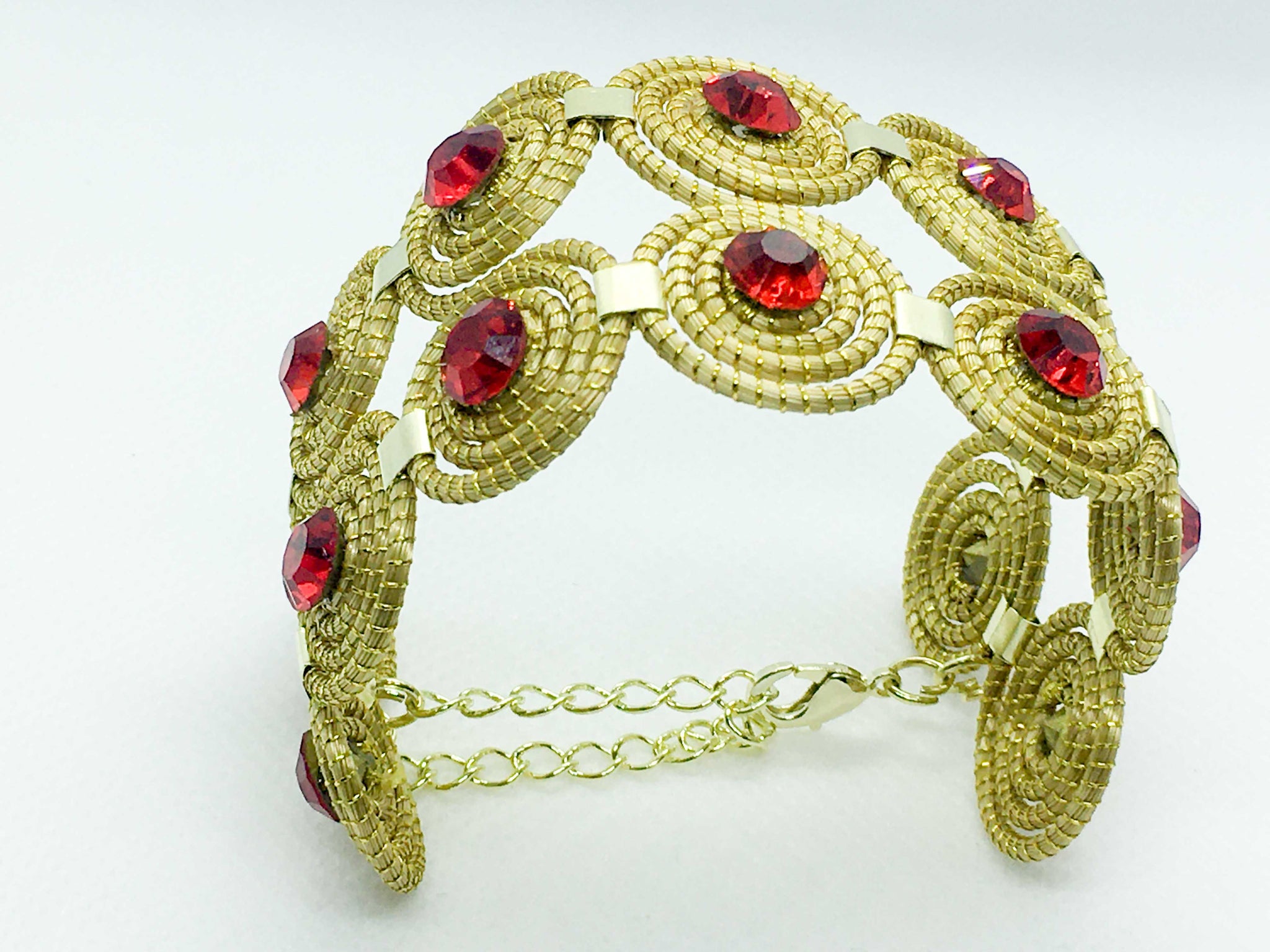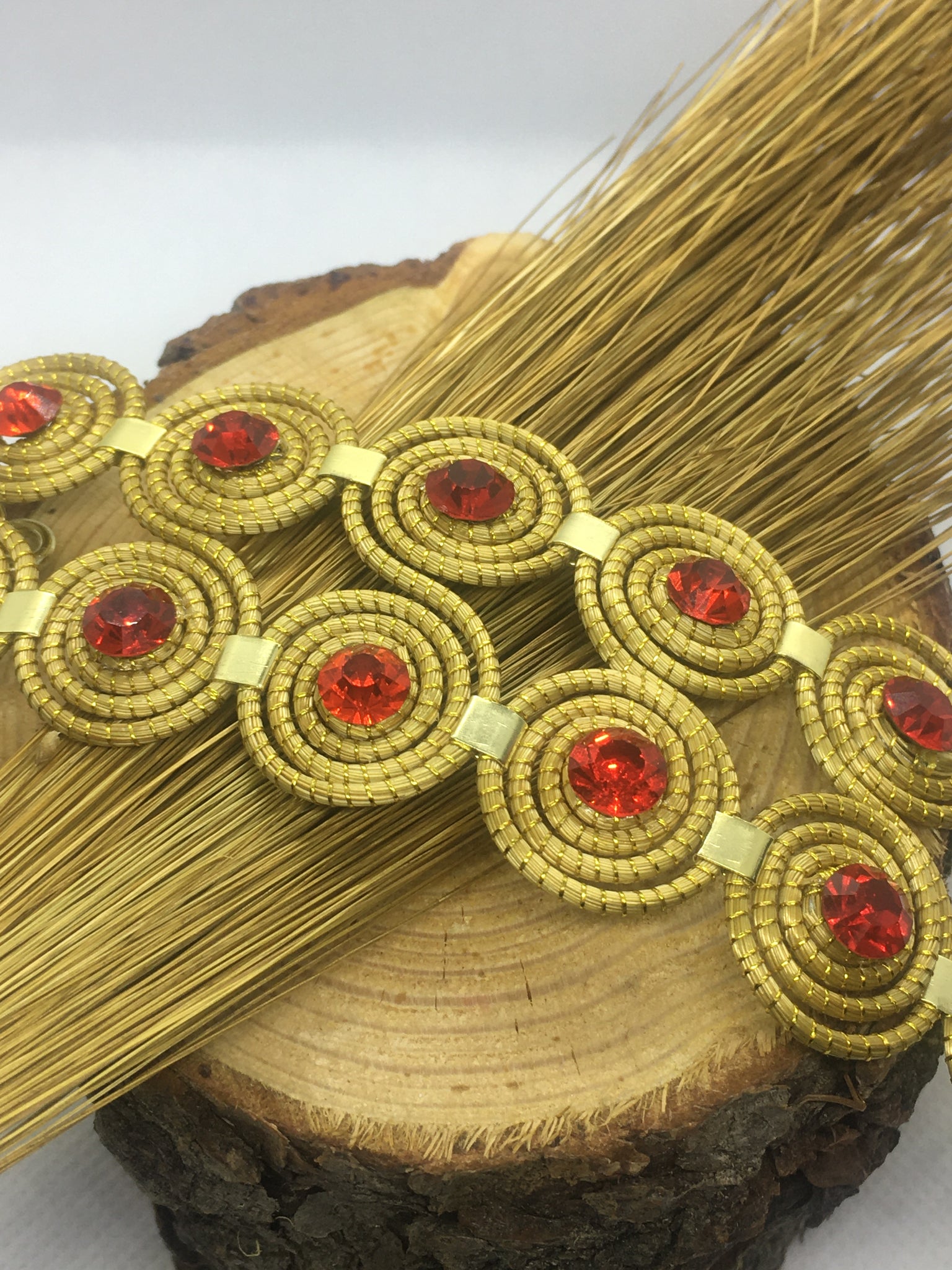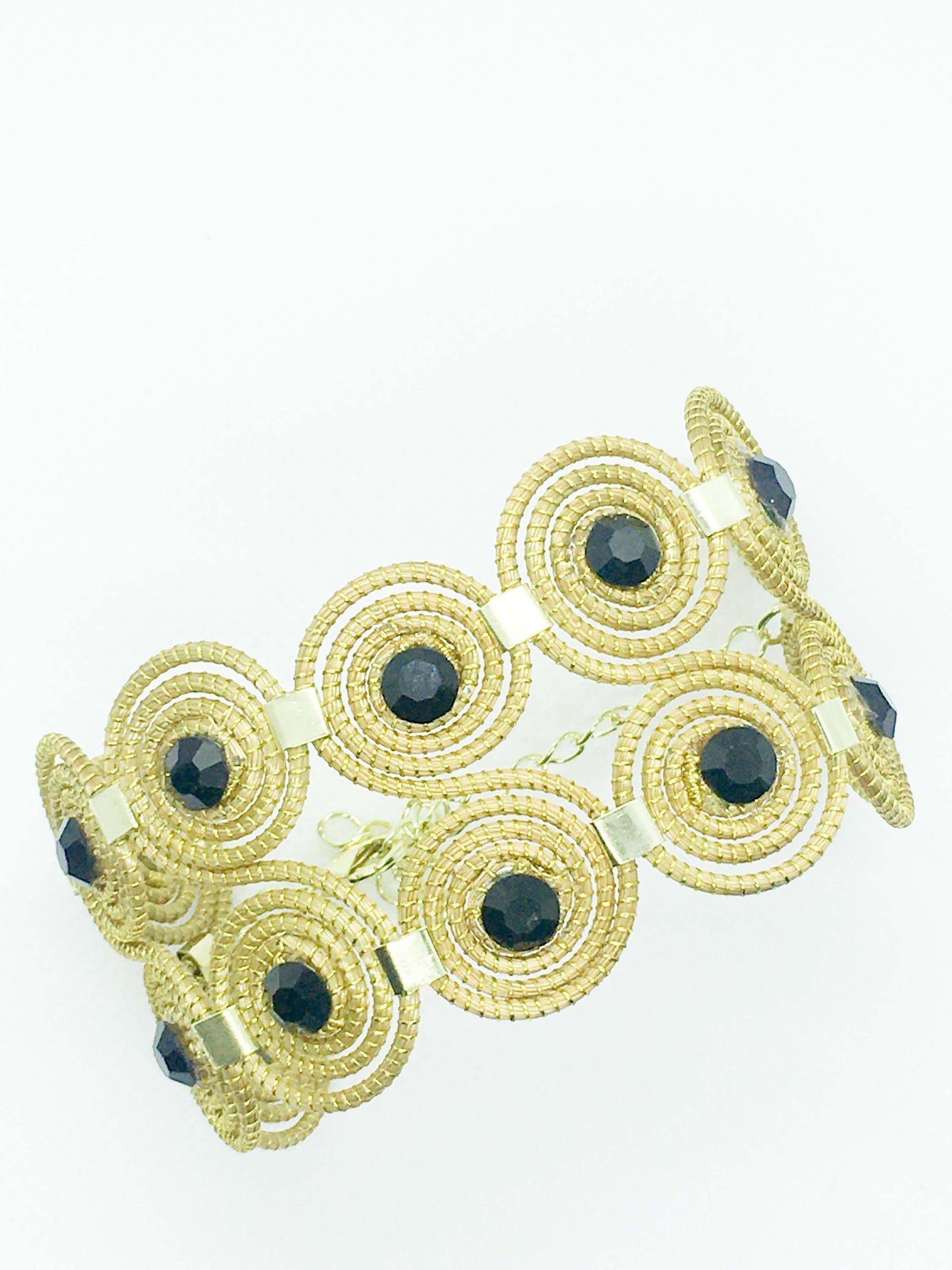 Bracciale doppio in Capim Dourado a forma di piccole spirale con strass flessibile