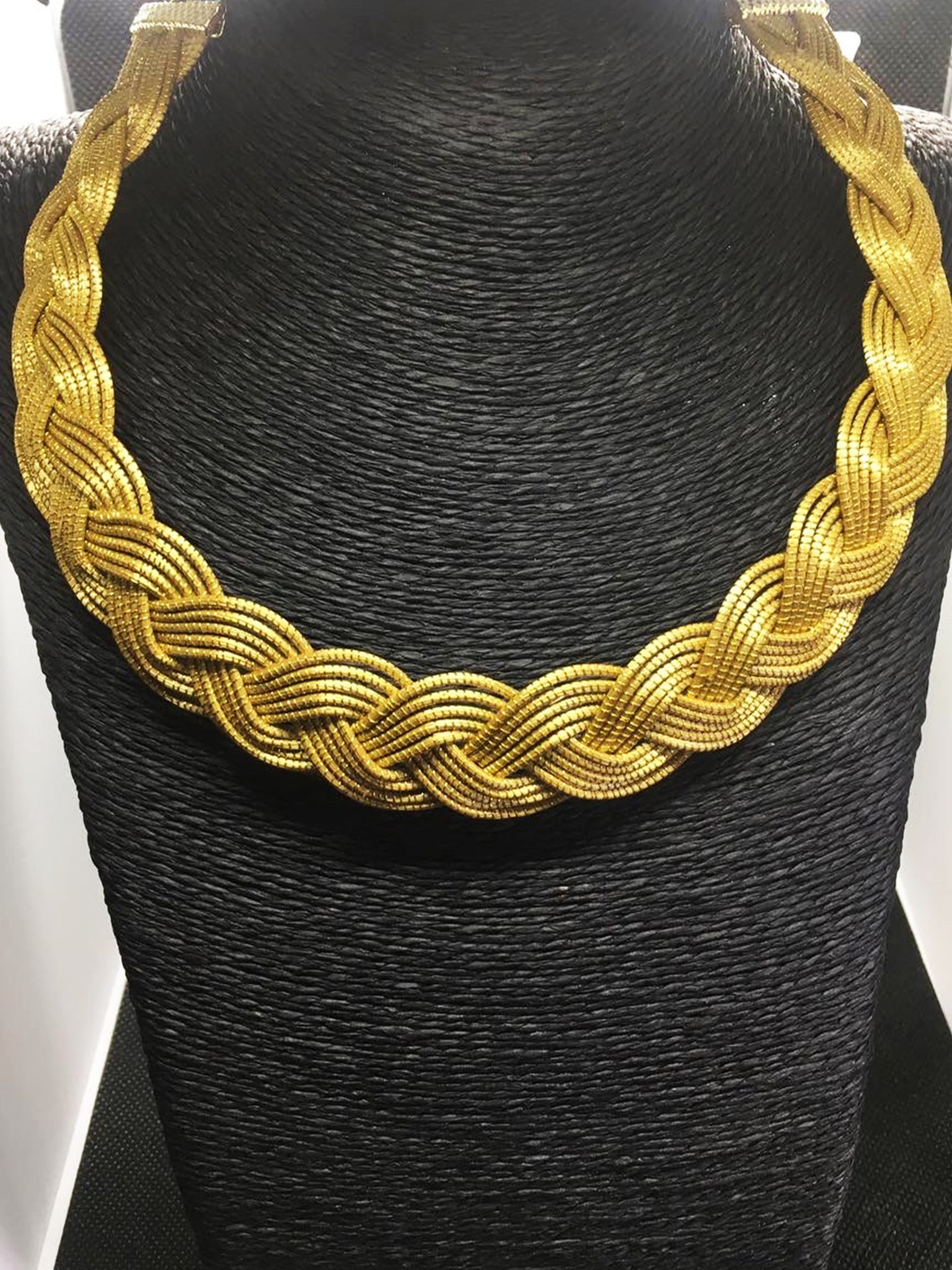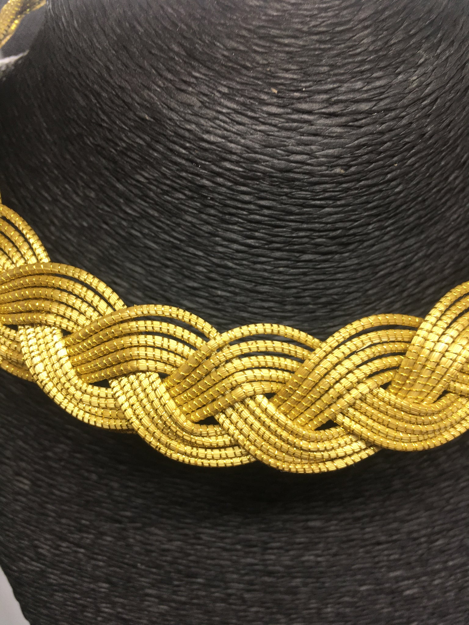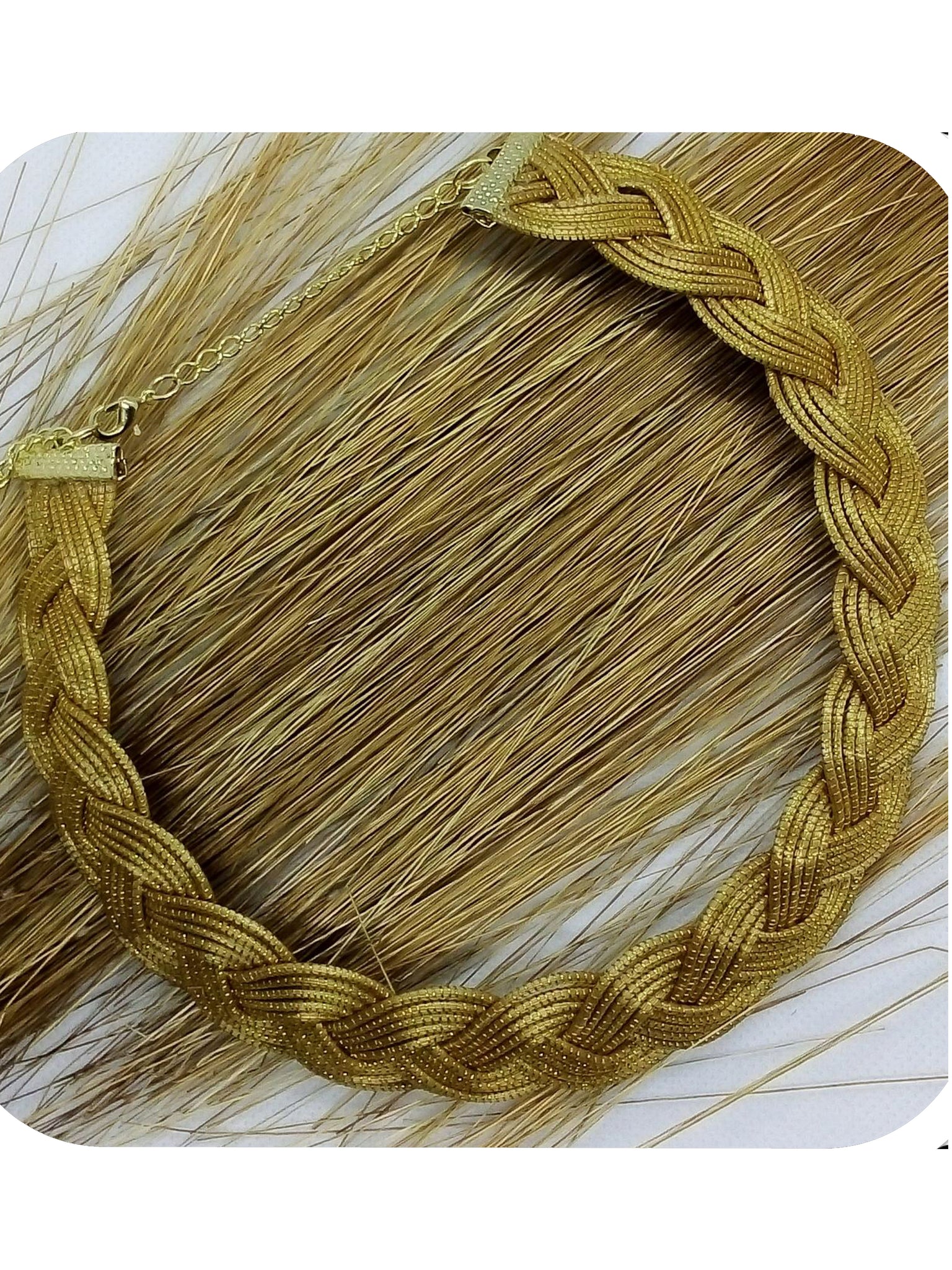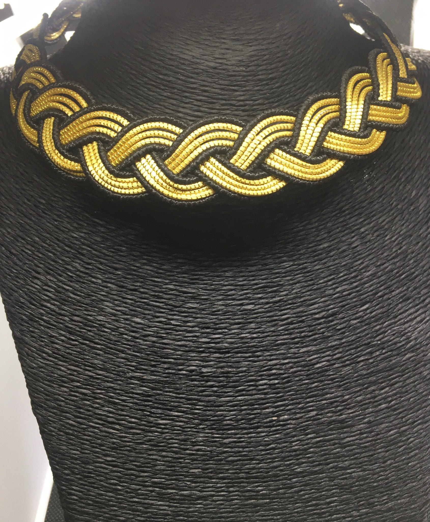 Collana Girocollo rigido intrecciato largo fatto a mano in capim dourado
