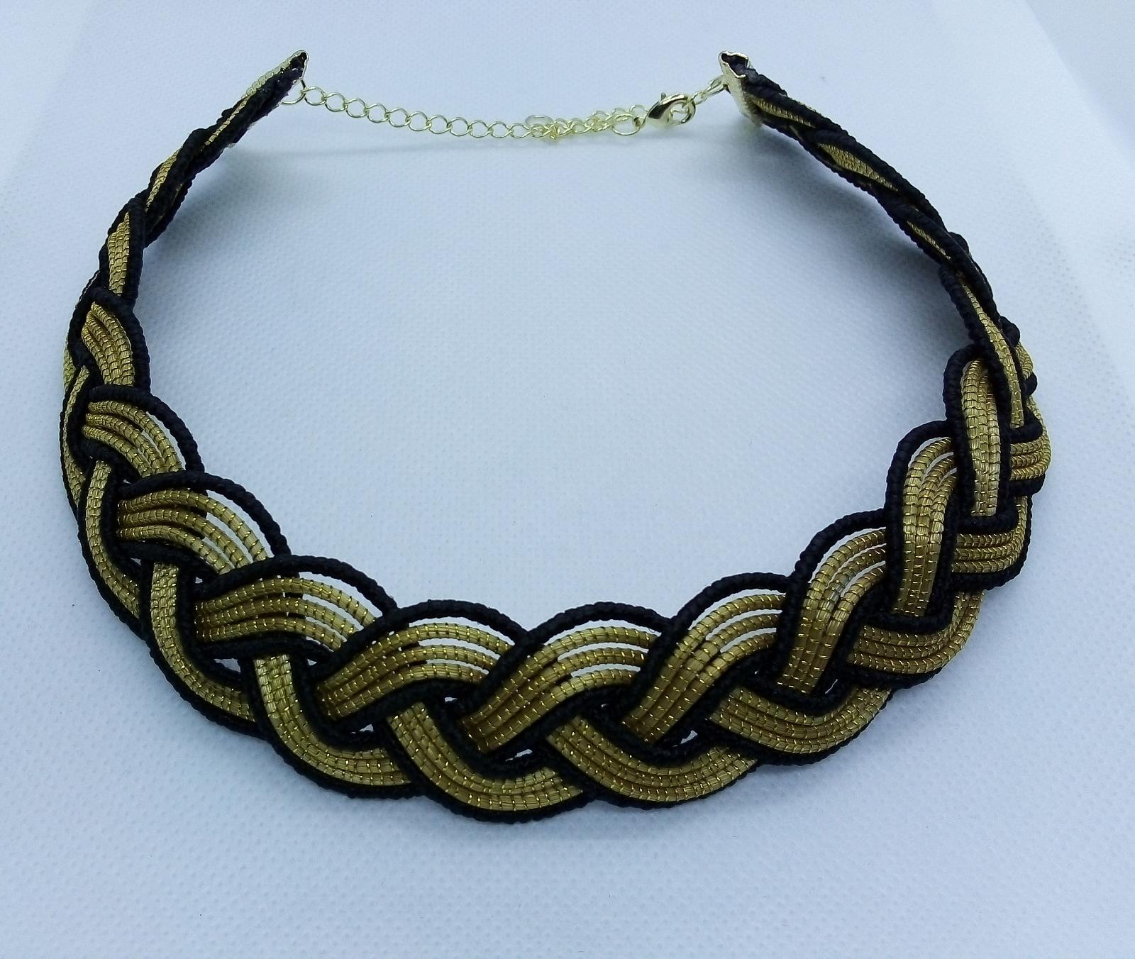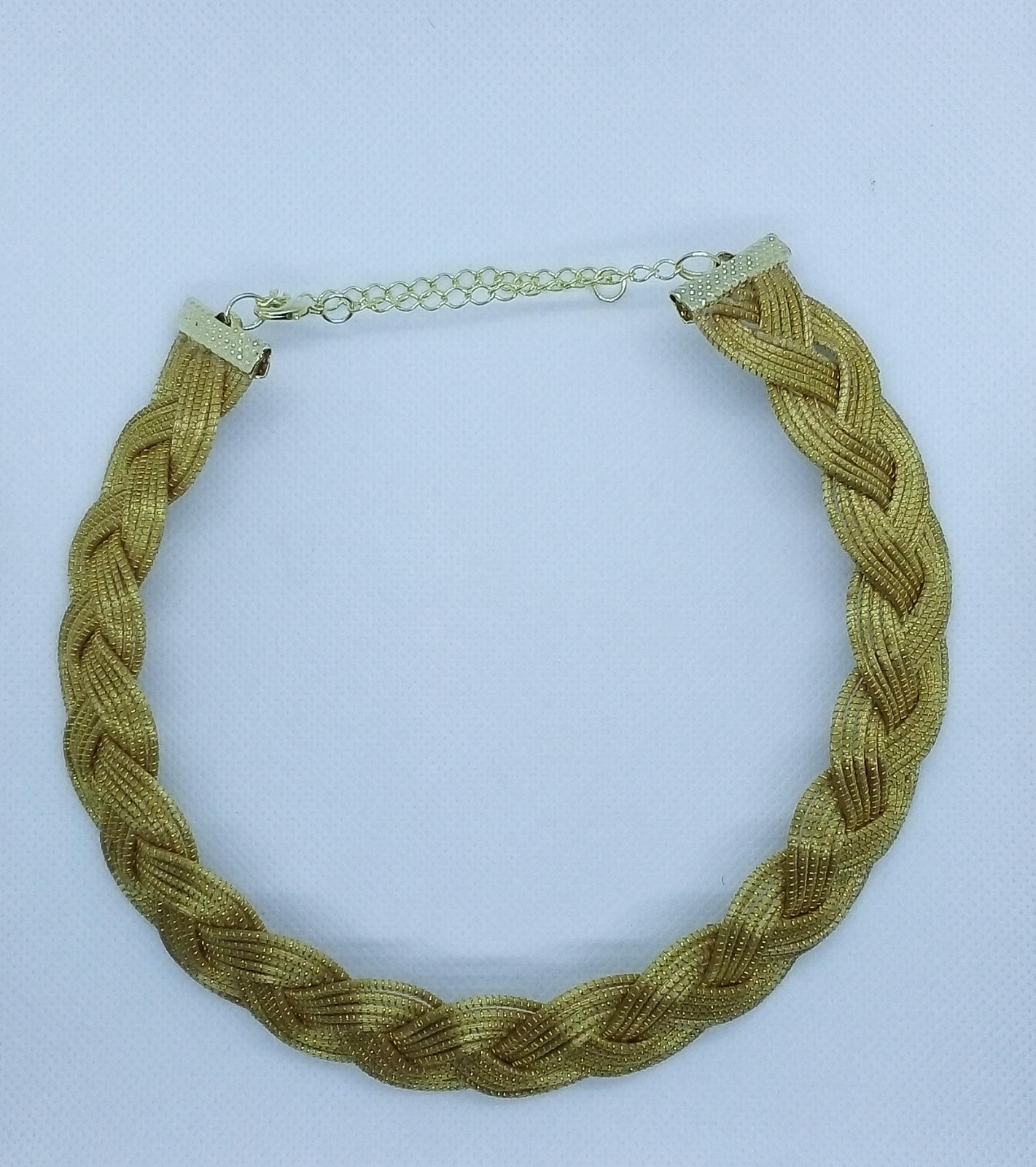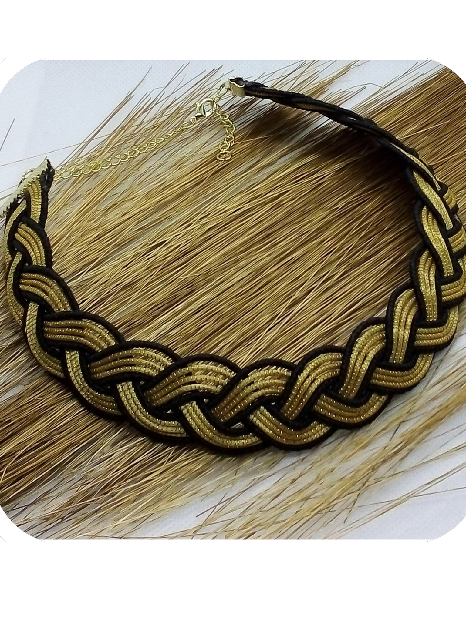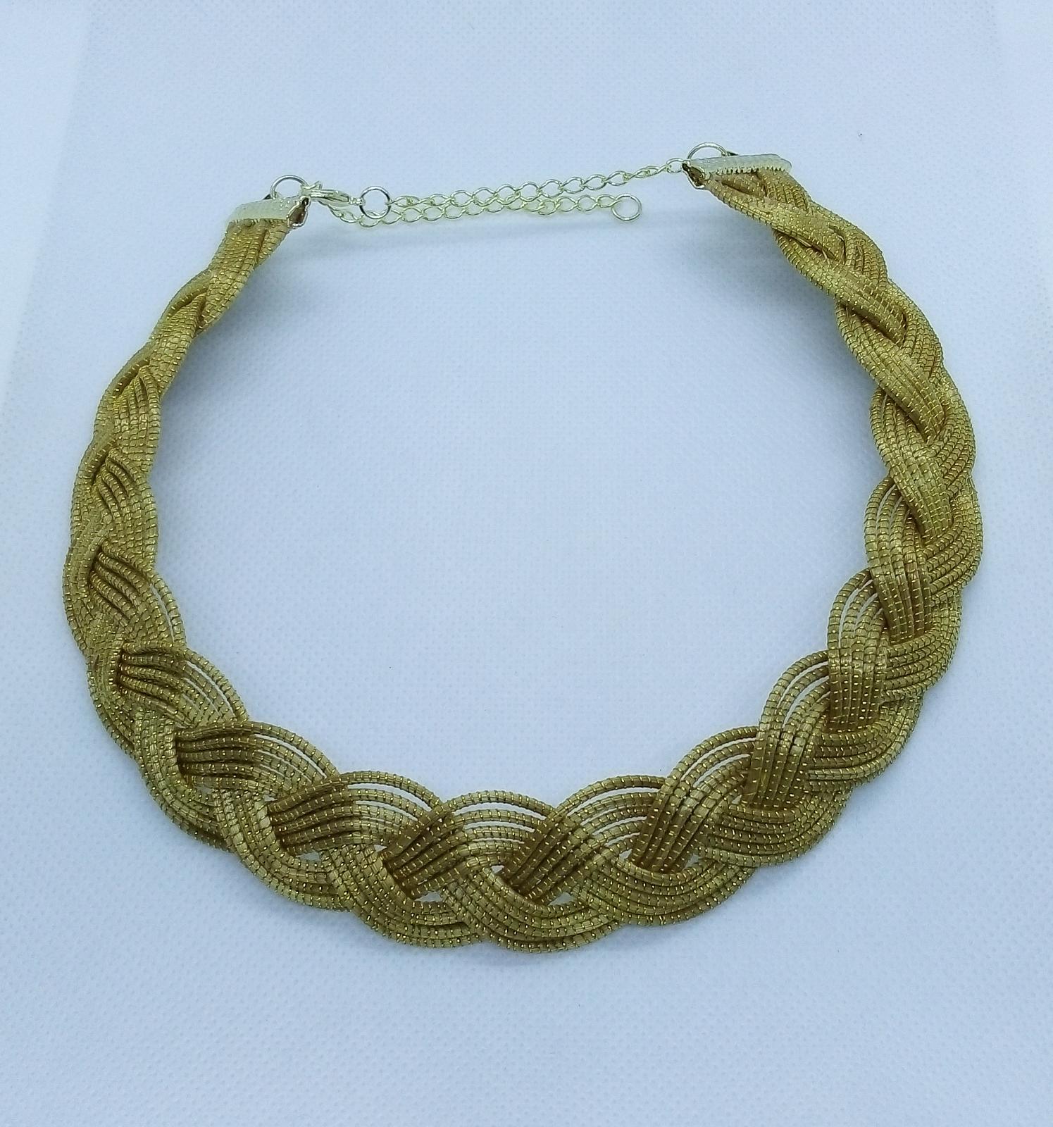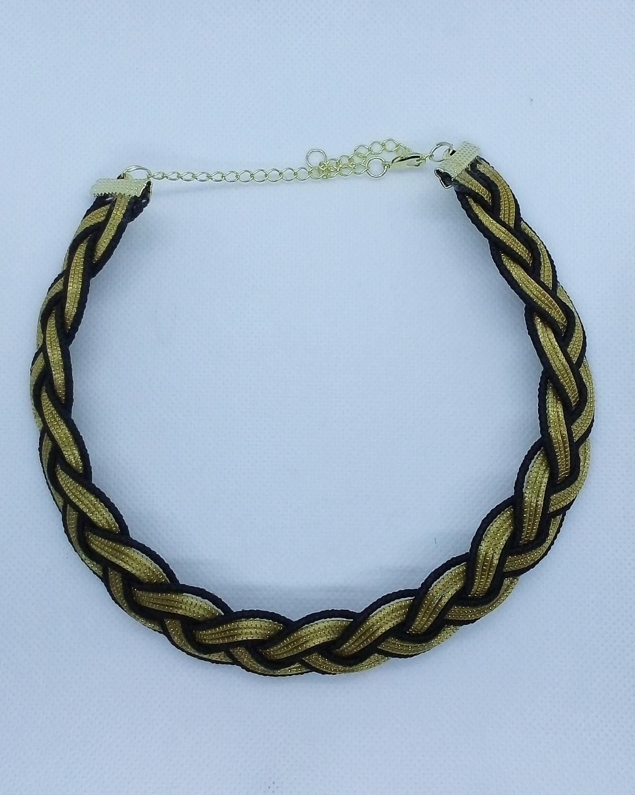Collana Girocollo rigido intrecciato largo fatto a mano in capim dourado