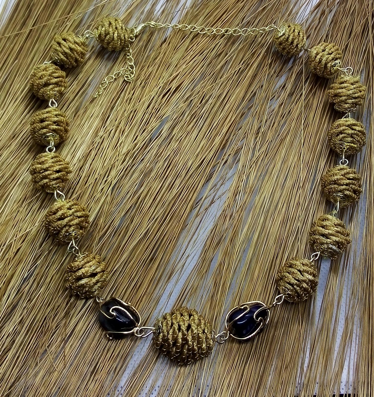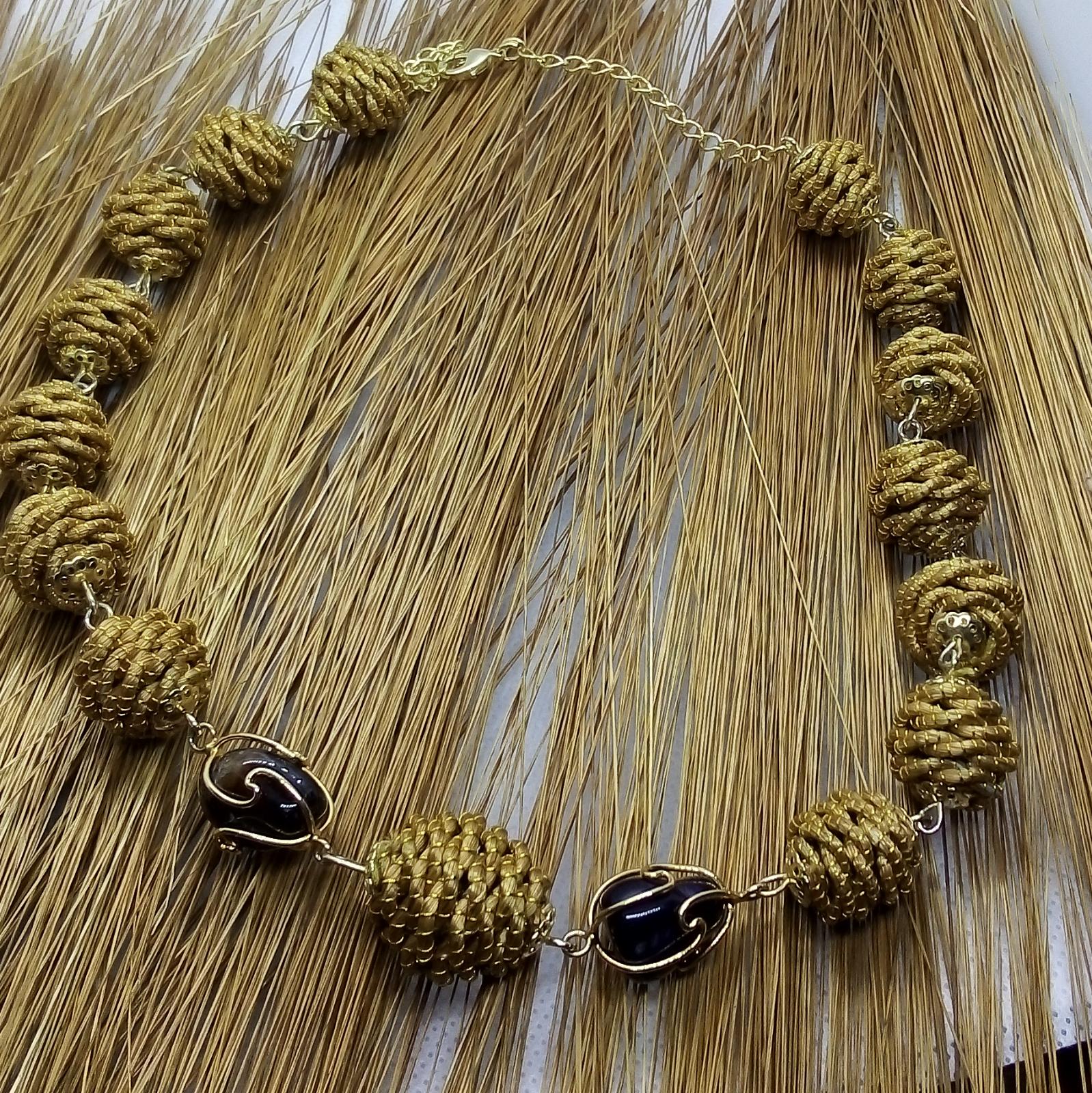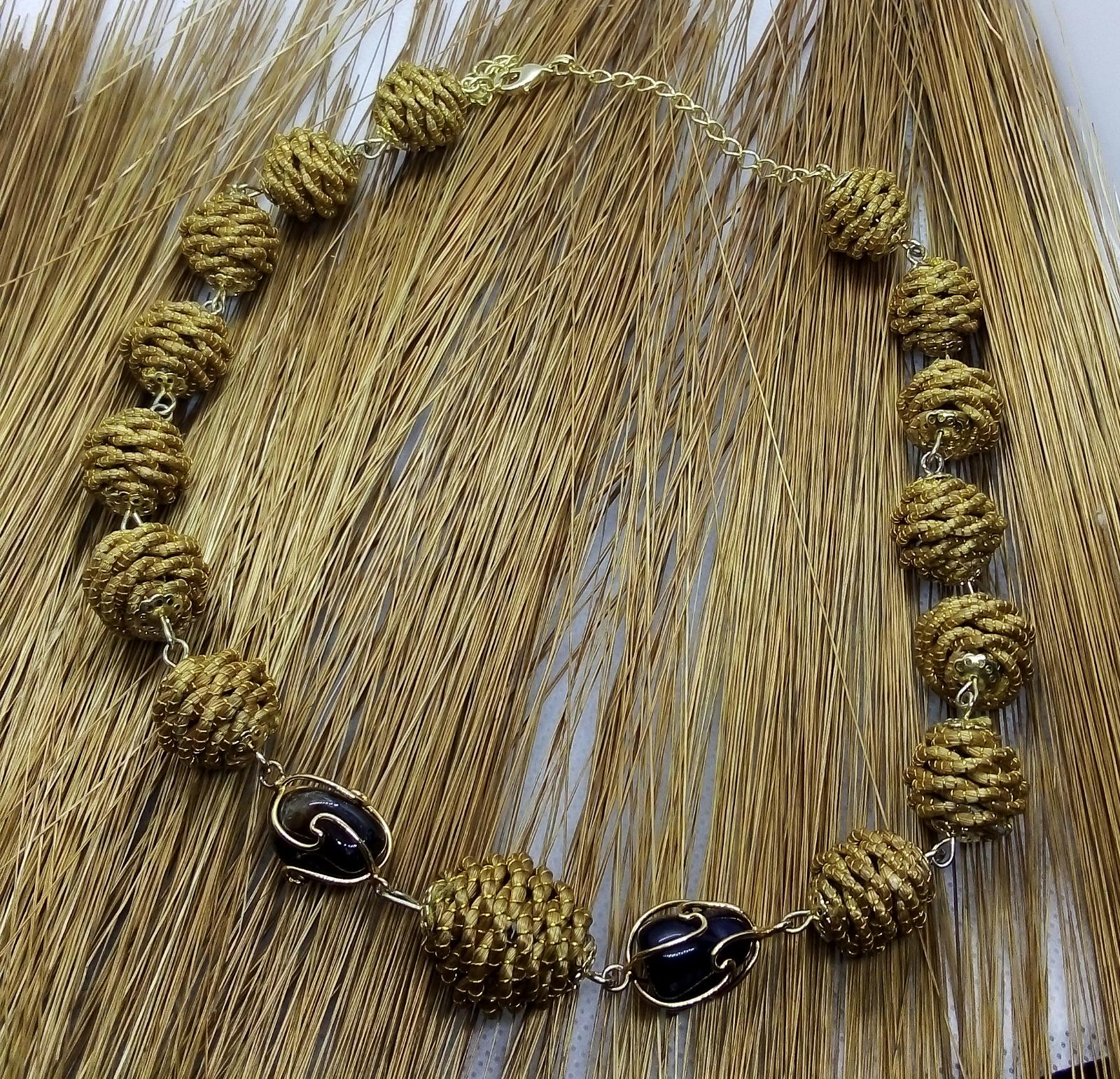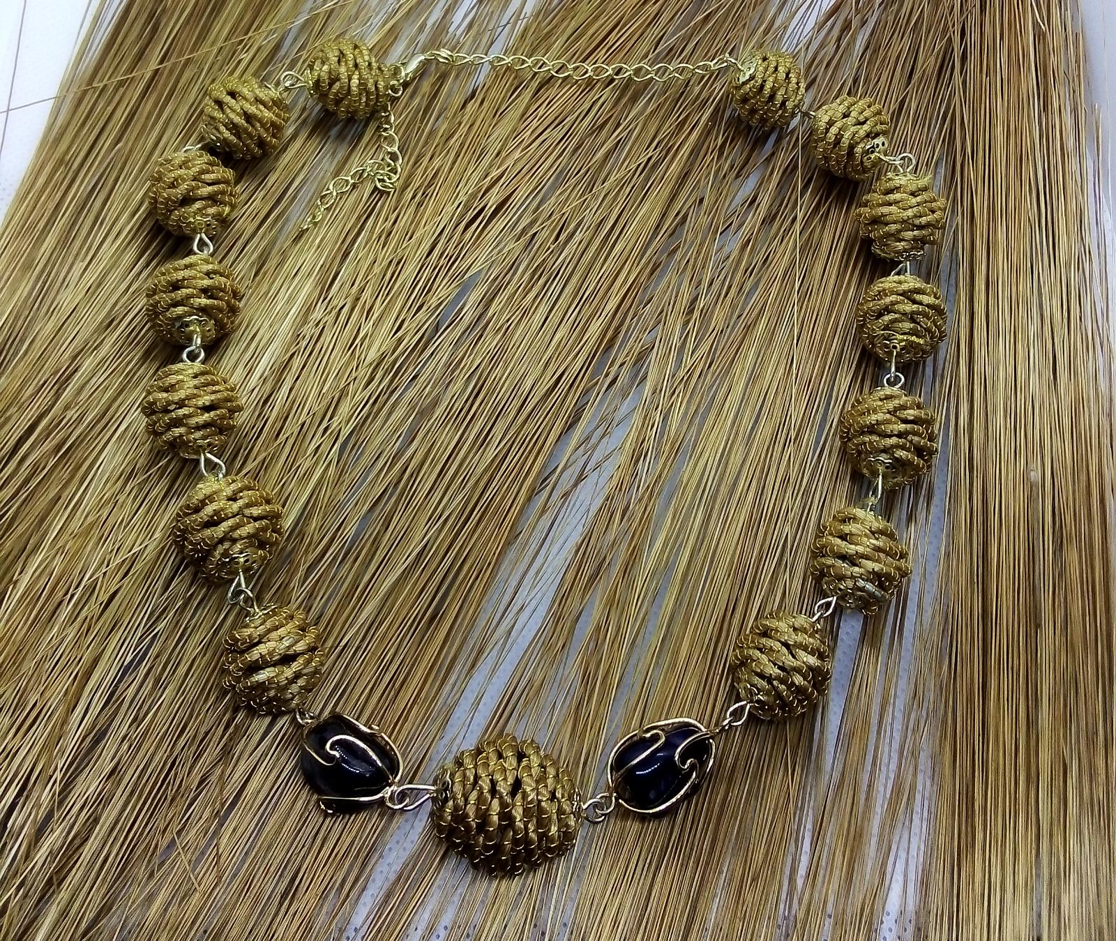 Collana girocollo con Diverse palline in capim Dourado, finalizzazione con piccoli sassi di pietre dure e pallina in capim dourado