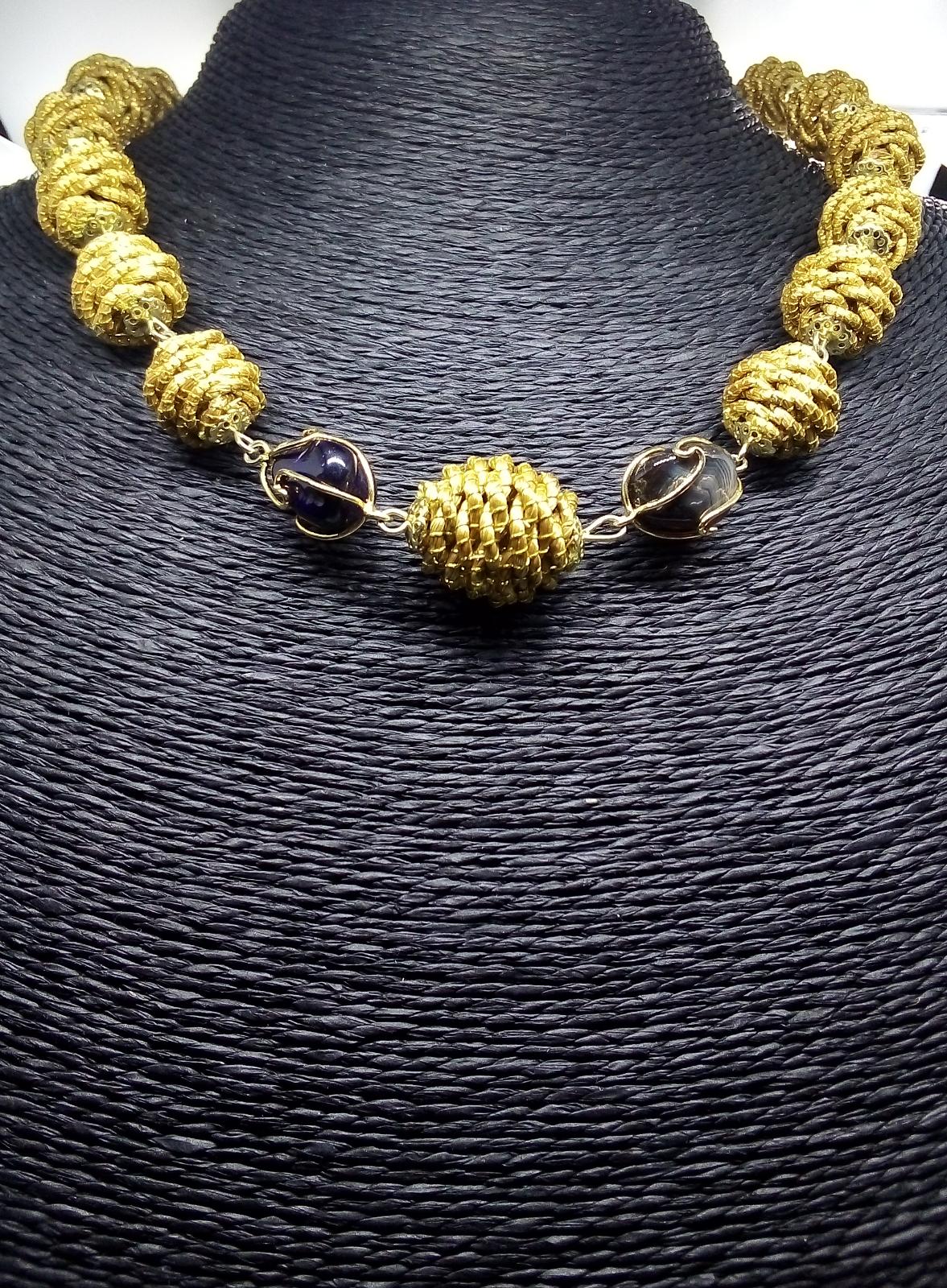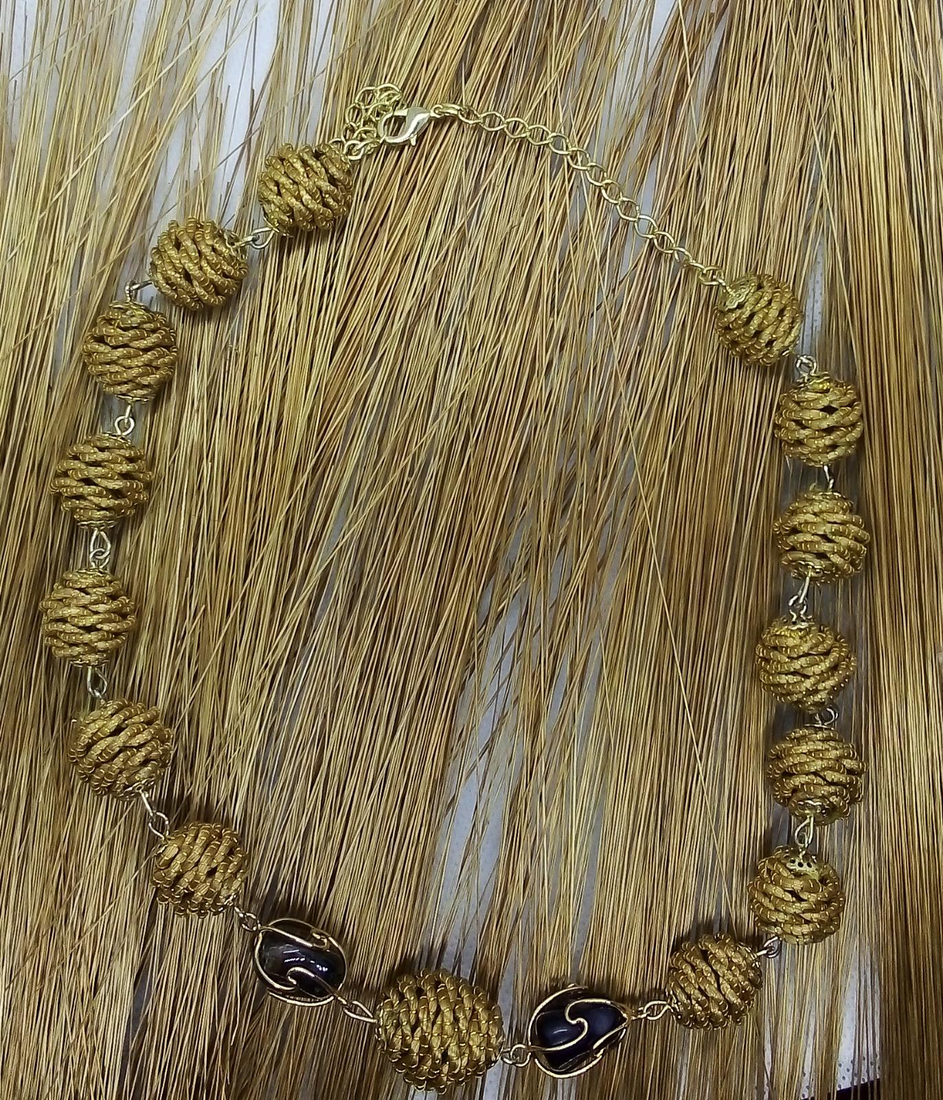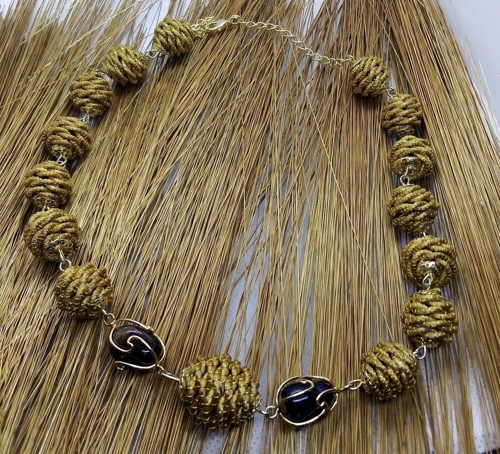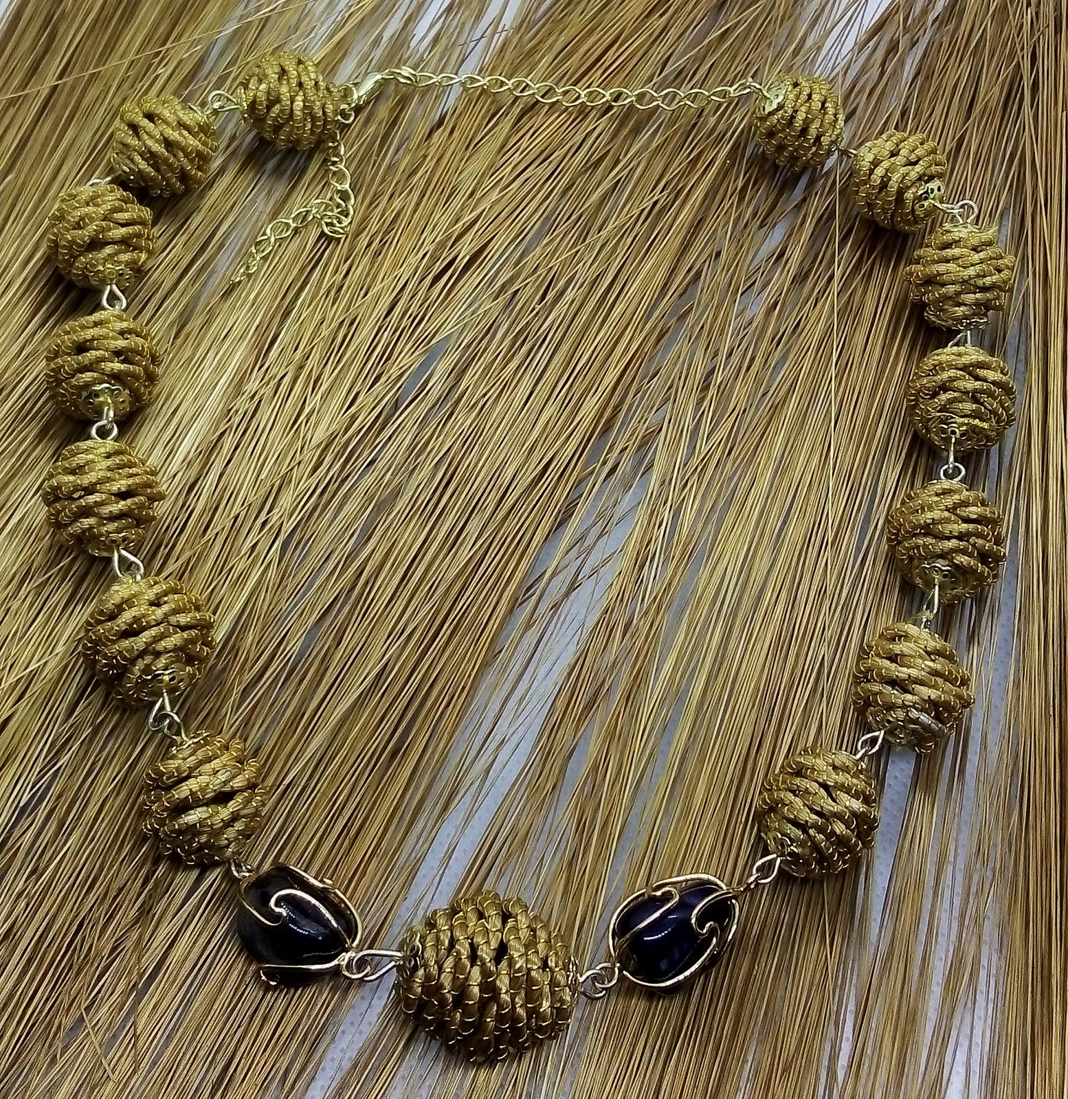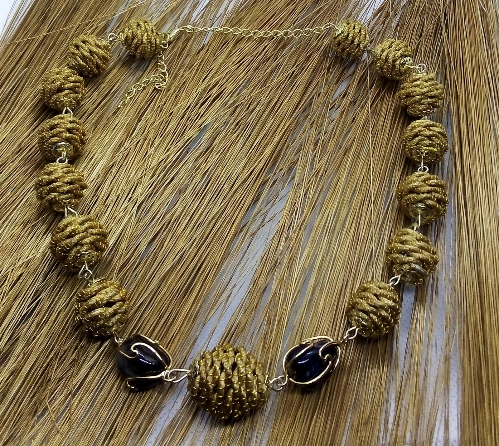 Collana girocollo con Diverse palline in capim Dourado, finalizzazione con piccoli sassi di pietre dure e pallina in capim dourado