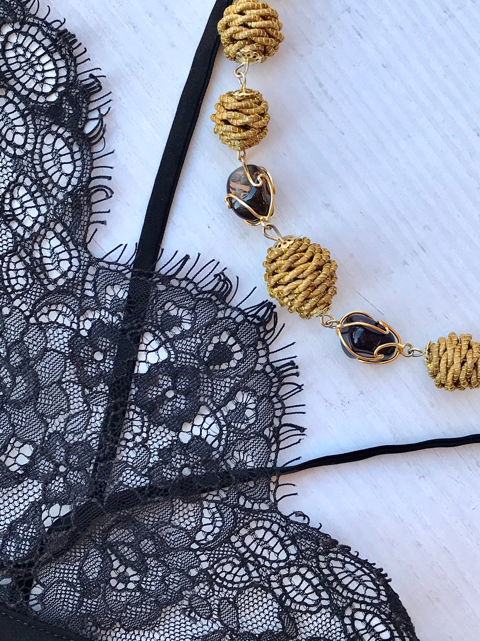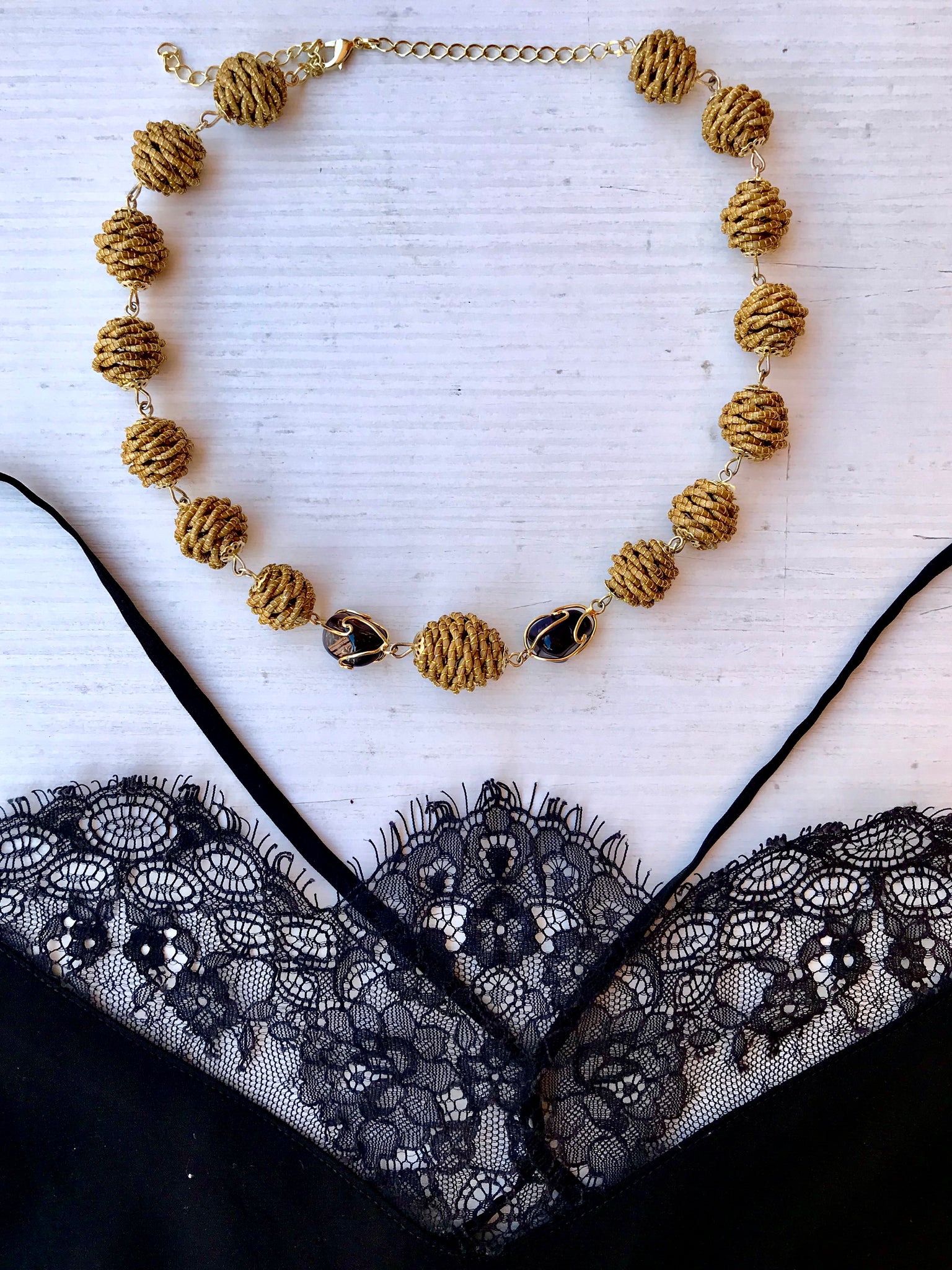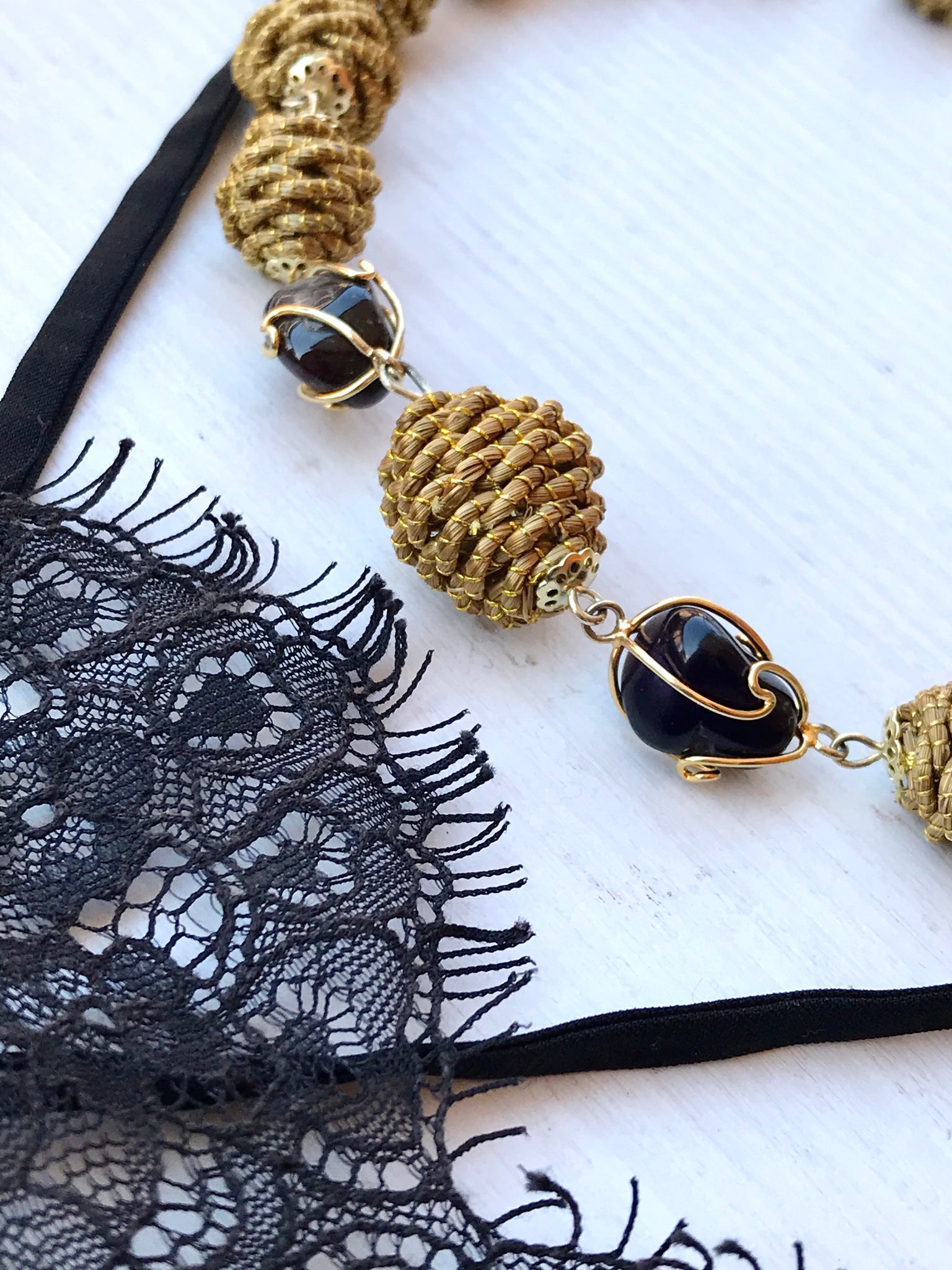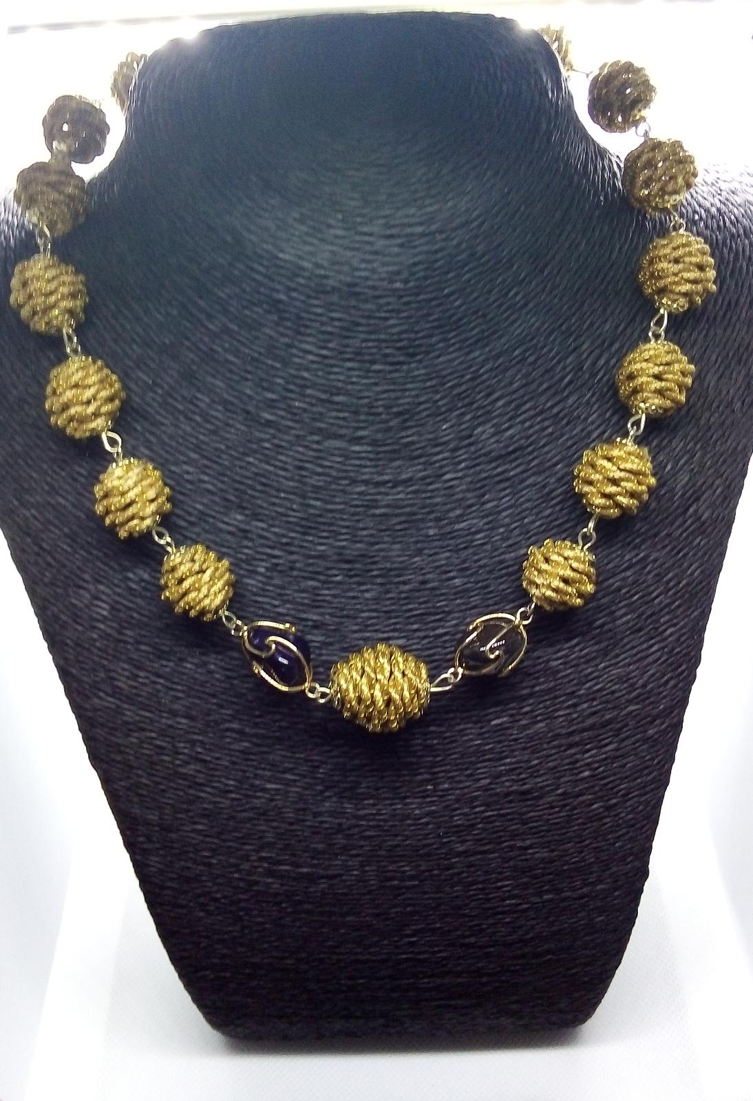 Collana girocollo con Diverse palline in capim Dourado, finalizzazione con piccoli sassi di pietre dure e pallina in capim dourado