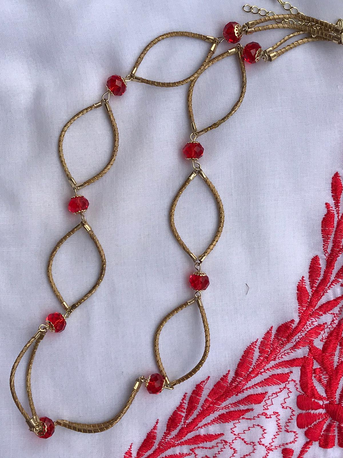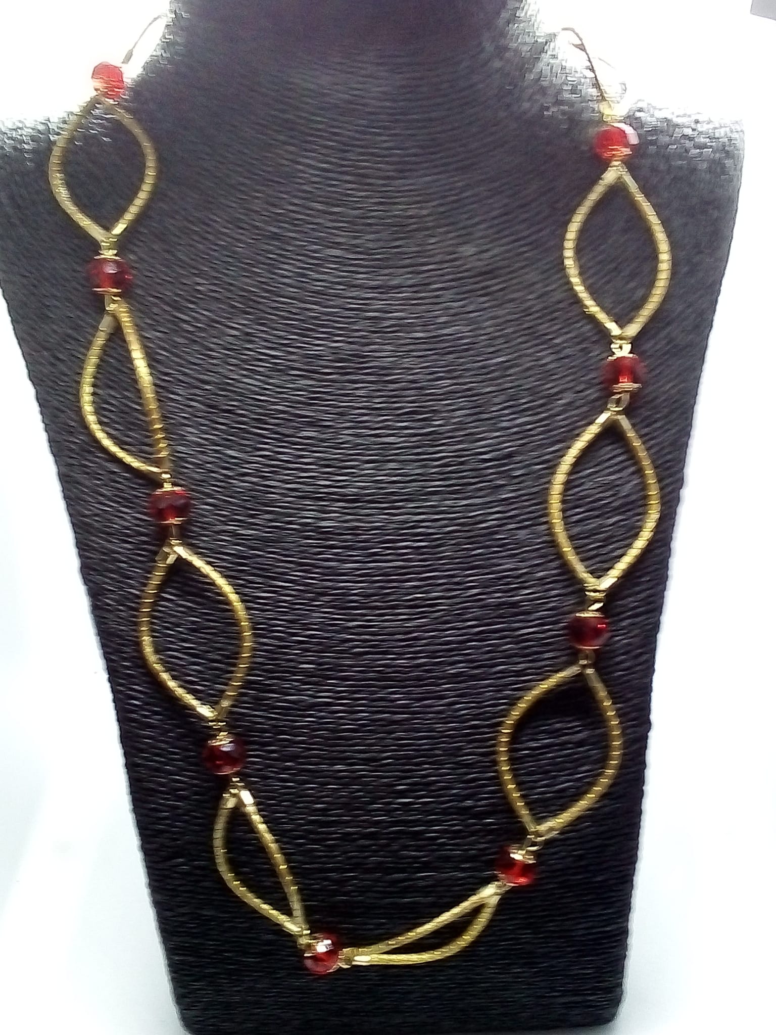 Collana Capim Dourado a forma ellittica con perline di vetro sfaccettate.