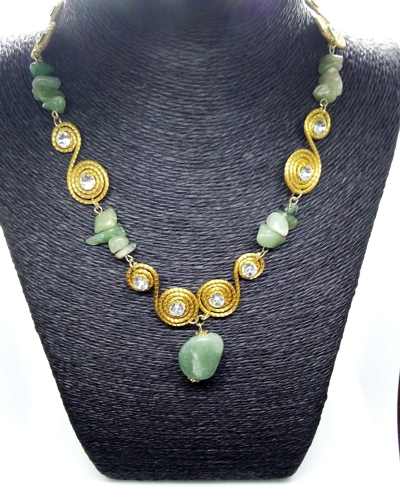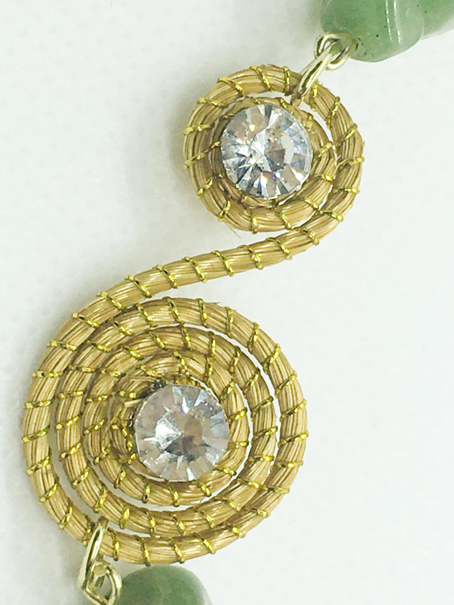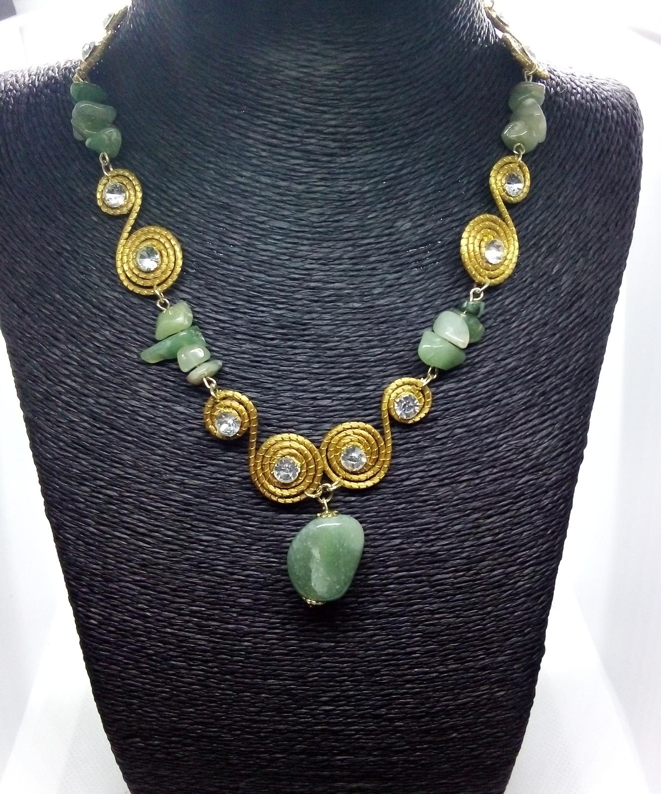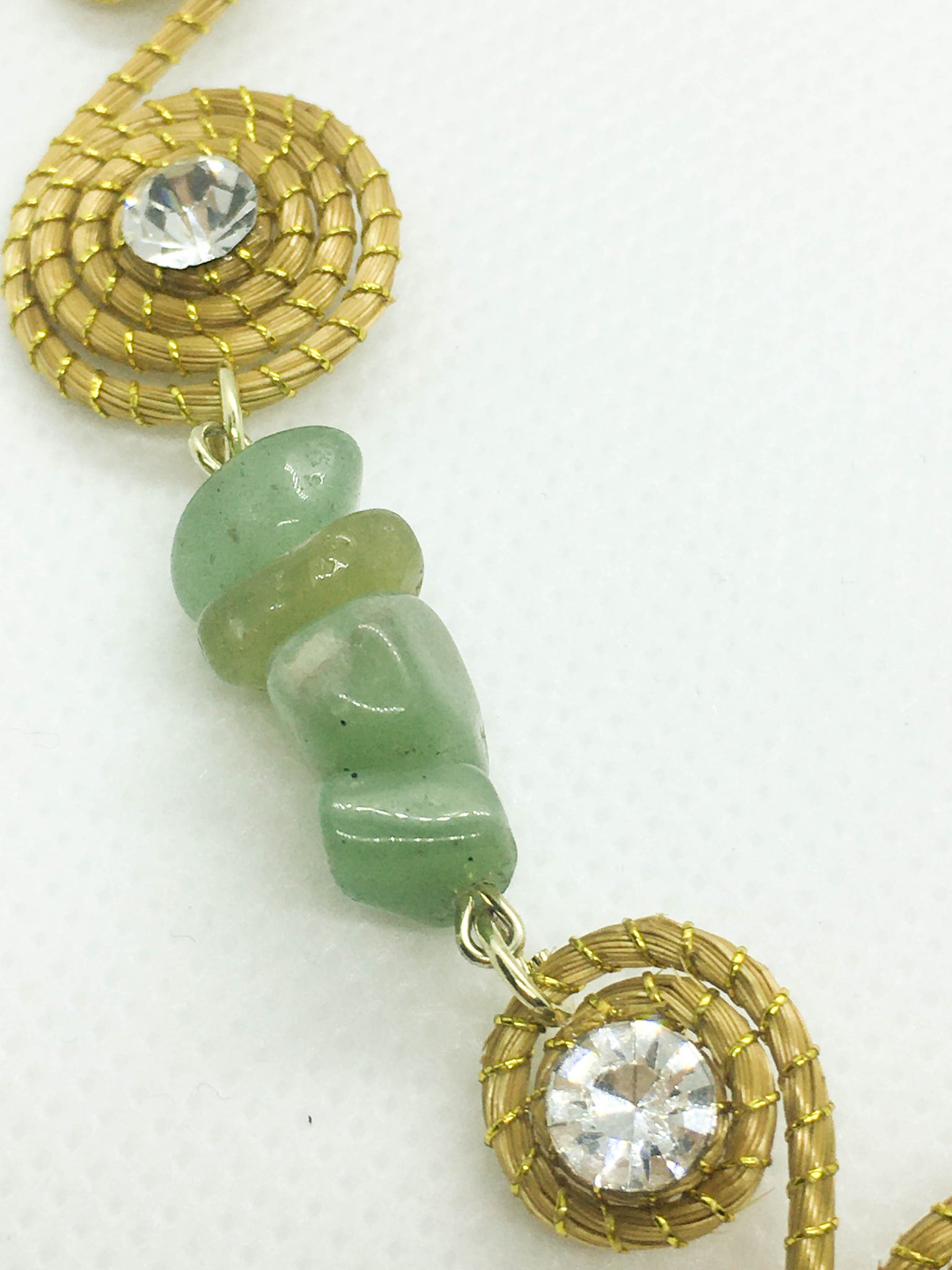 Collana in Capim Dourado spirale com strass trasparente e chips pietre avventurina, ciondolo sassi burattato di avventurina molto delicato e raffinato