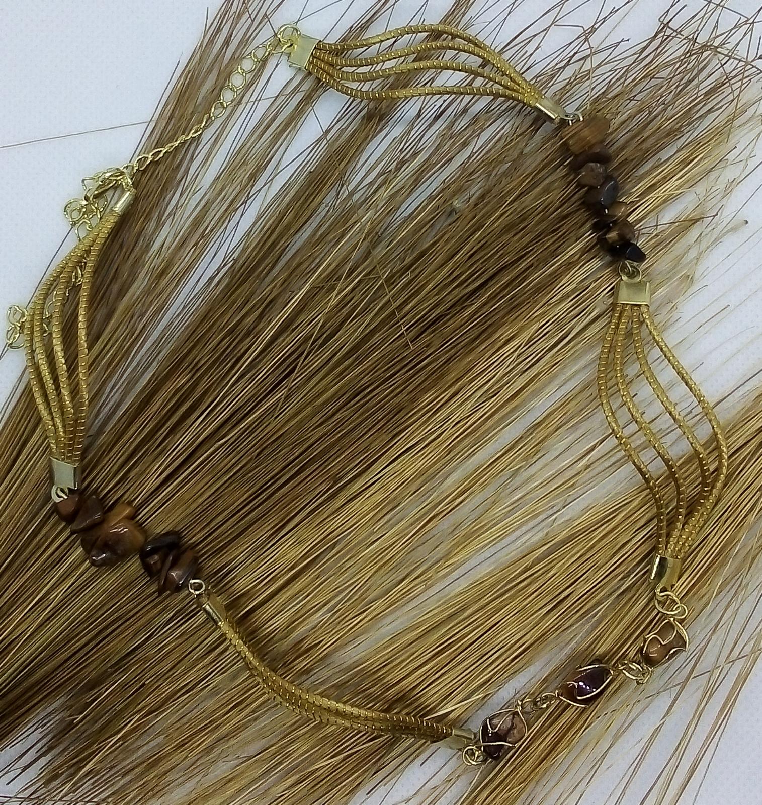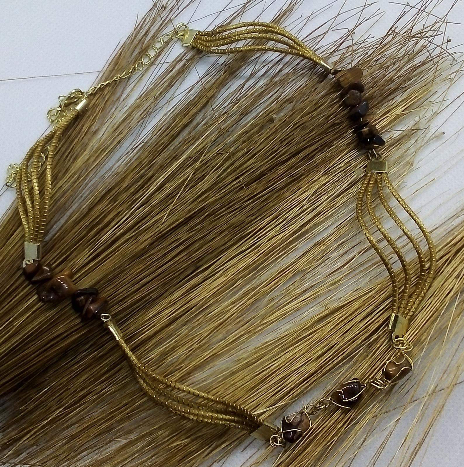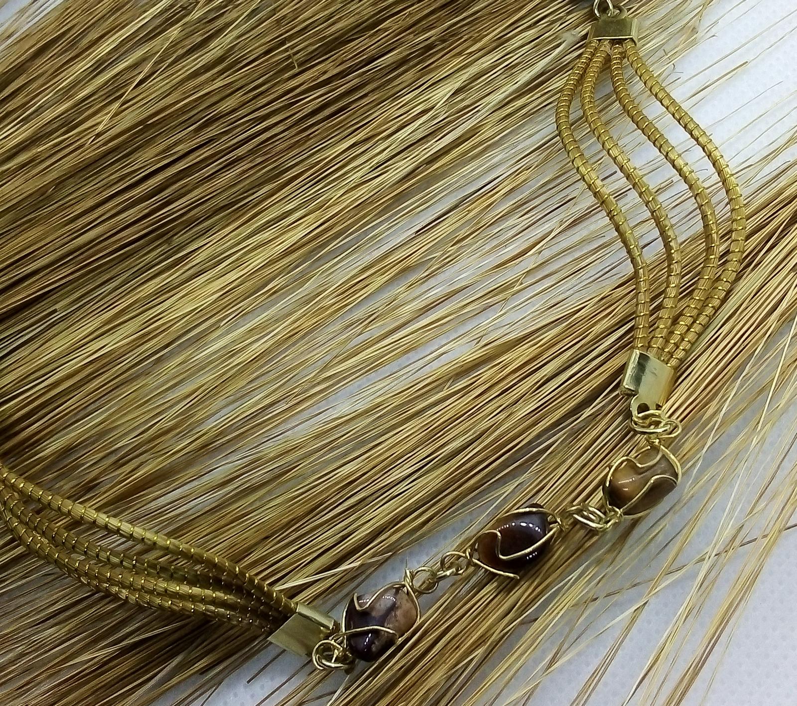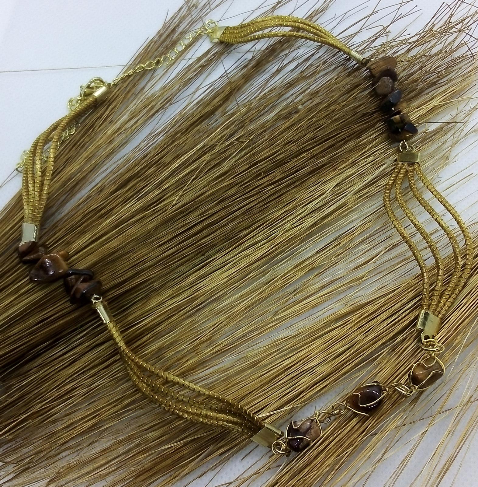 Collana Capim Dourado e chips di pietre, finalizzato con chips pietre dure, occhio di tigre