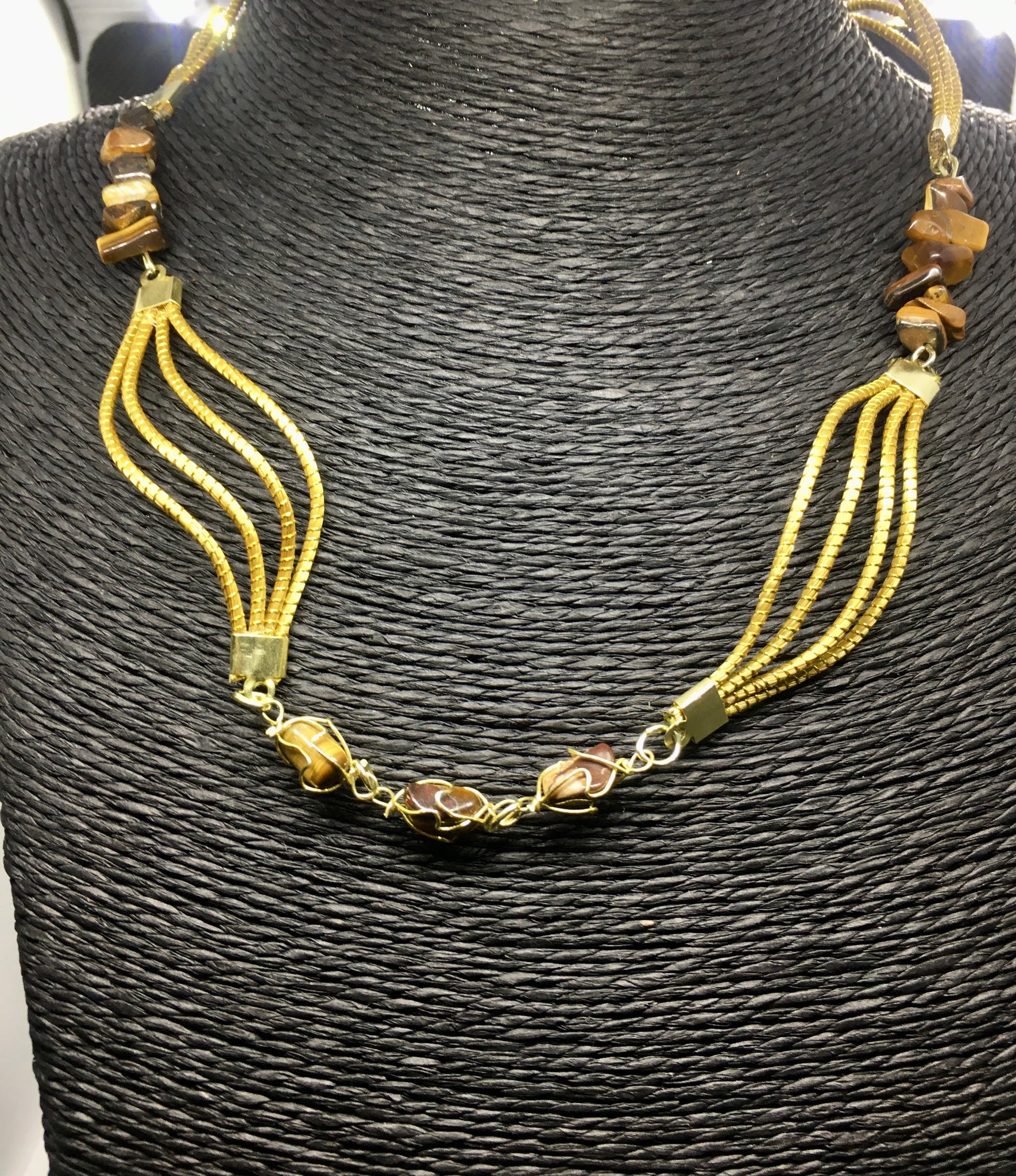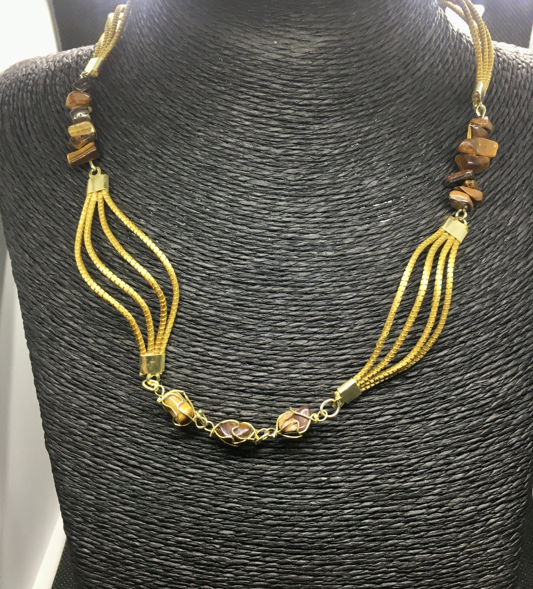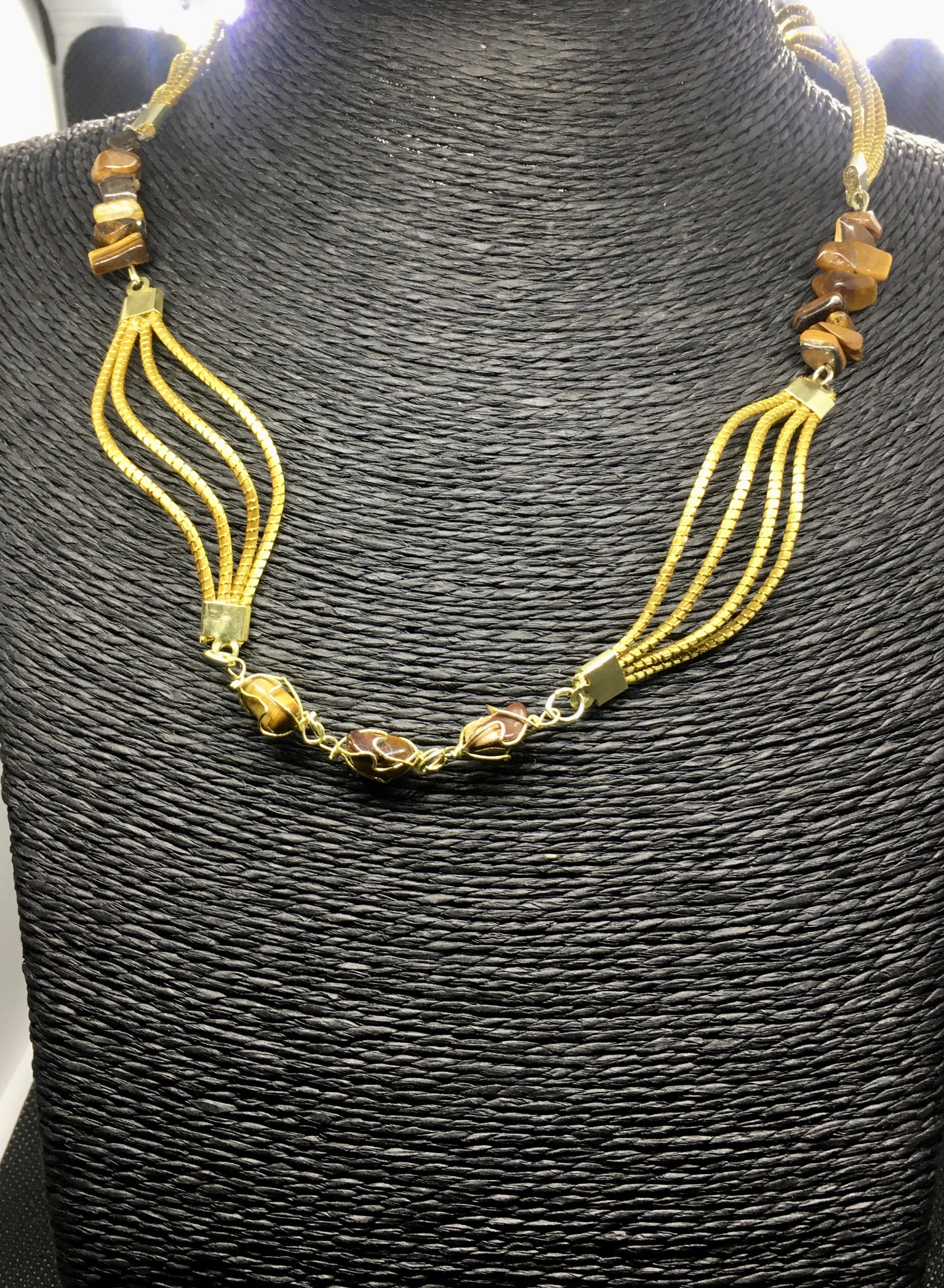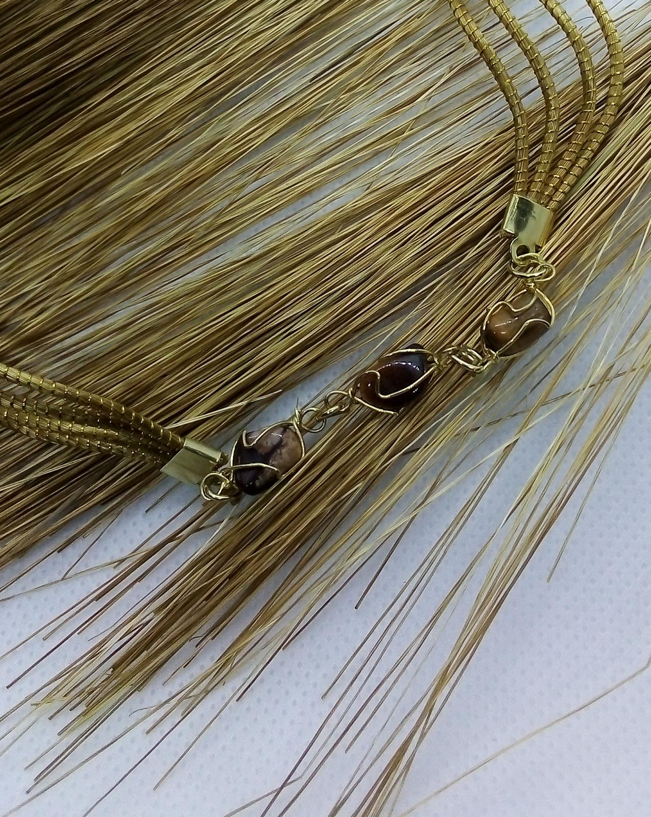 Collana Capim Dourado e chips di pietre, finalizzato con chips pietre dure, occhio di tigre