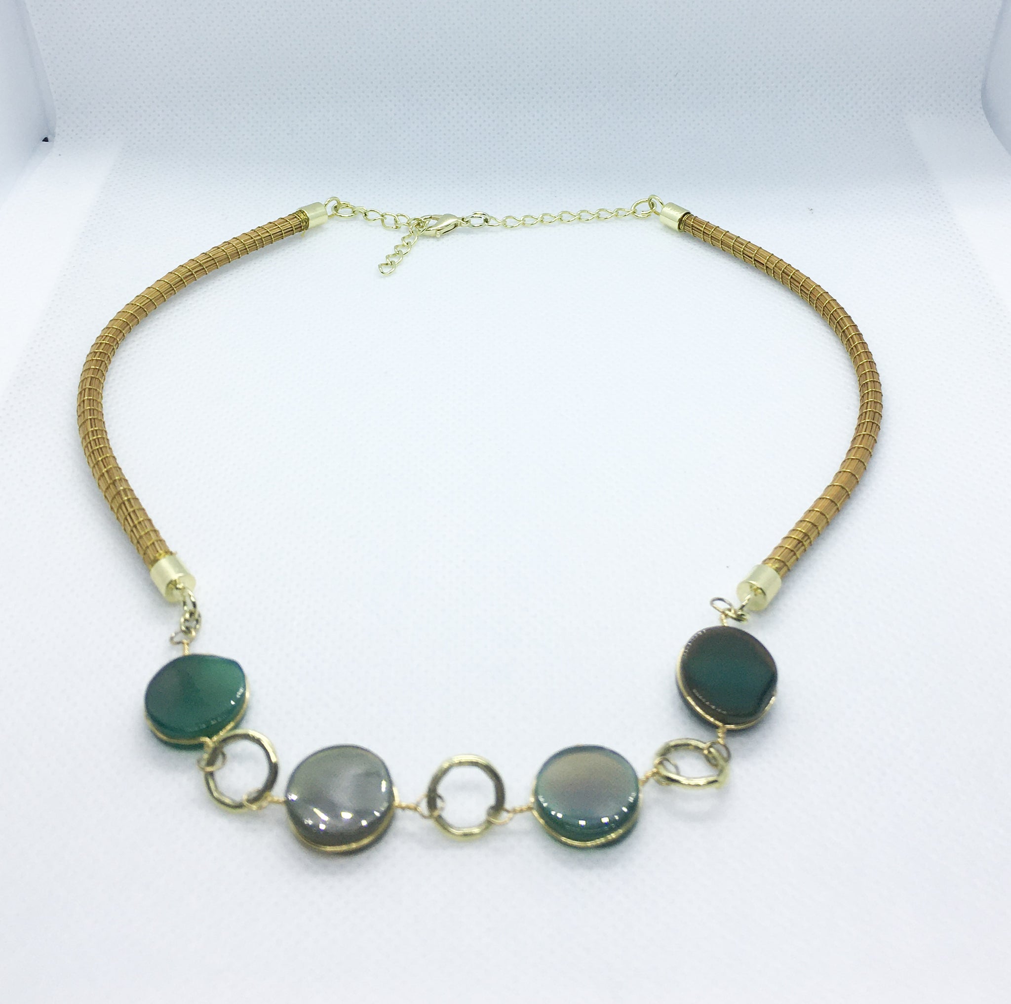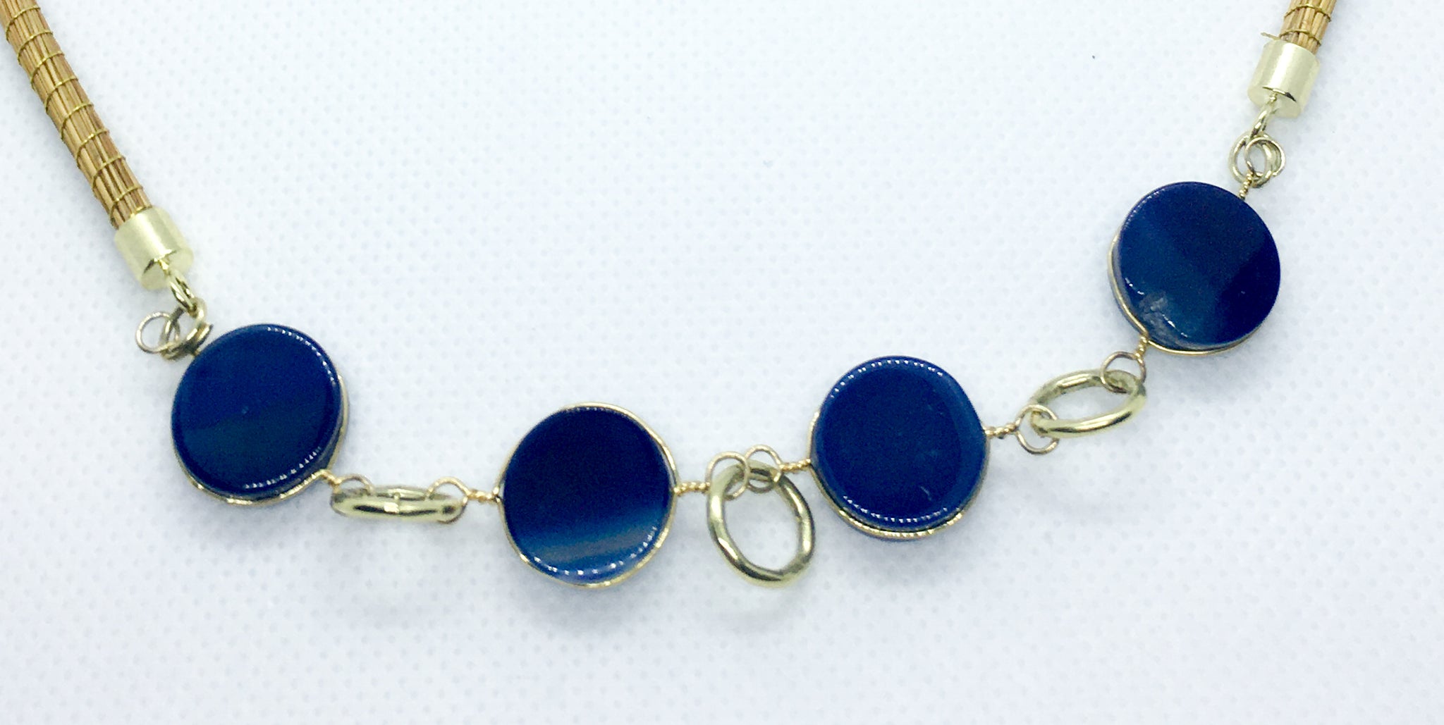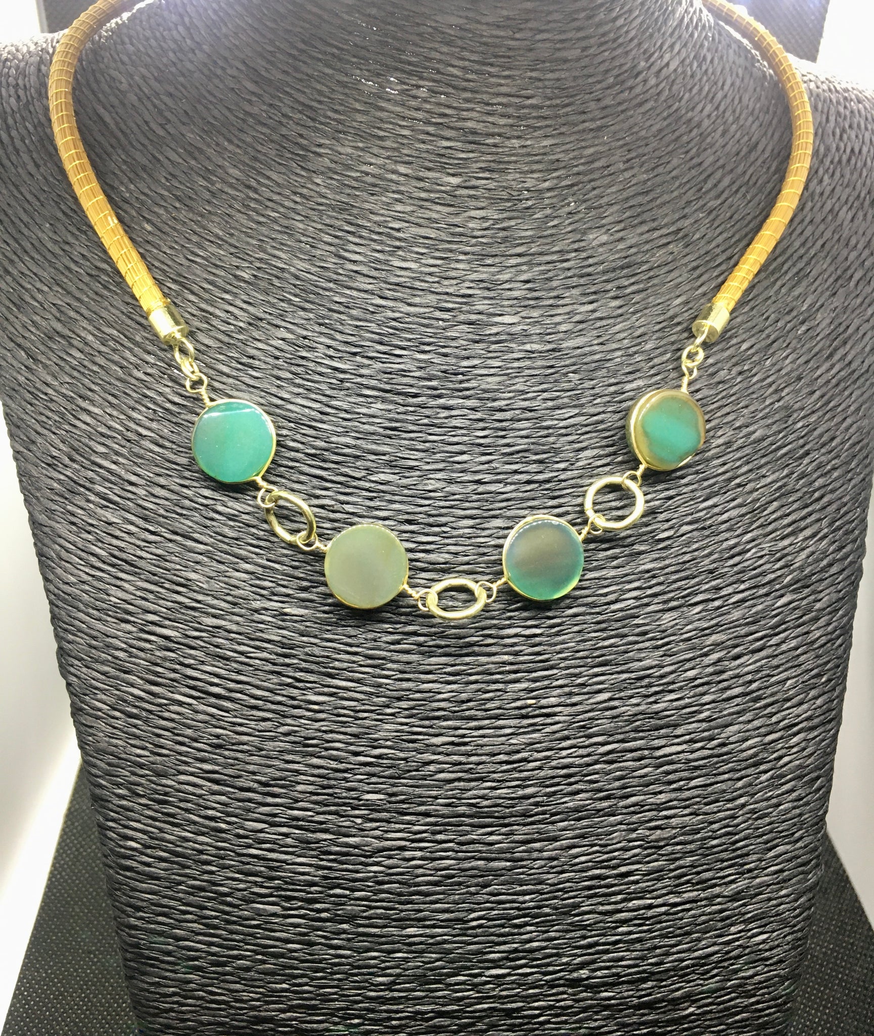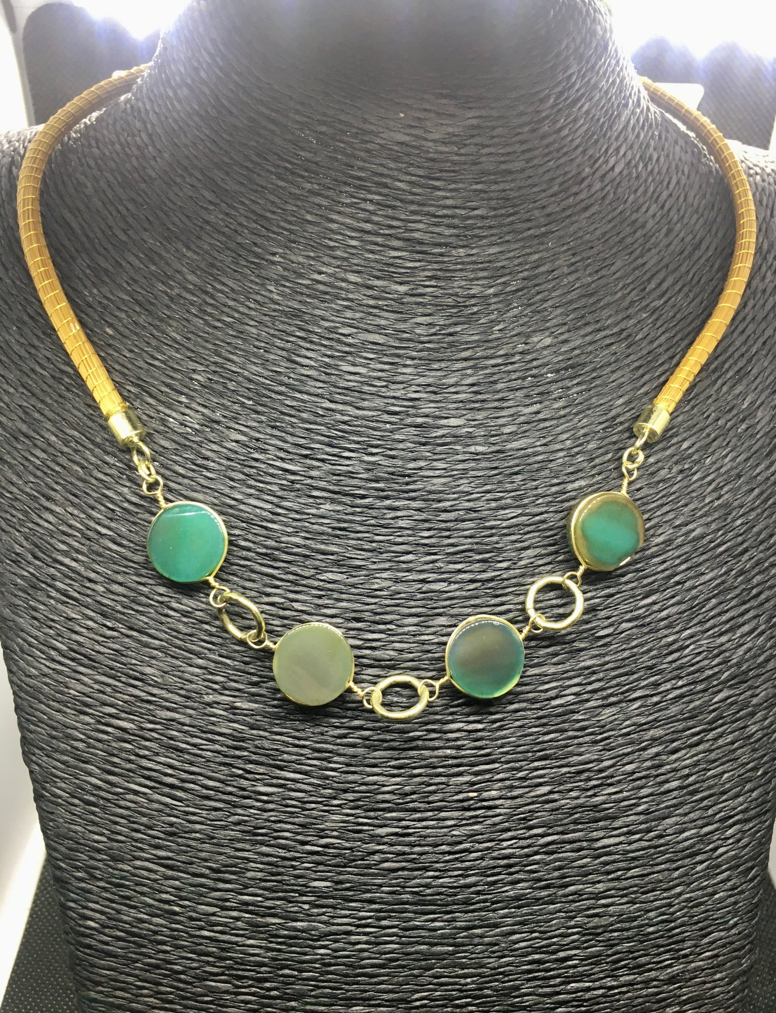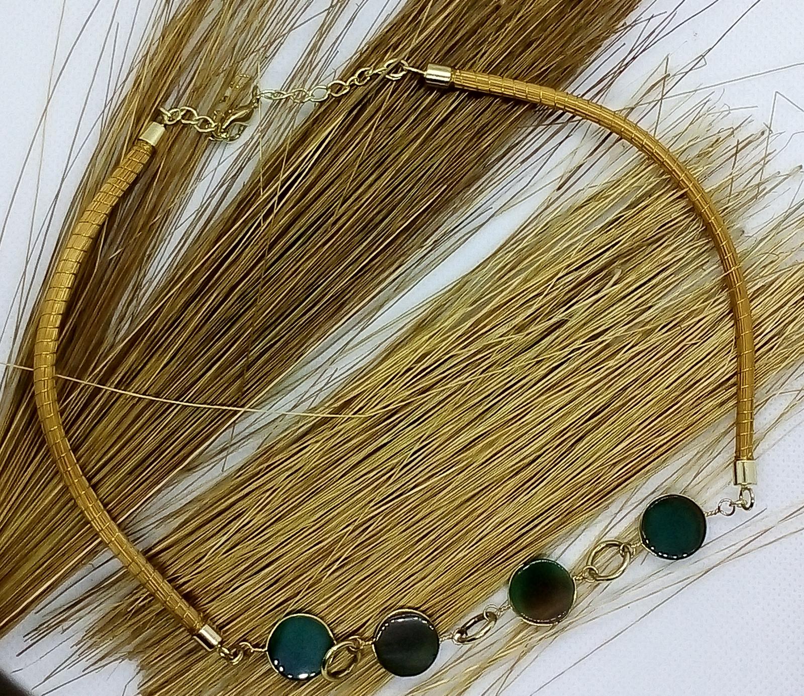 Girocollo Rigido in due pezzi in Capim Dourado, finalizzato con quattro pietre dure tonde piatte e liscie