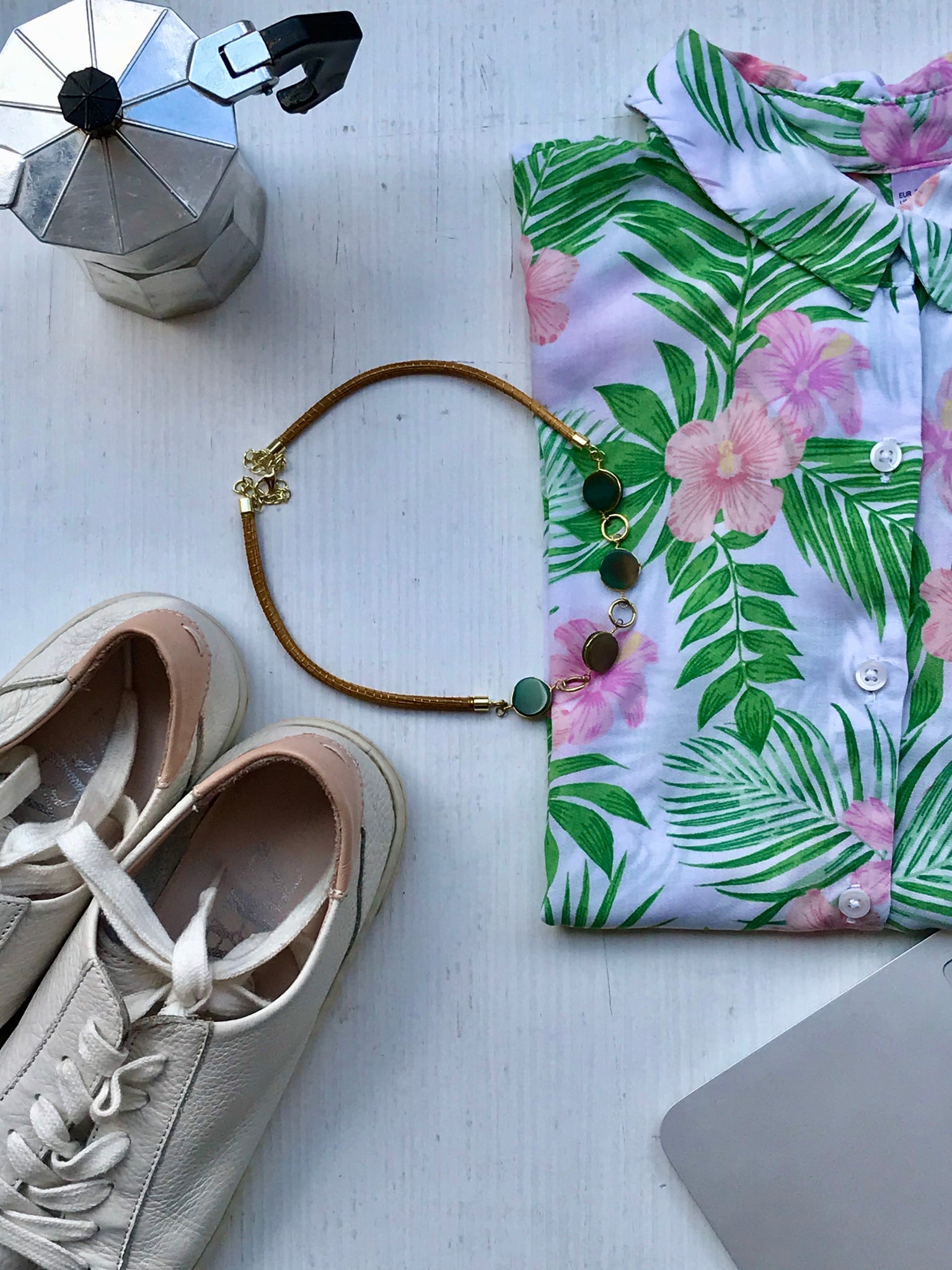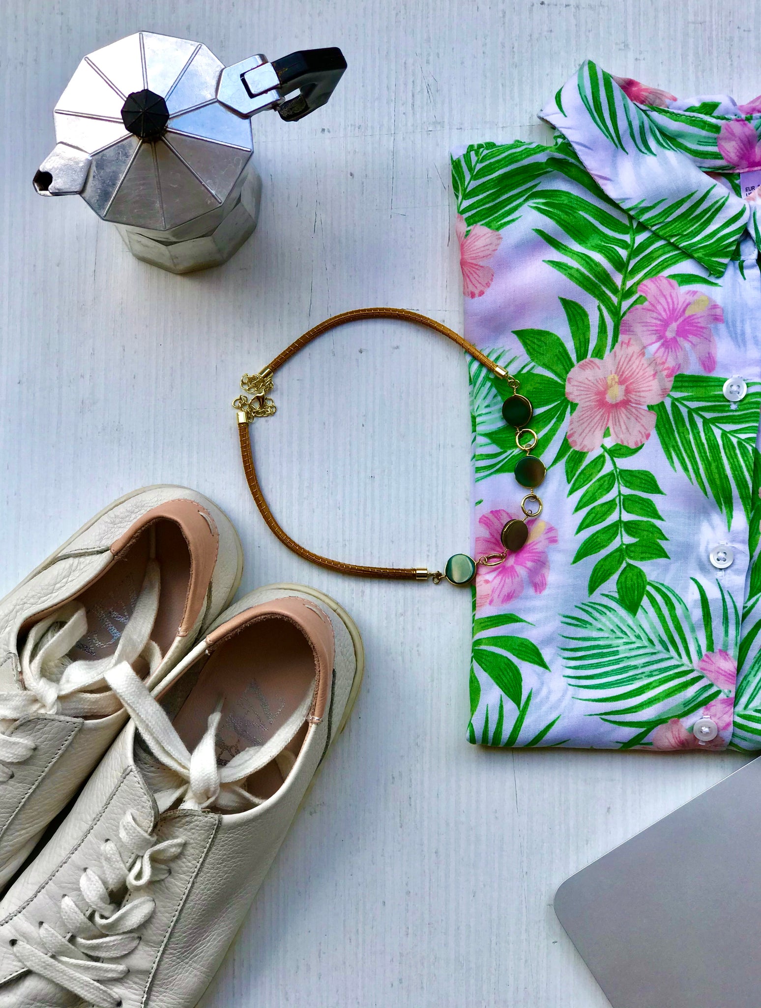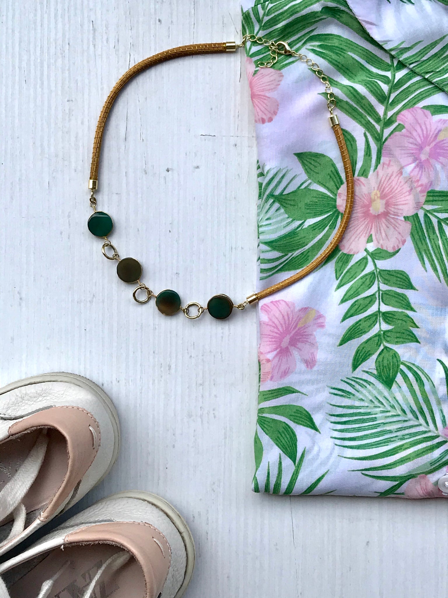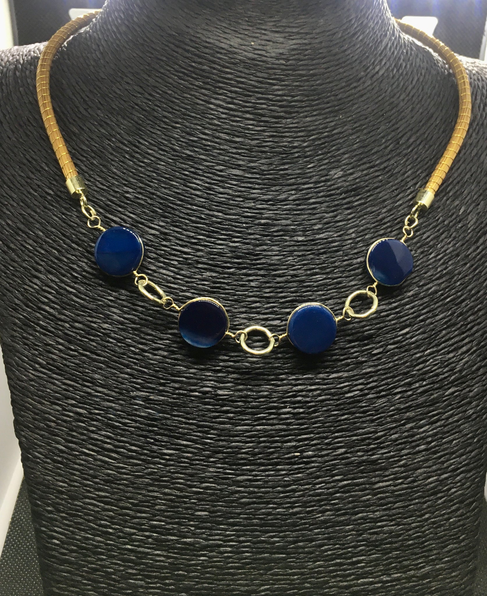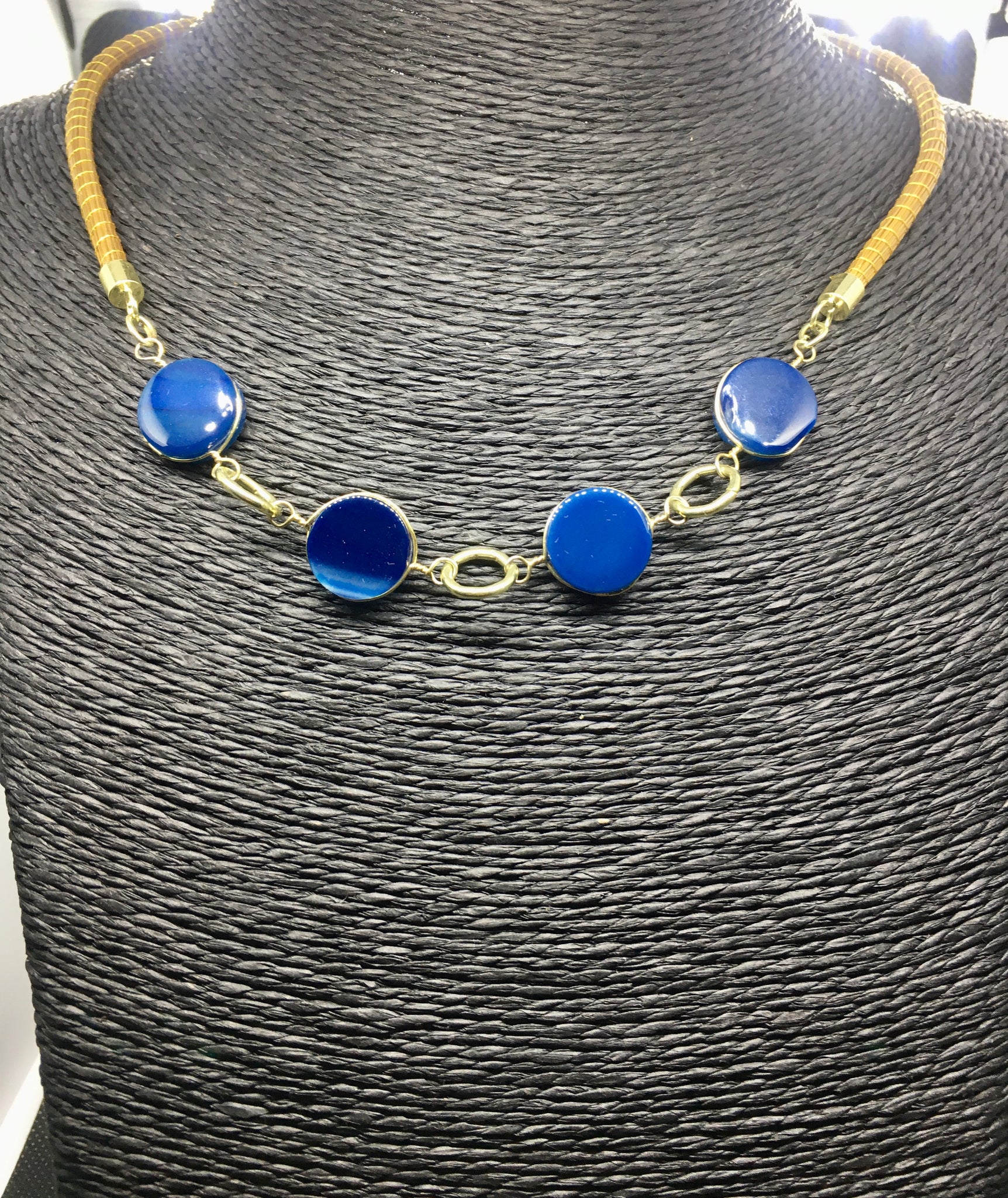 Girocollo Rigido in due pezzi in Capim Dourado, finalizzato con quattro pietre dure tonde piatte e liscie