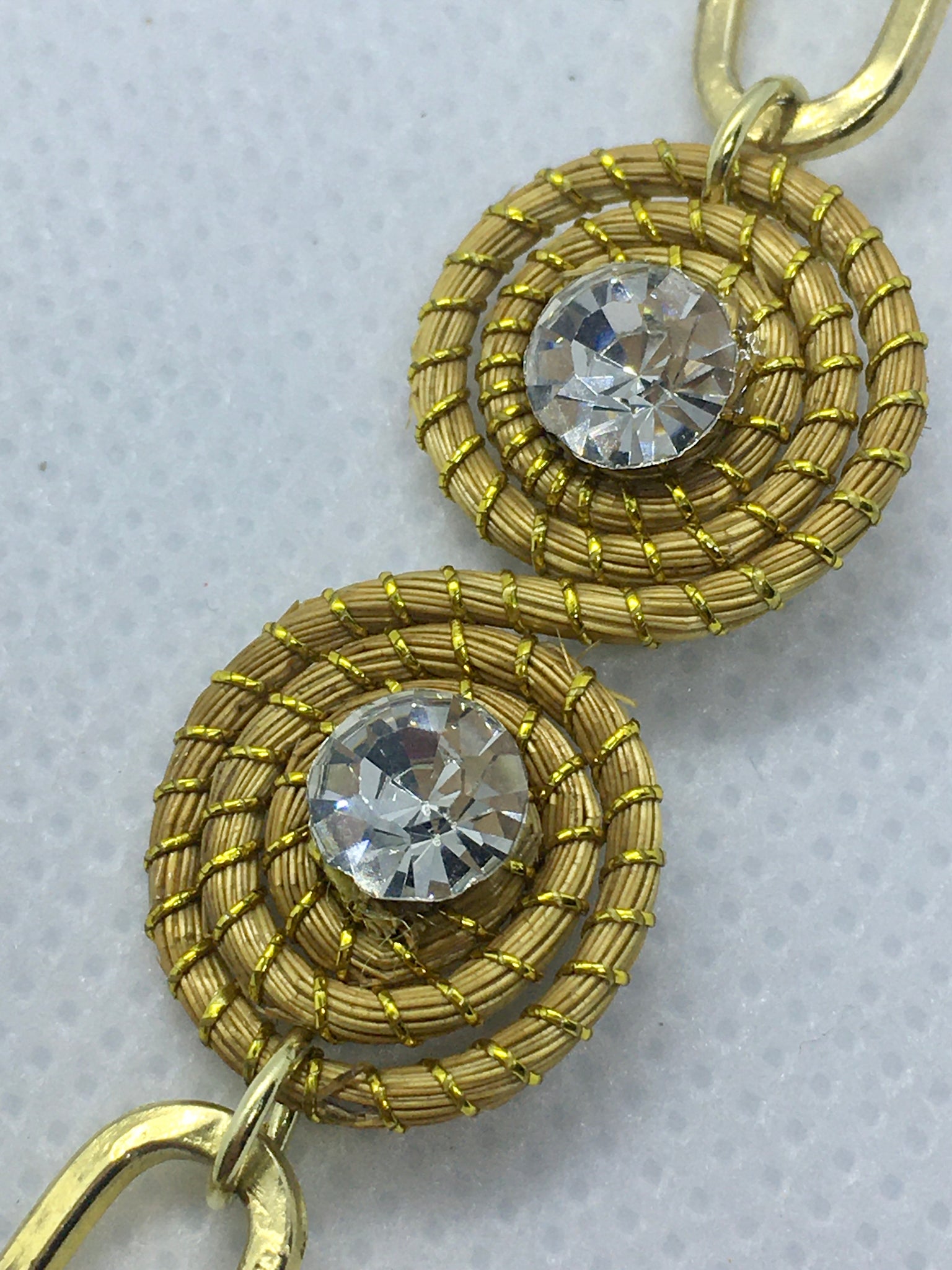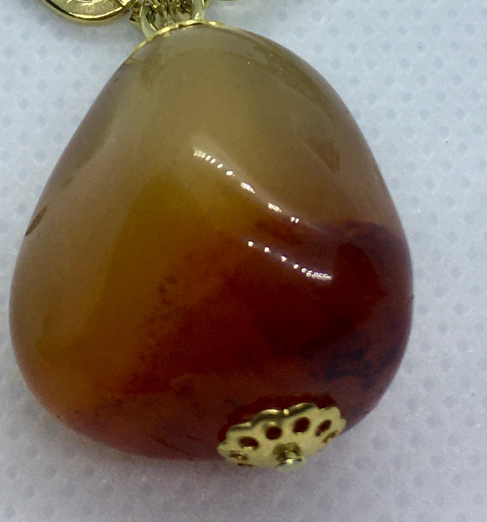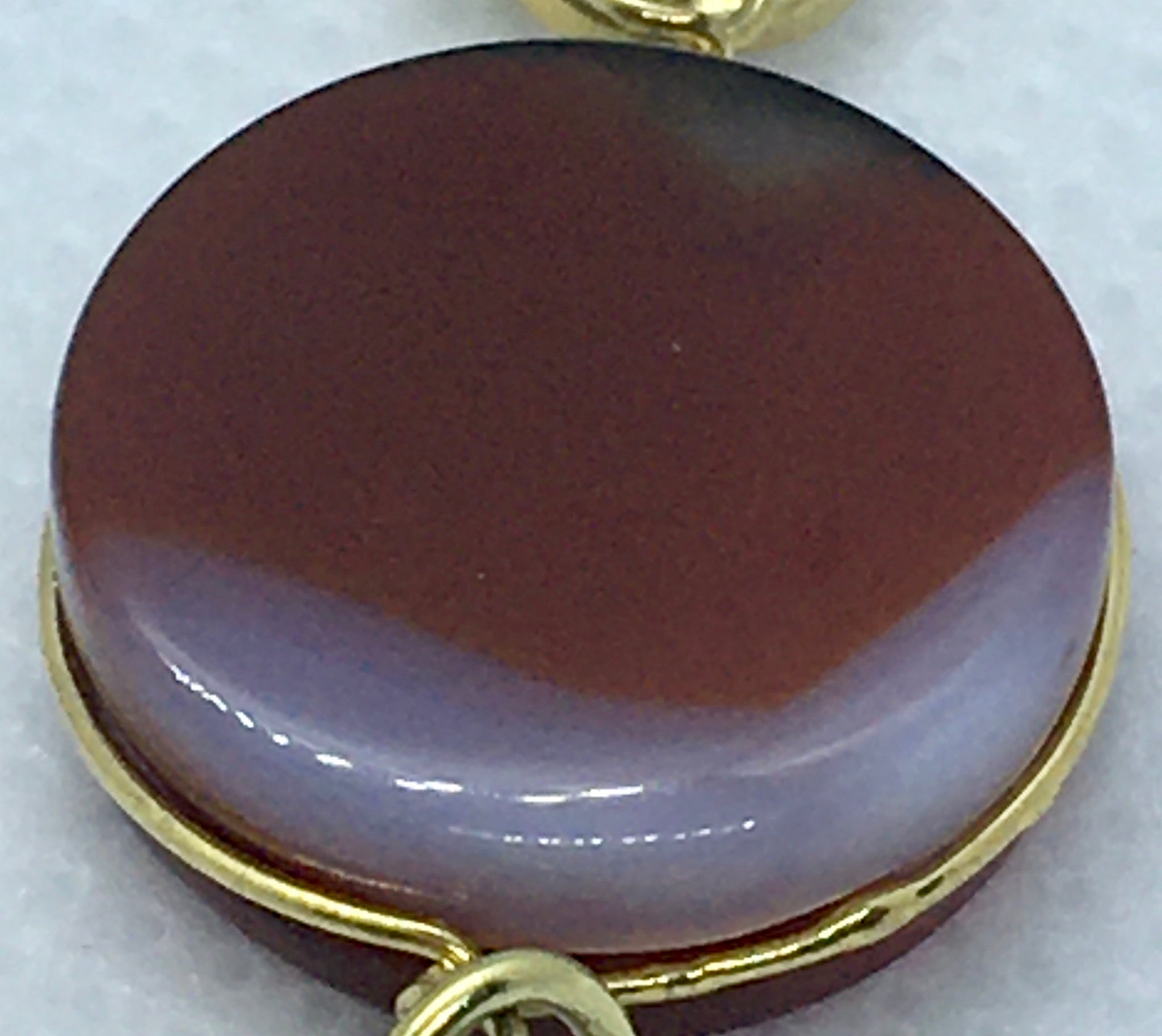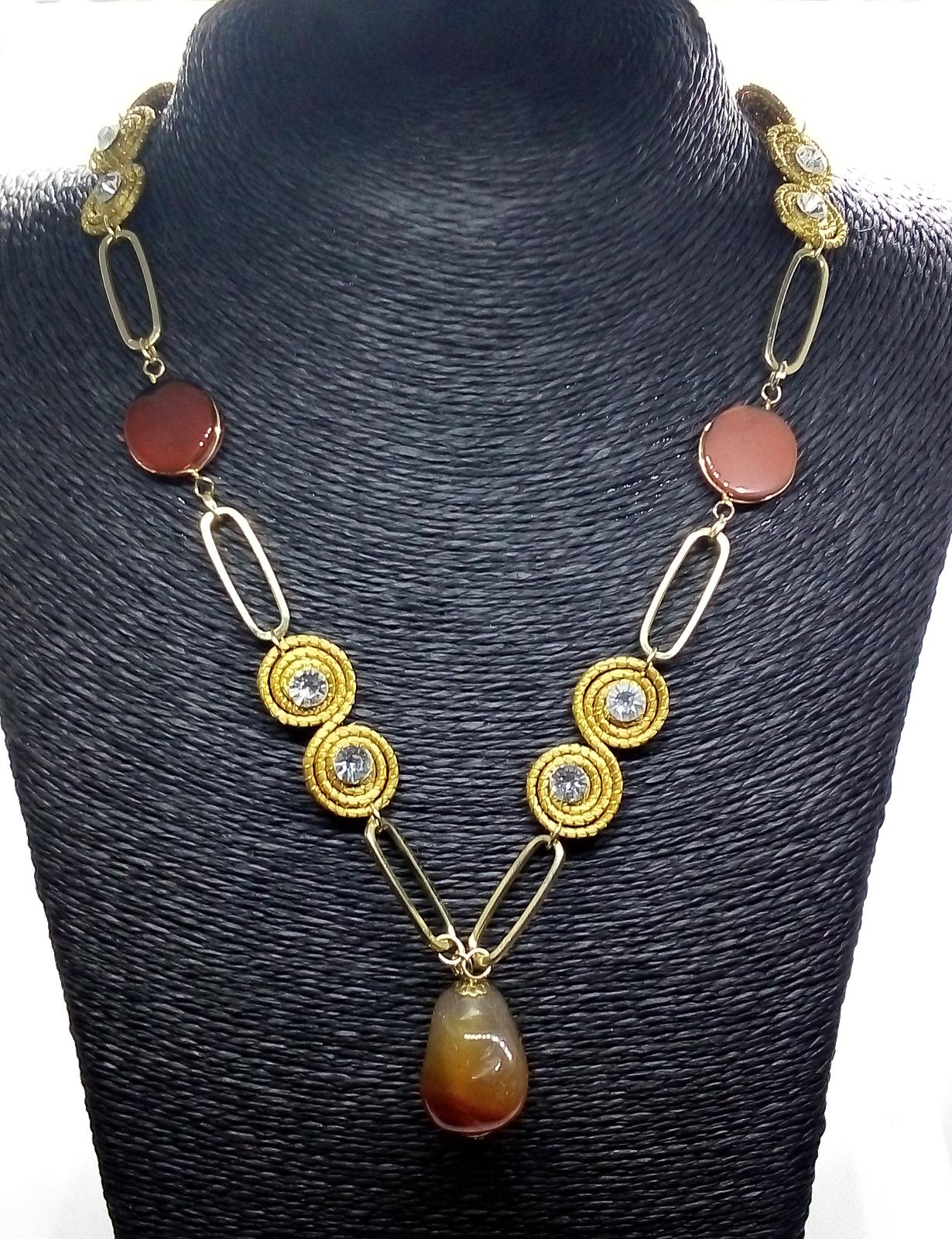 Collana con Piccoli Spirali in Capim Dourado con strass bianco ed Agata Fuoco piatta liscia tonda, ciondolo sasso di Agata Fuoco.