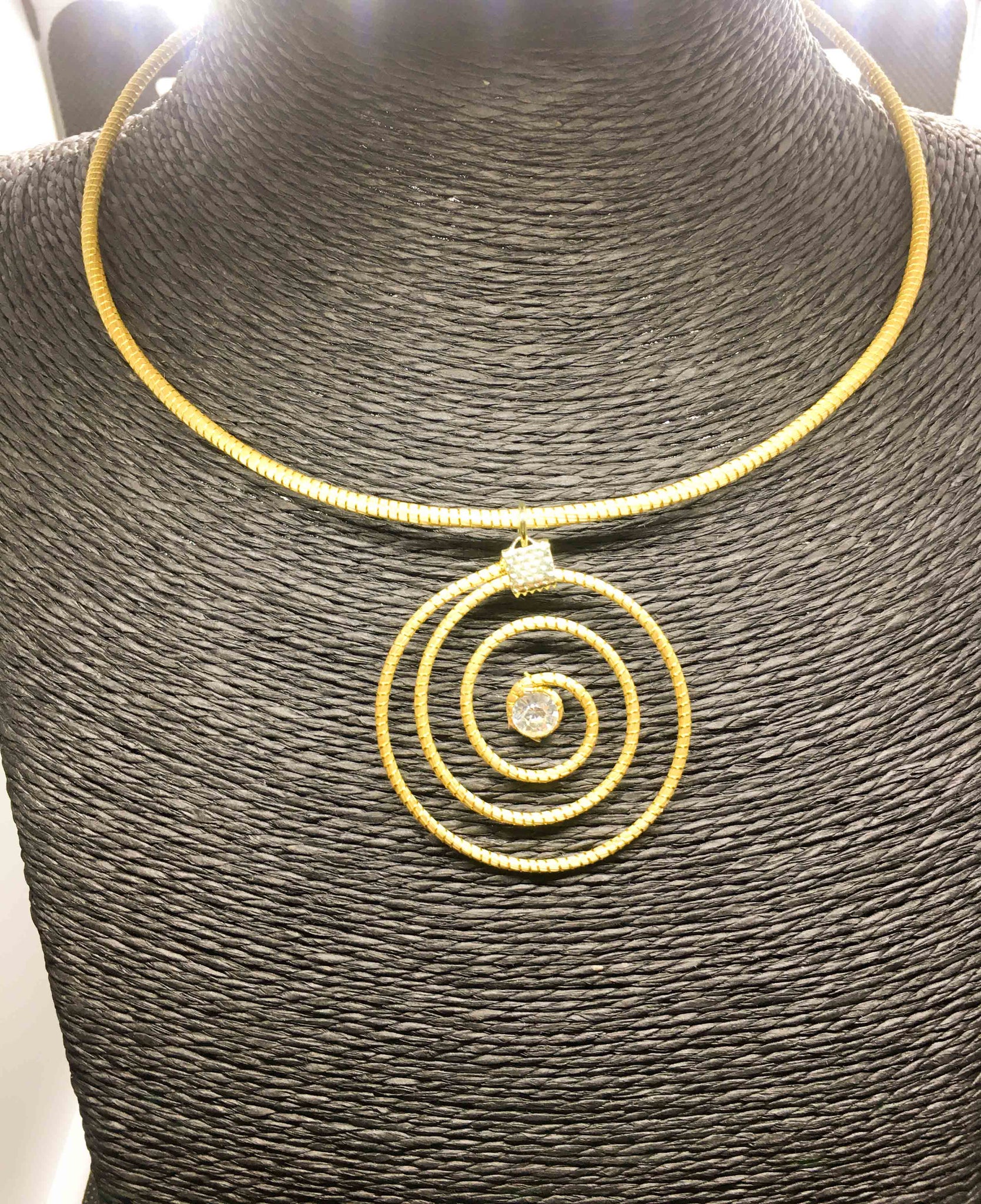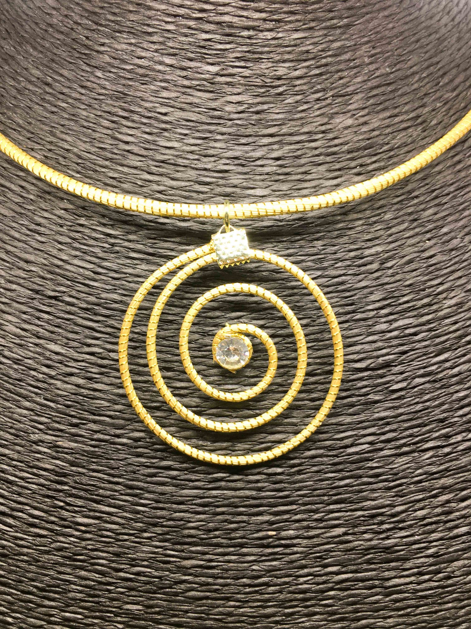 Collana Girocollo rigido ciondolo spirale com strass bianca.