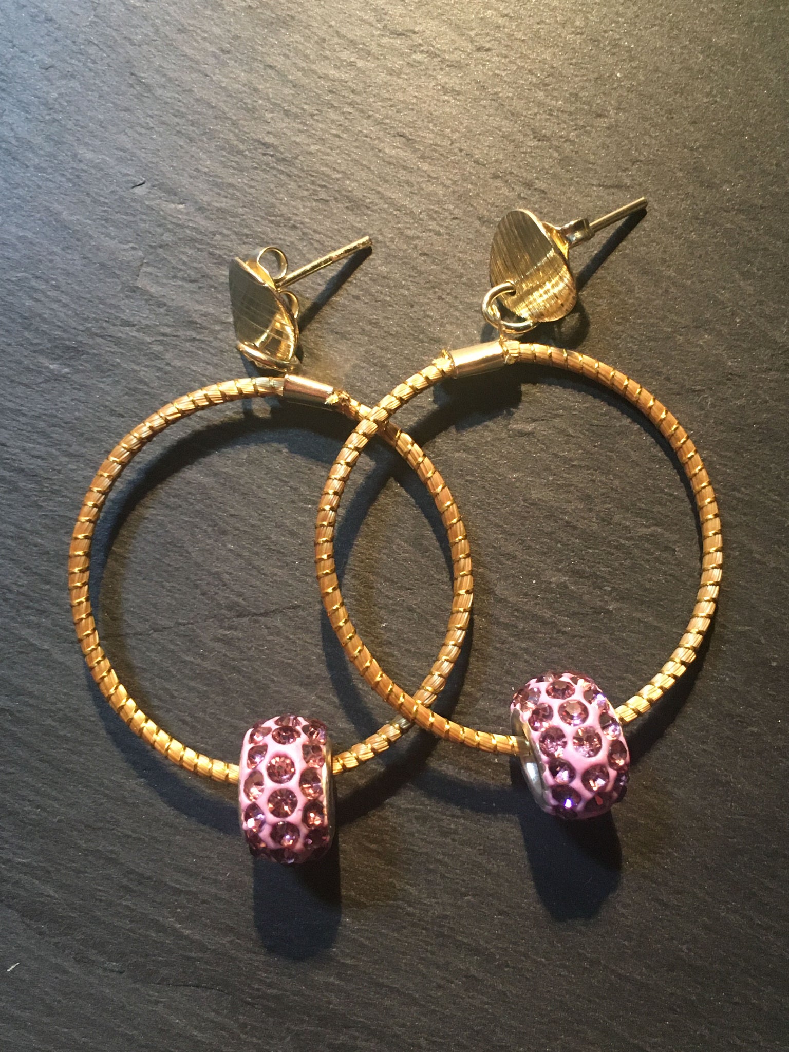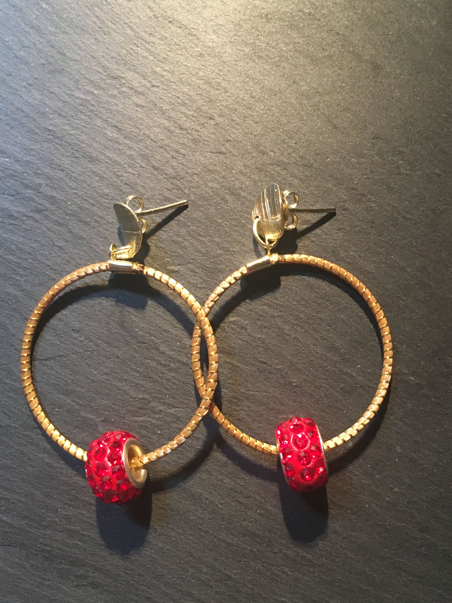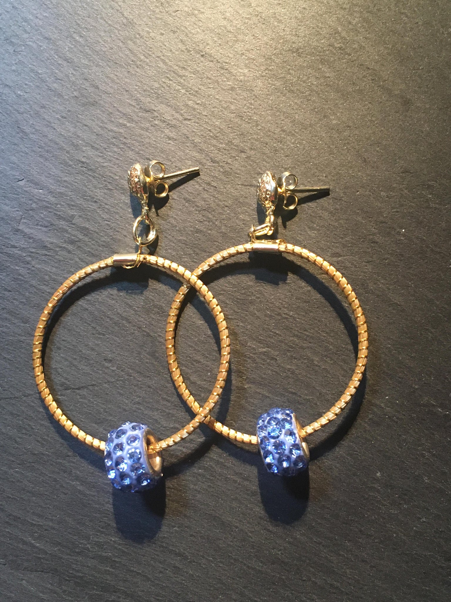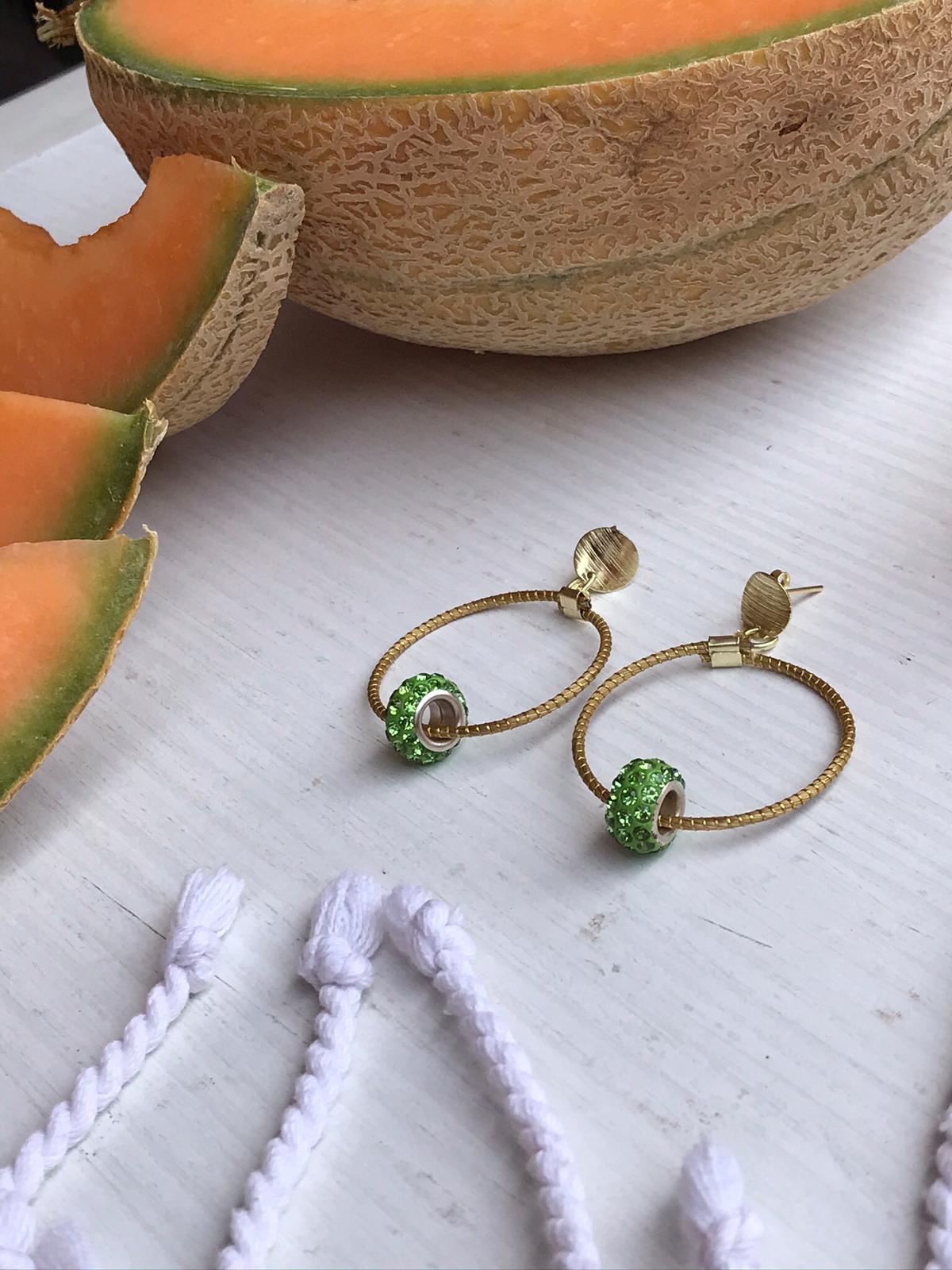 Orecchini in cerchio in capim dourado con passanti in strass colorato Great