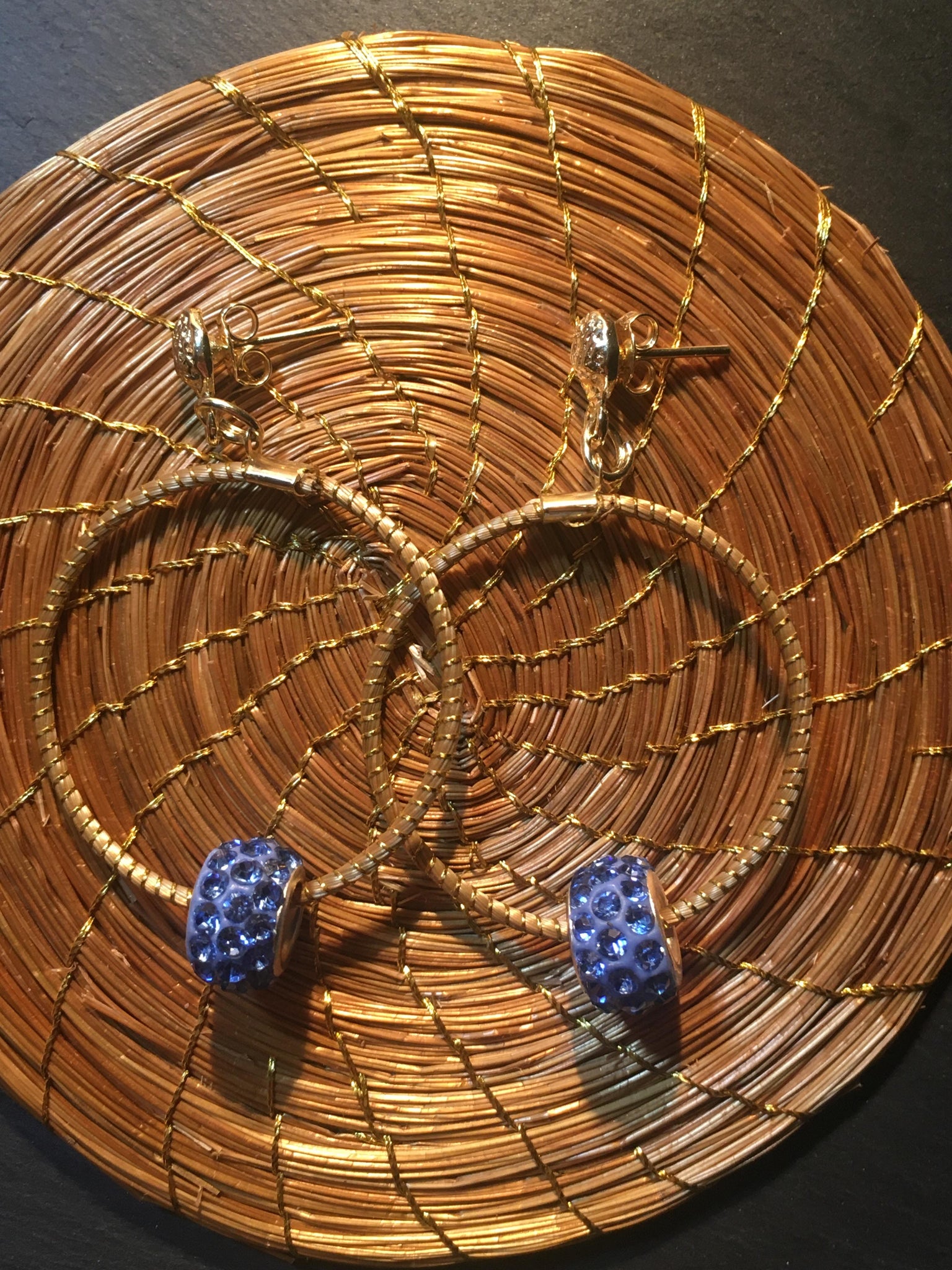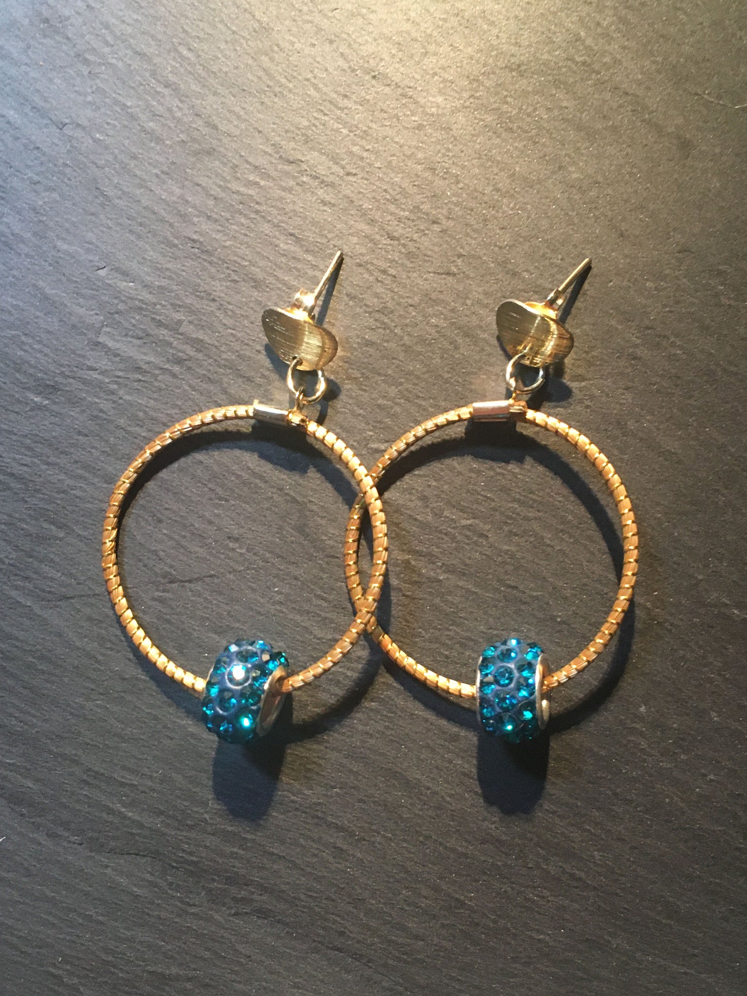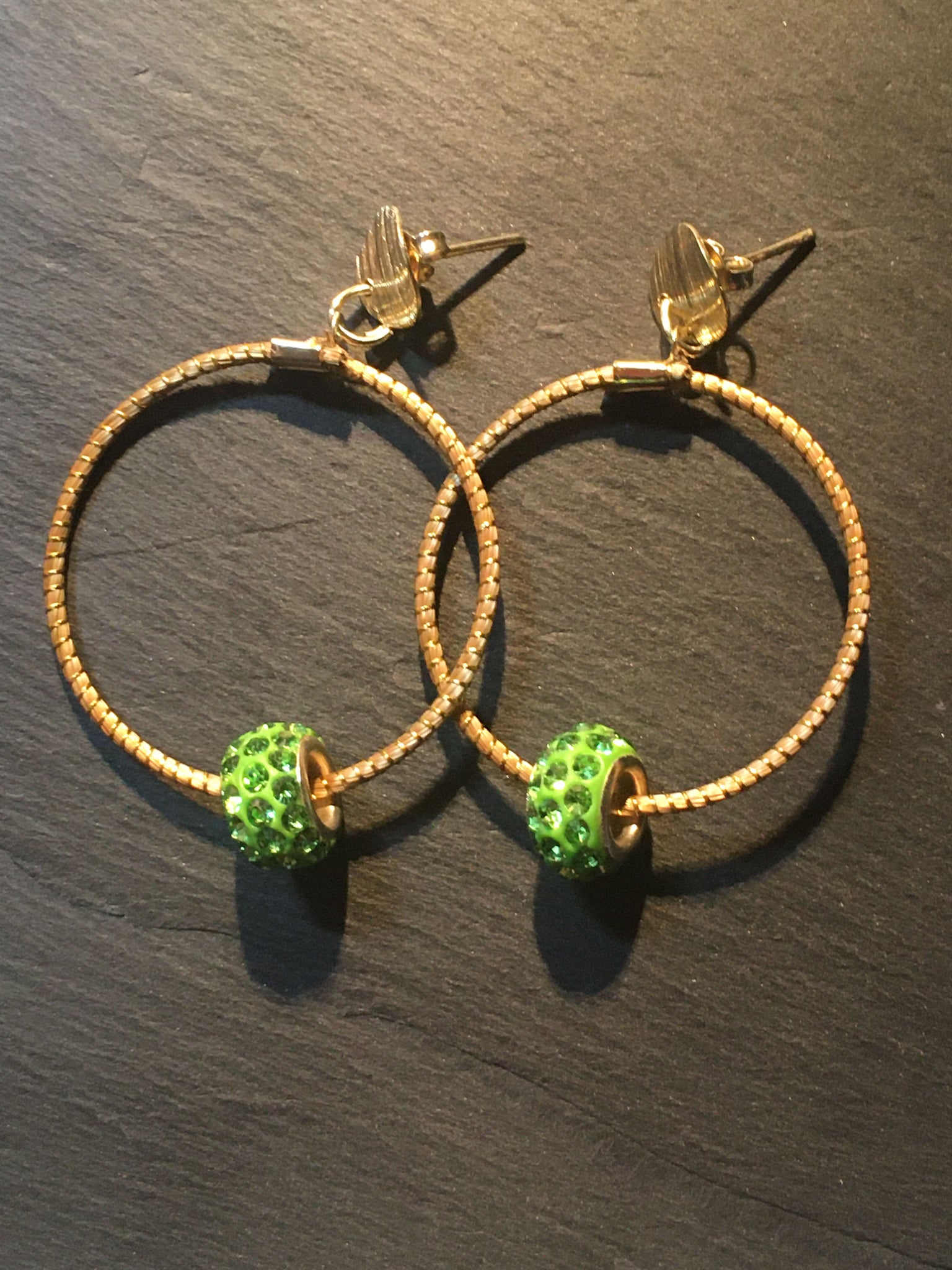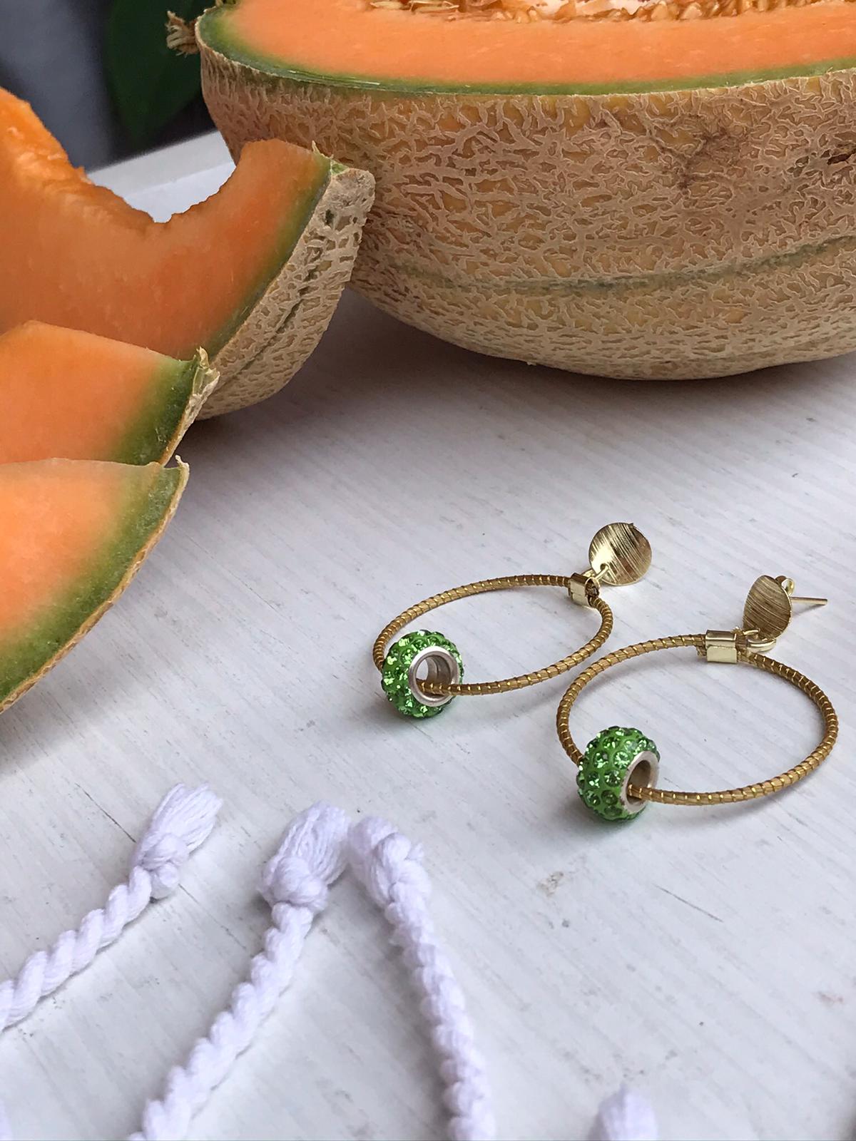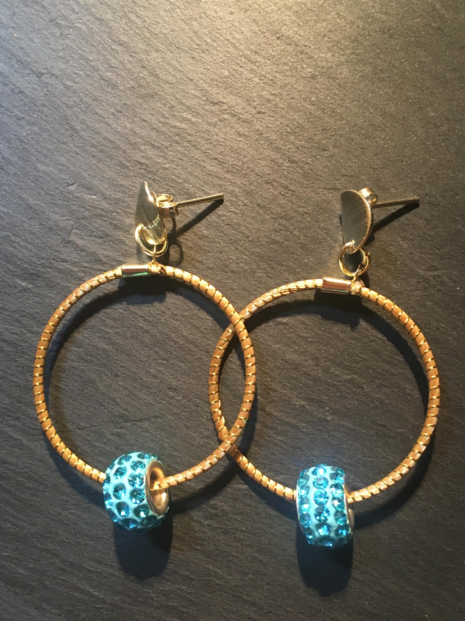 Orecchini in cerchio in capim dourado con passanti in strass colorato Great