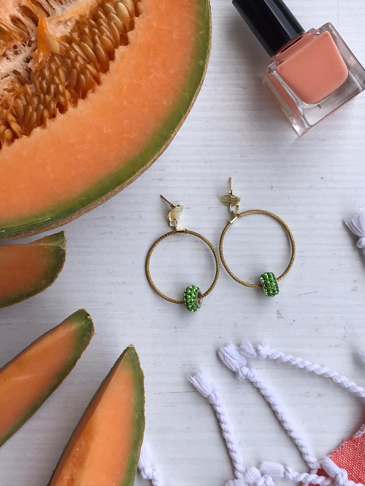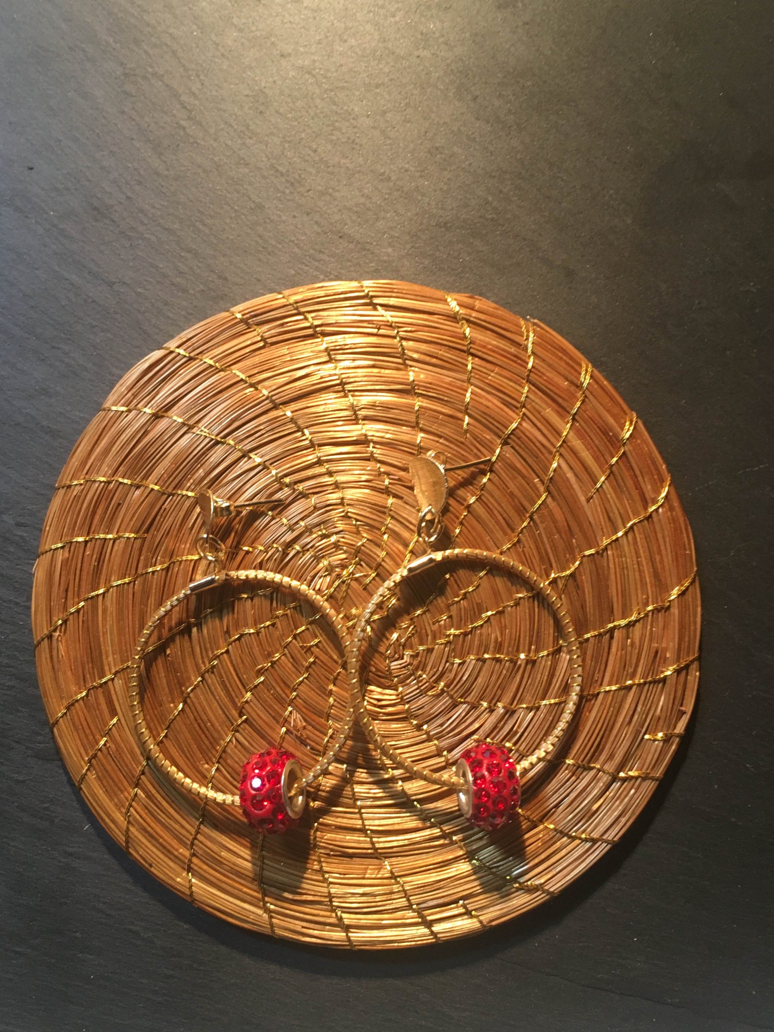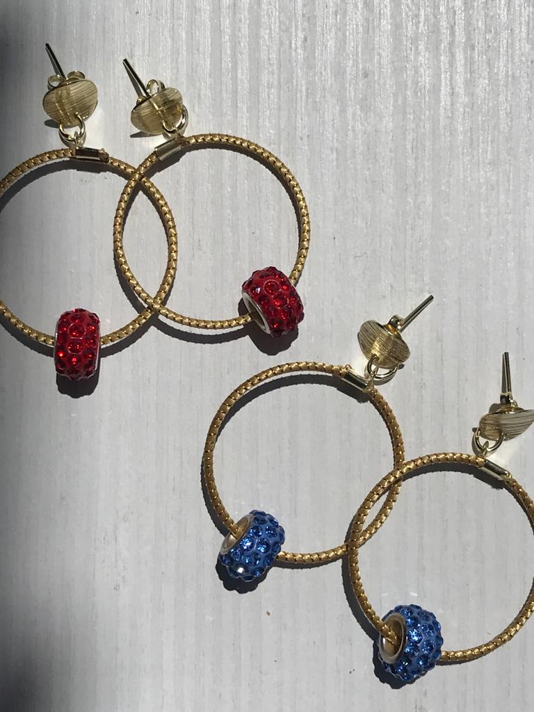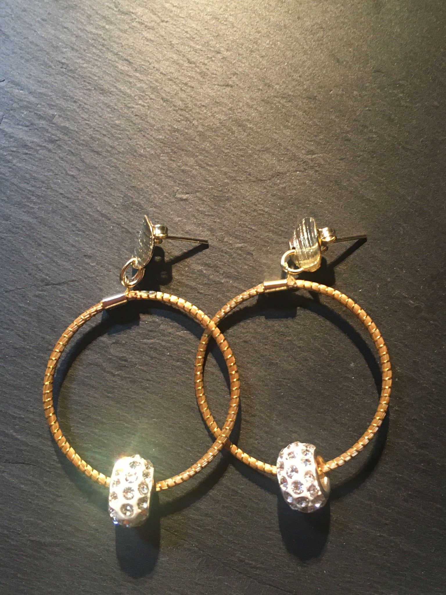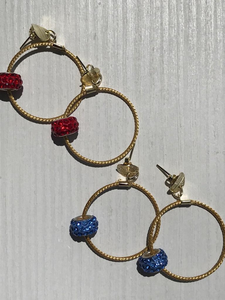 Orecchini in cerchio in capim dourado con passanti in strass colorato Great