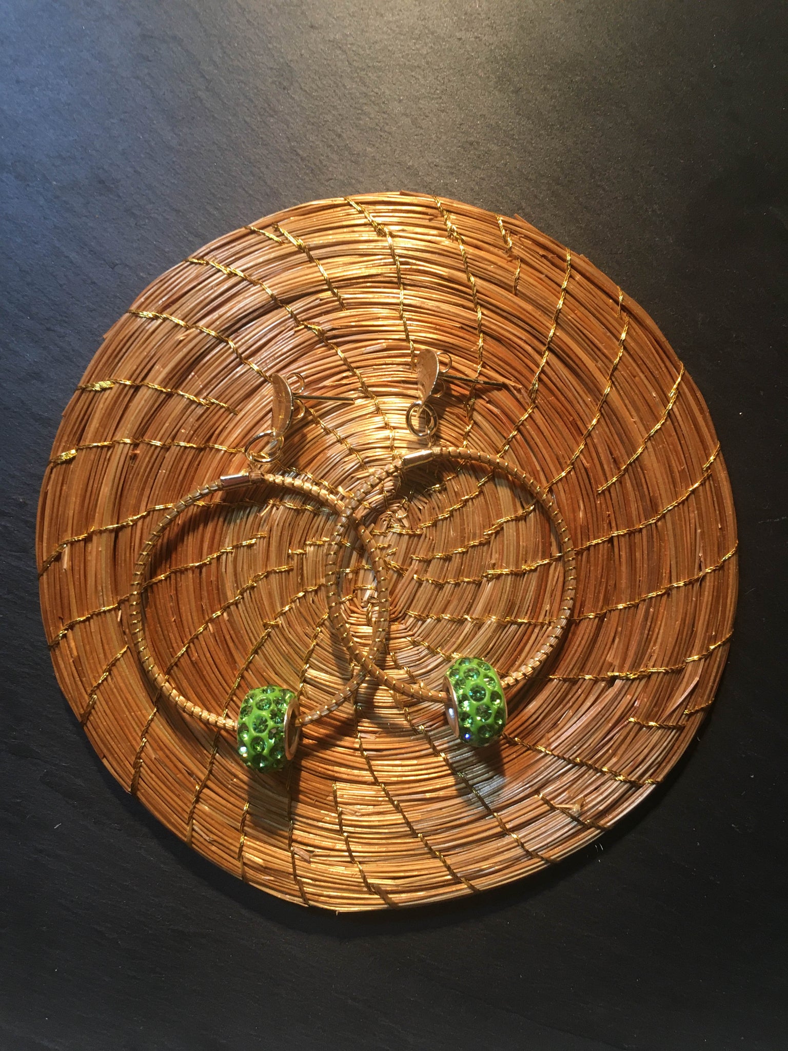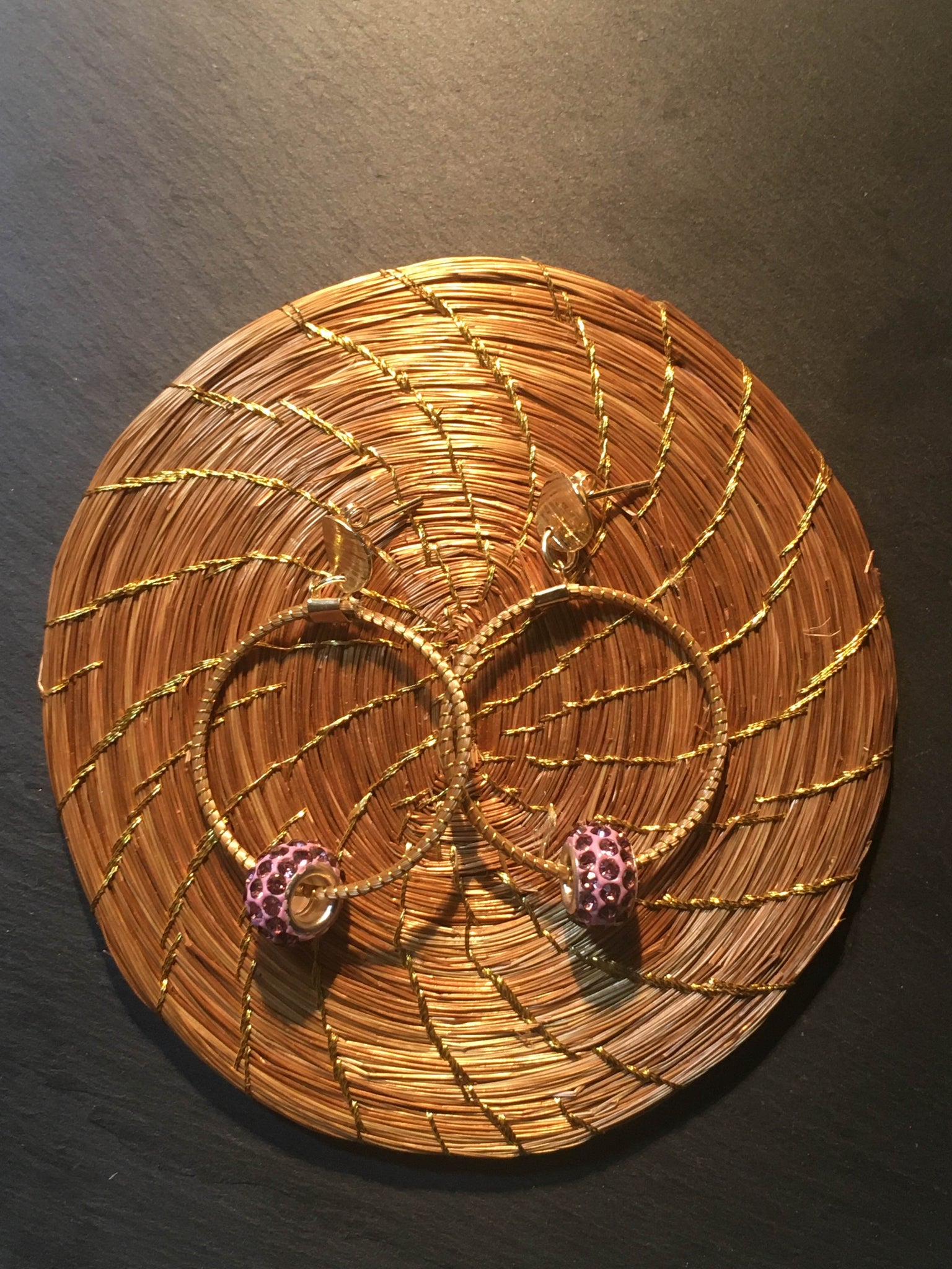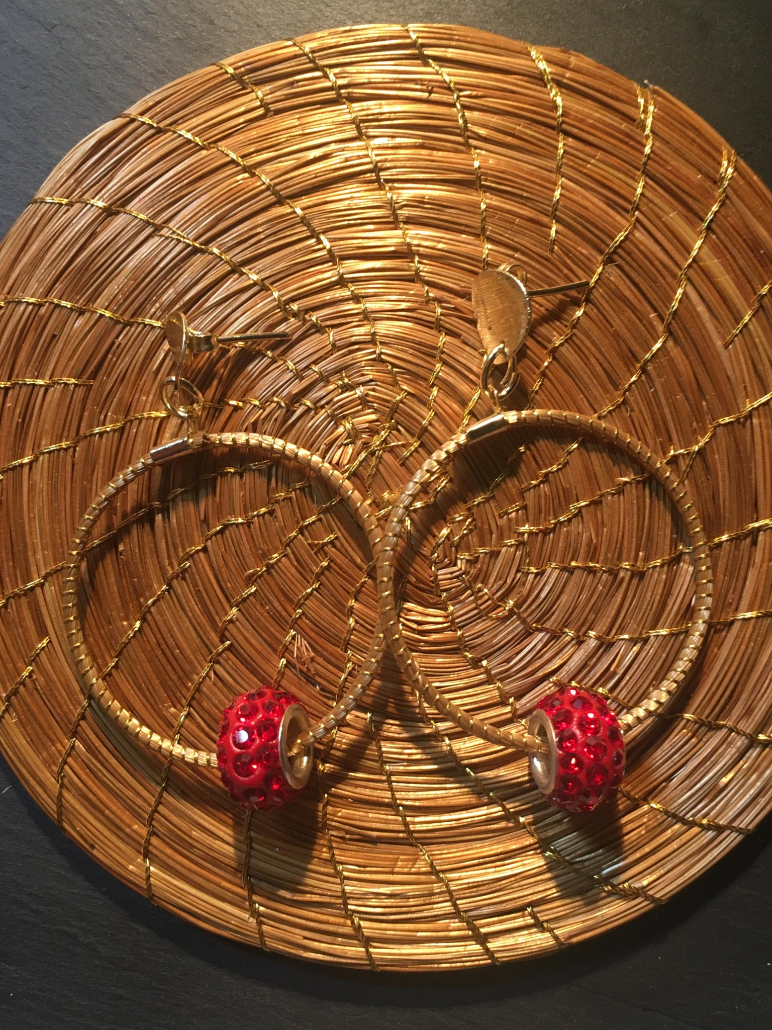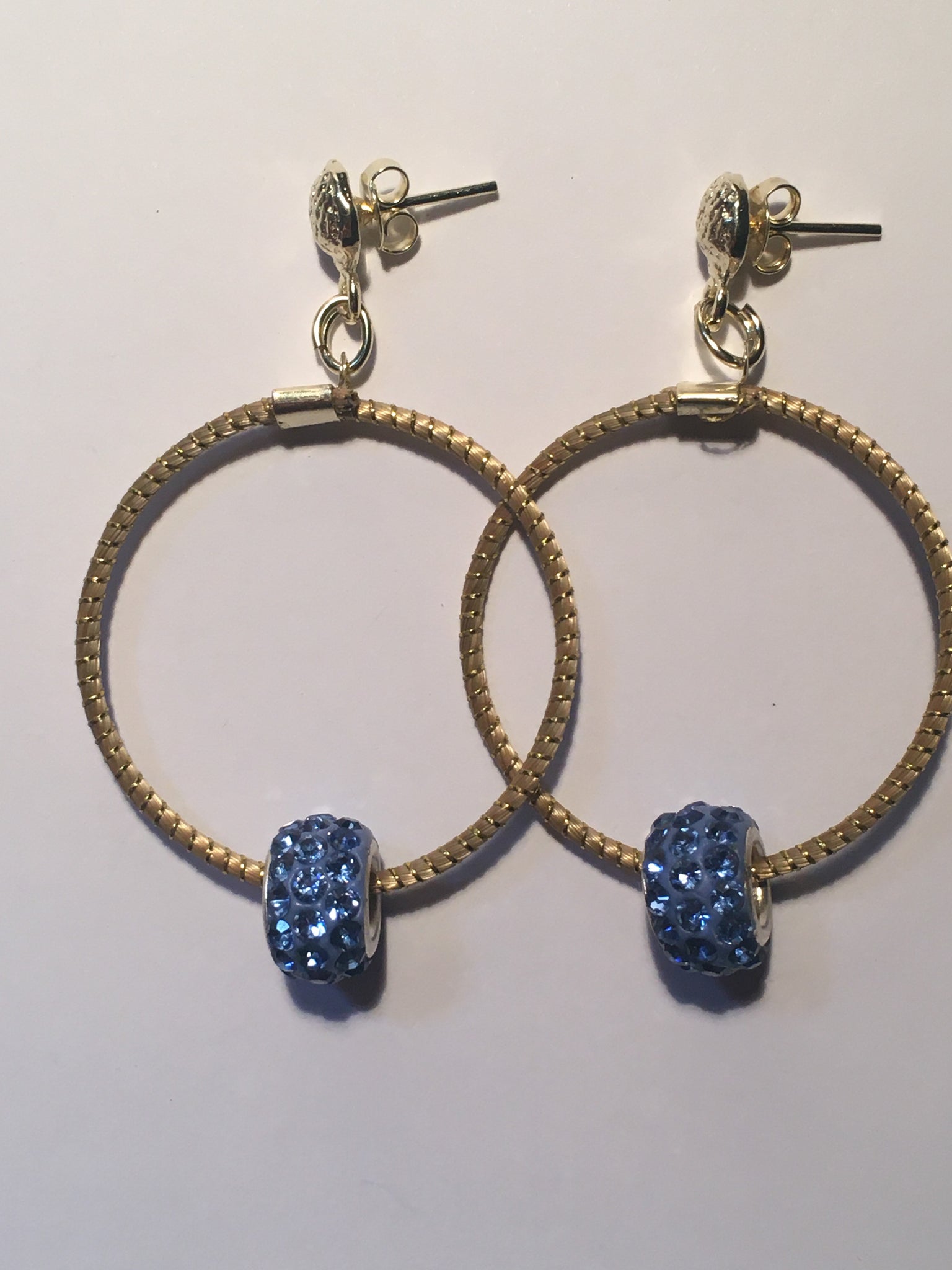 Orecchini in cerchio in capim dourado con passanti in strass colorato Great