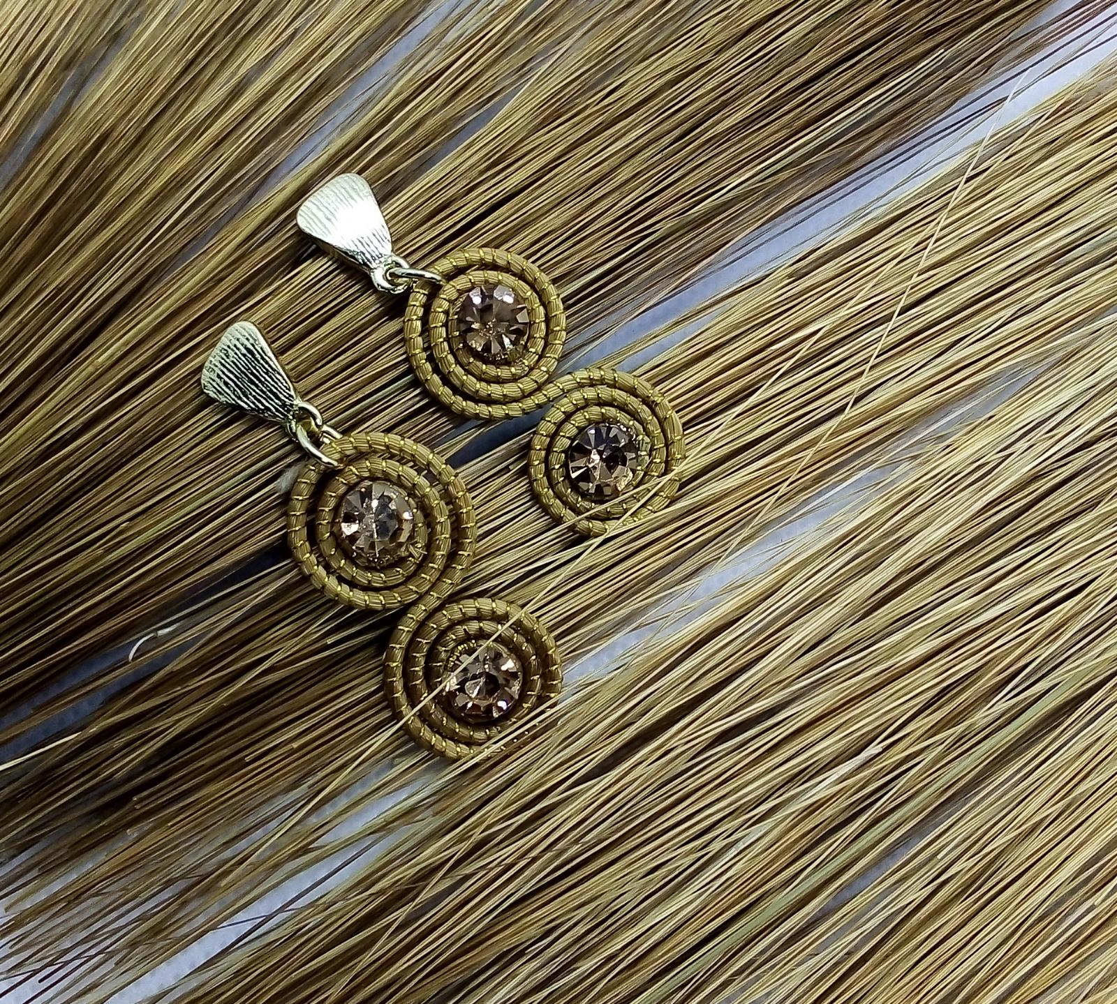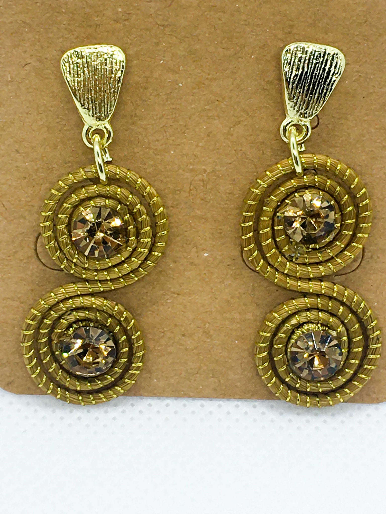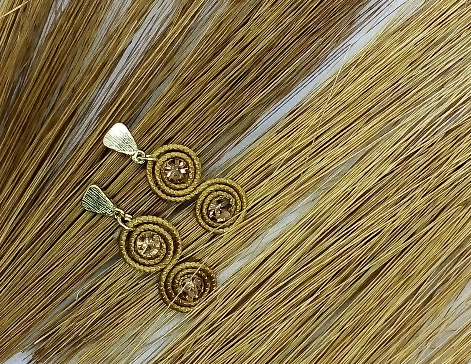 Orecchini Piccoli Spirali in Capim Dourado con strass dorato