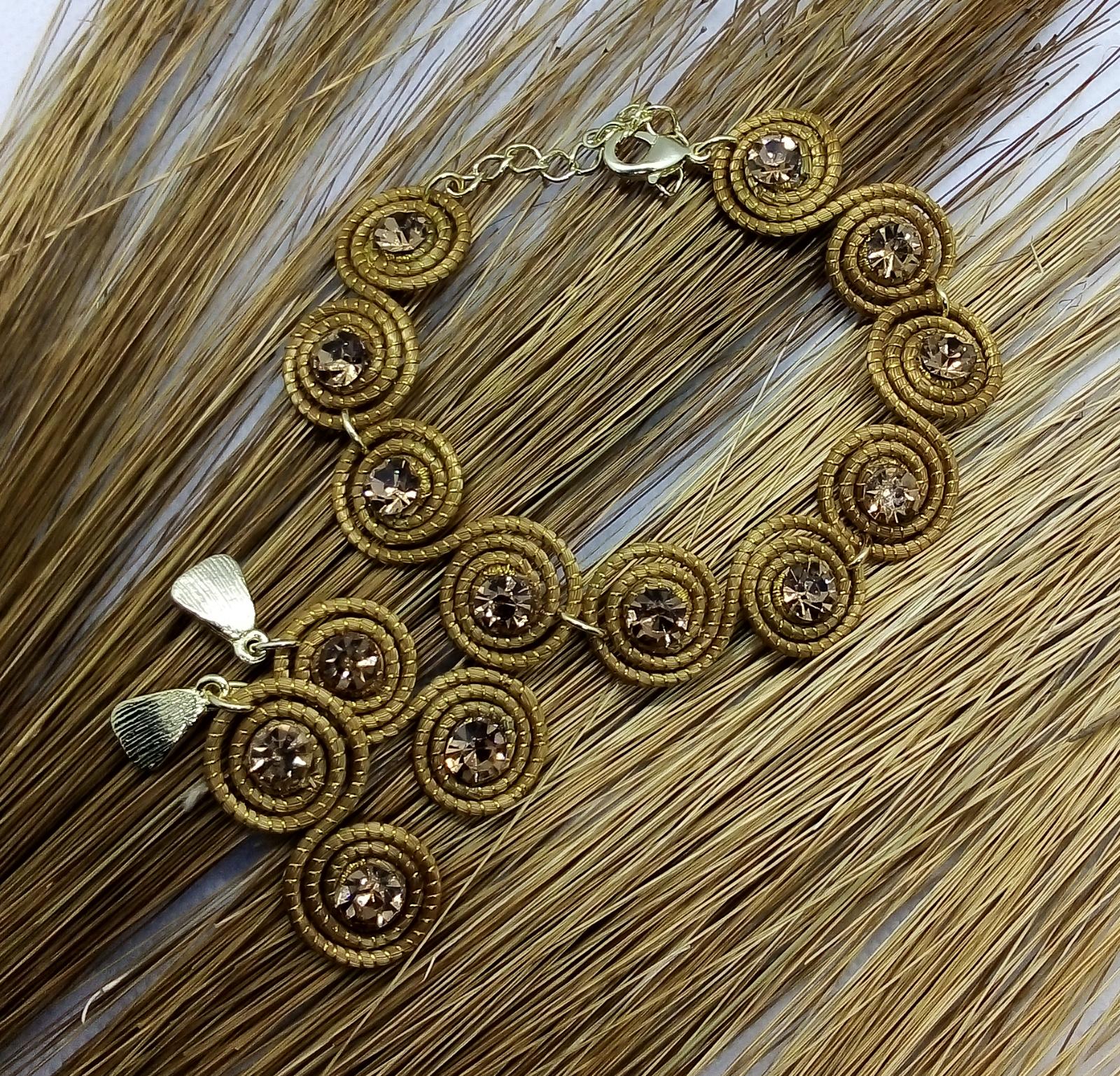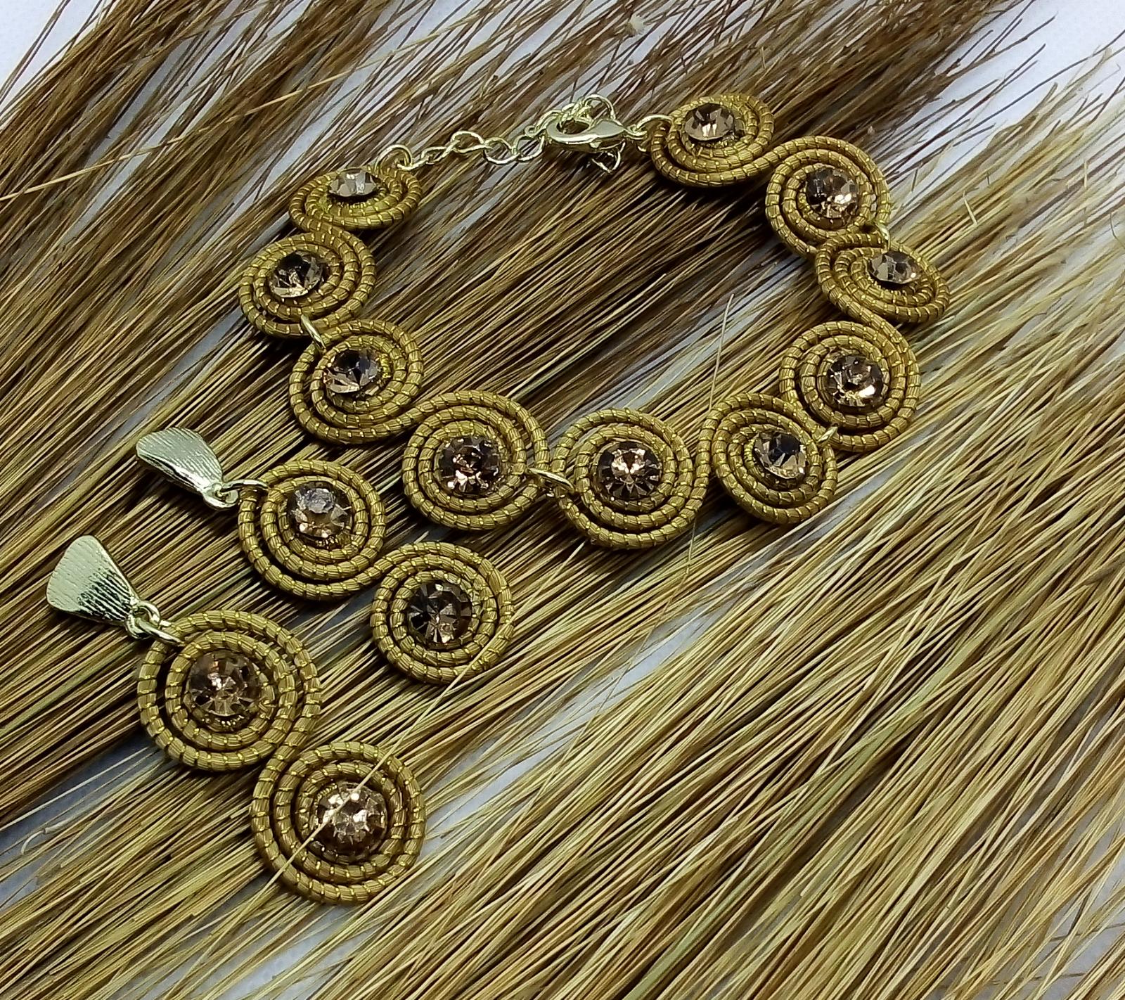 Braccialetto delicato Piccoli Spirali in Capim Dourado com strass dorato