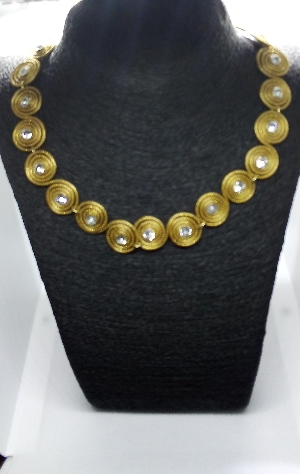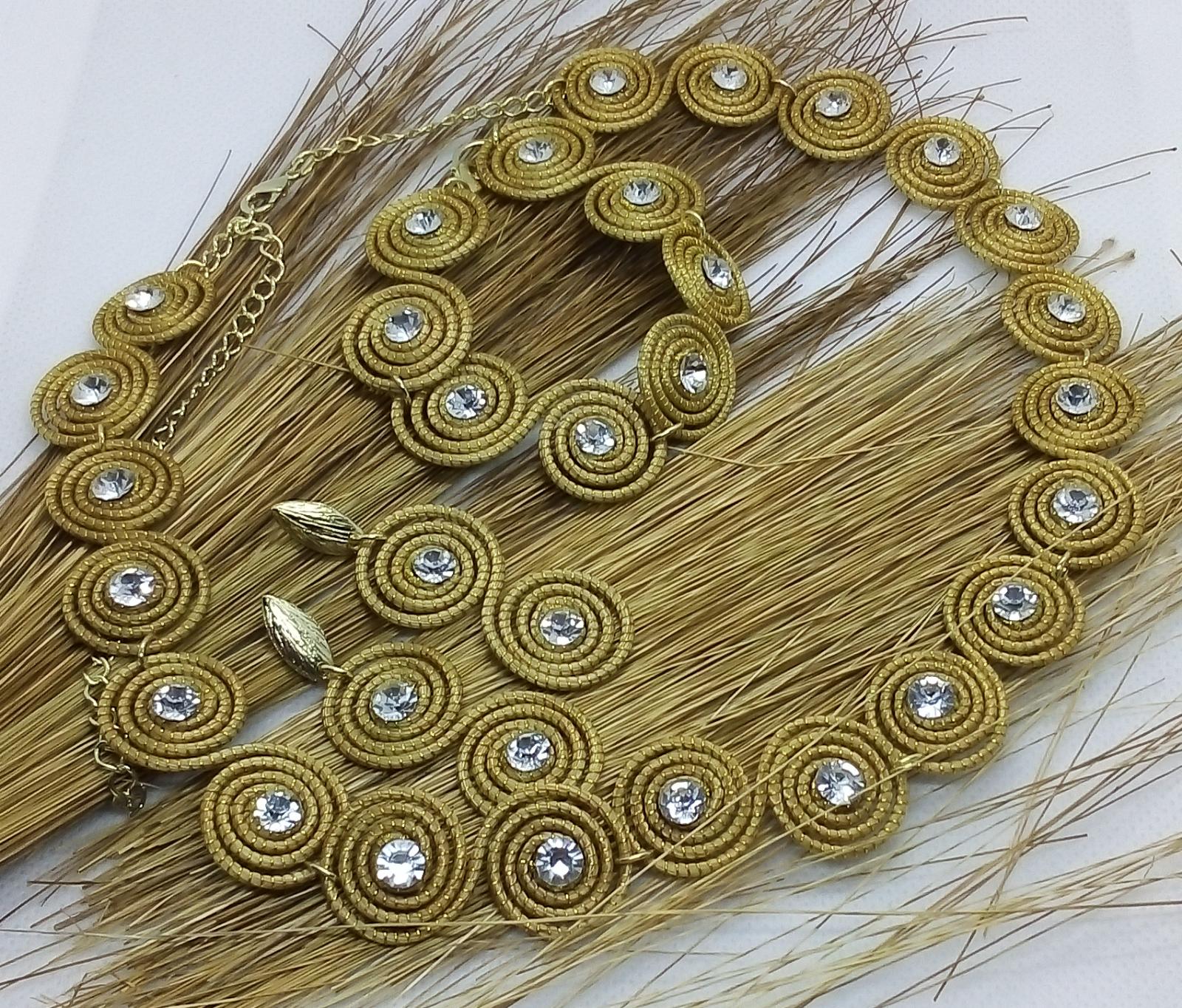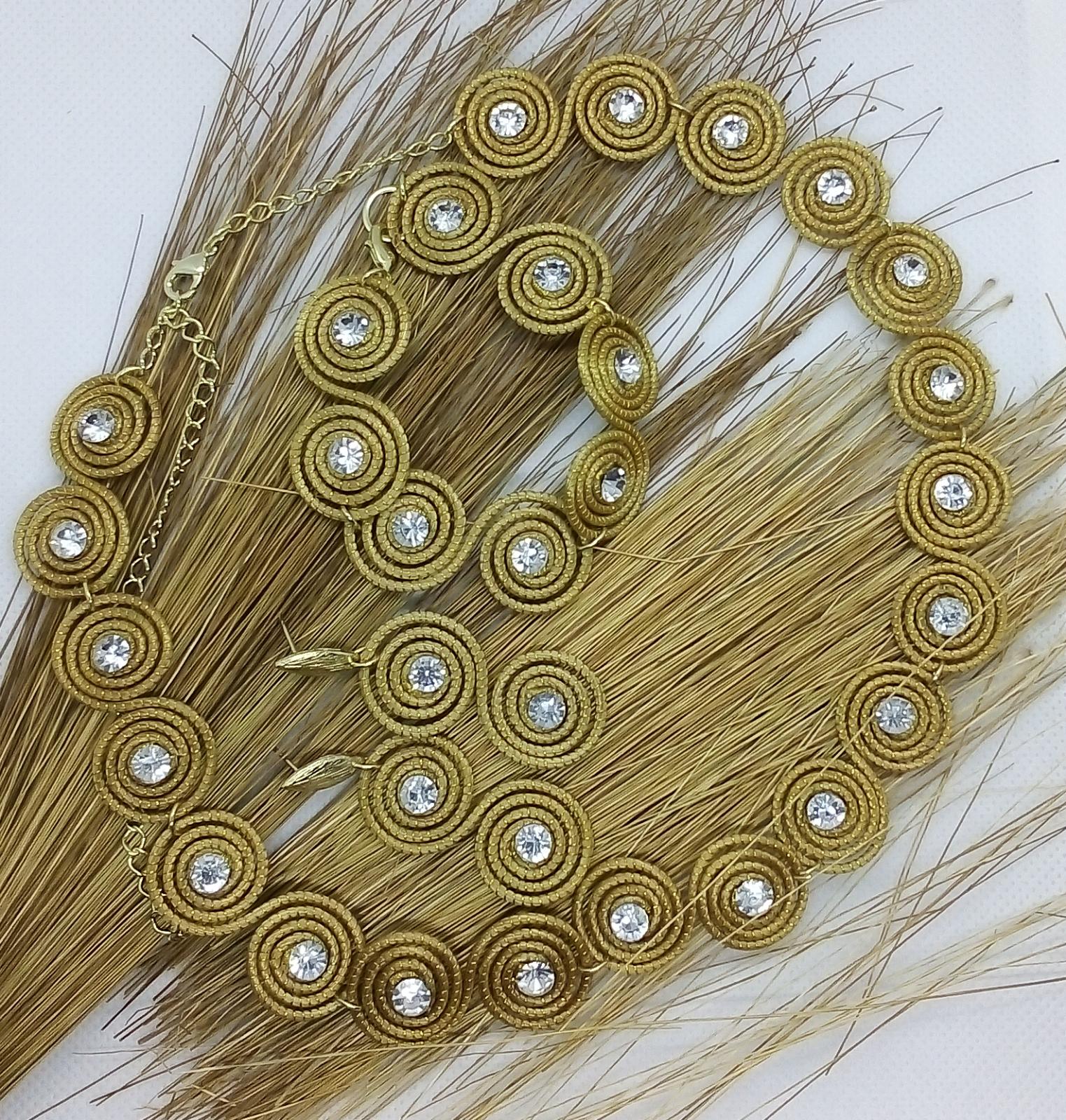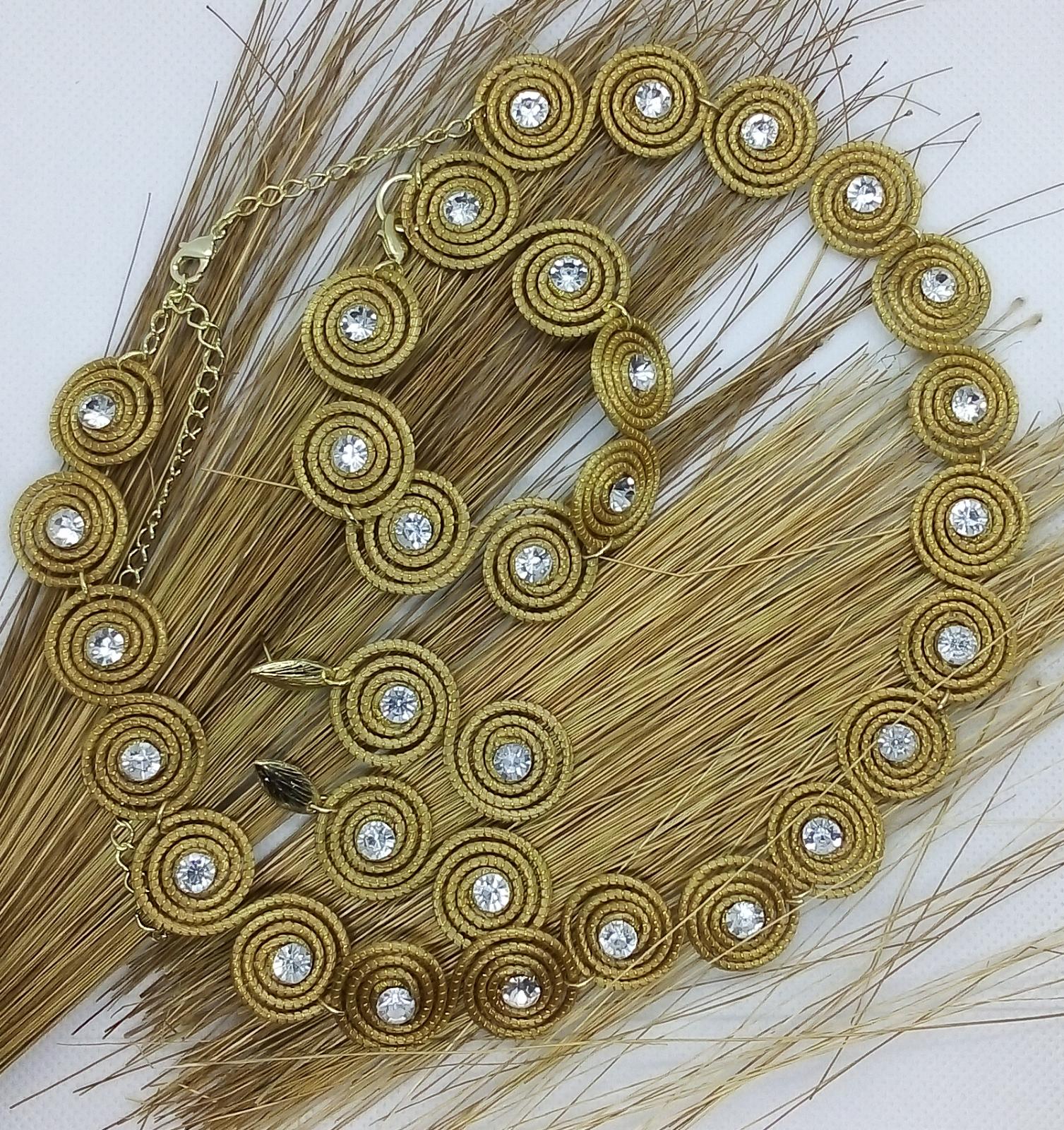 Collana Girocollo piccoli spirali in Capim Dourado con strass trasparente al centro molto raffinata - Lunghezza regolabile da 39 cm a 55 cm.