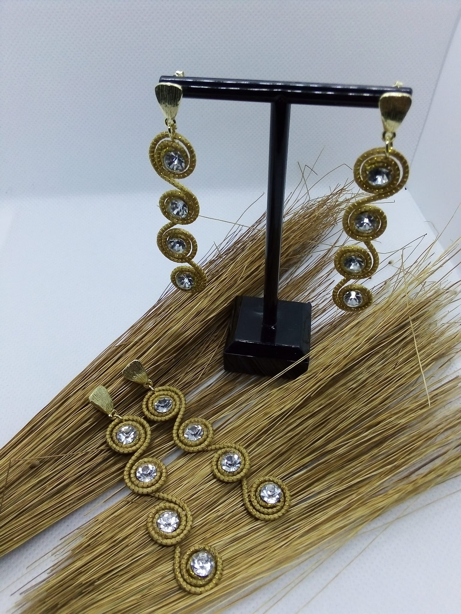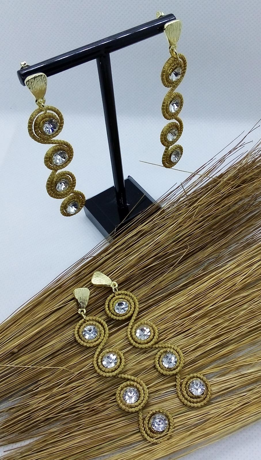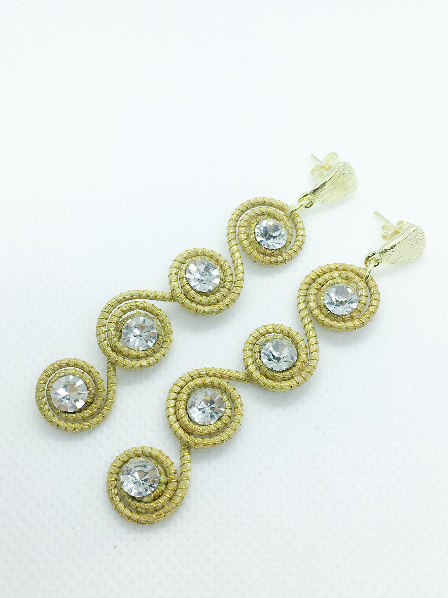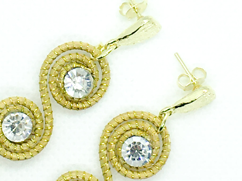 Orecchini In capim Dourado piccole spirale con strass trasparente design molto delicato e raffinato